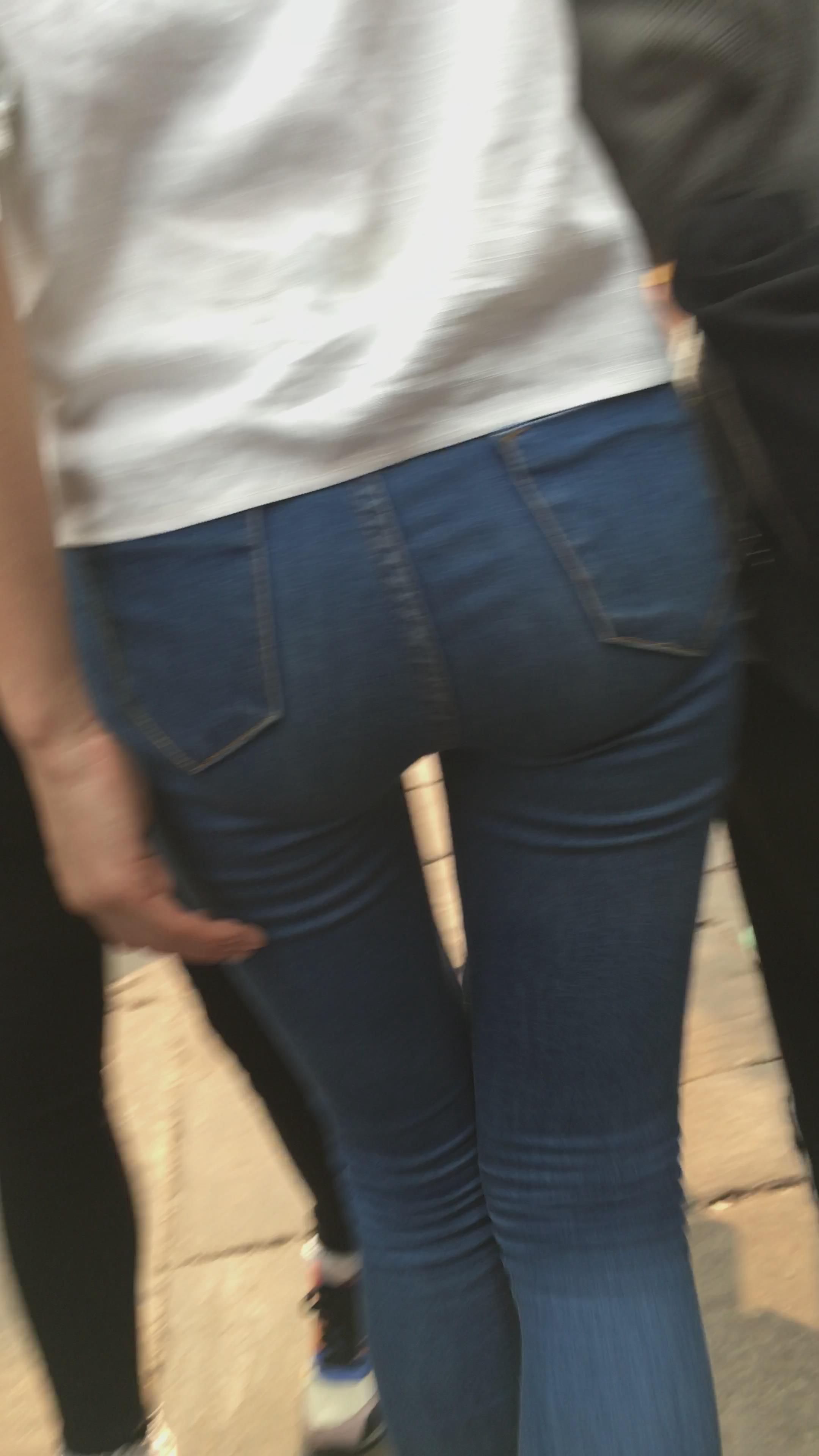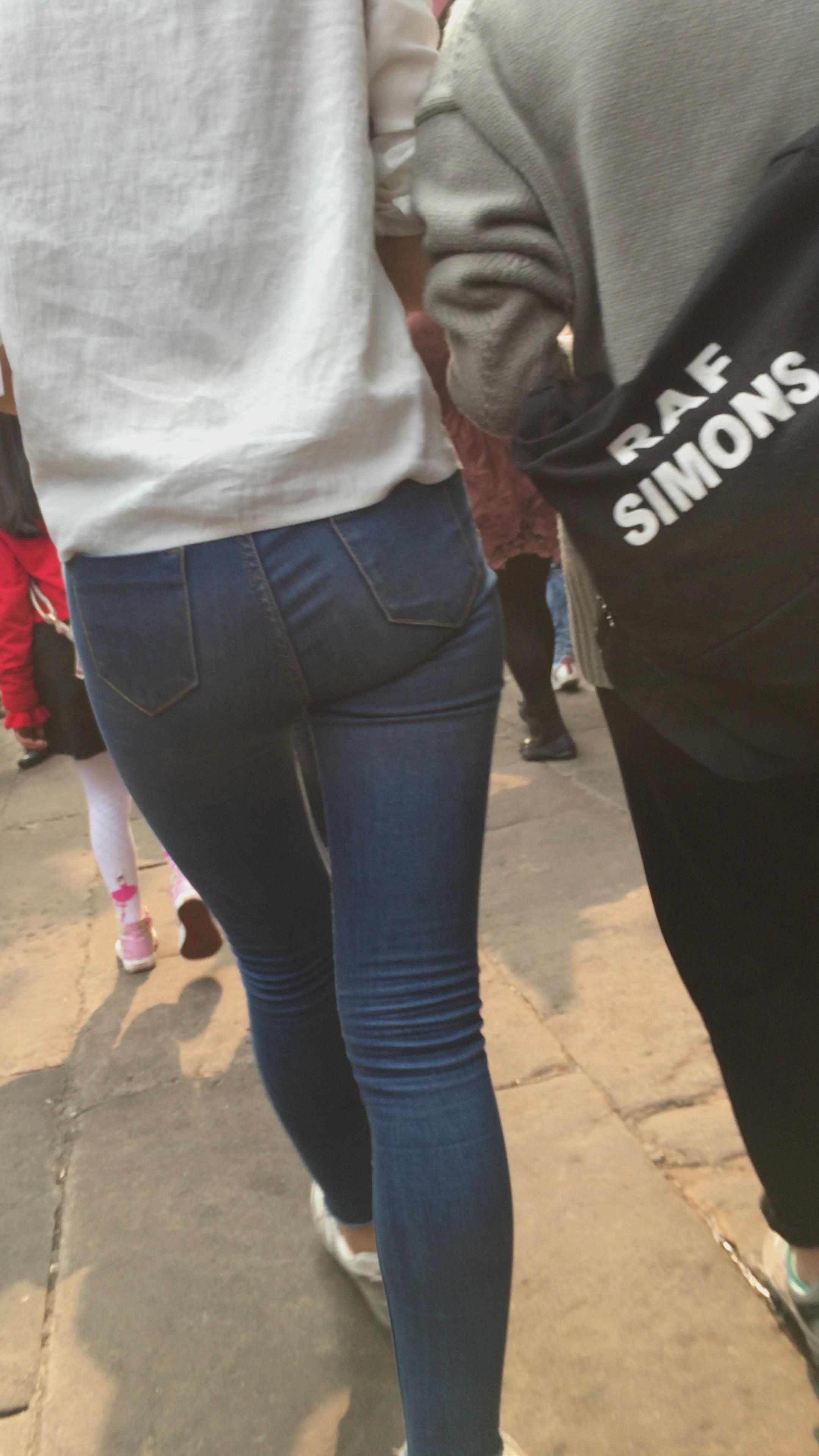 街拍蓝色紧牛美眉编号3911