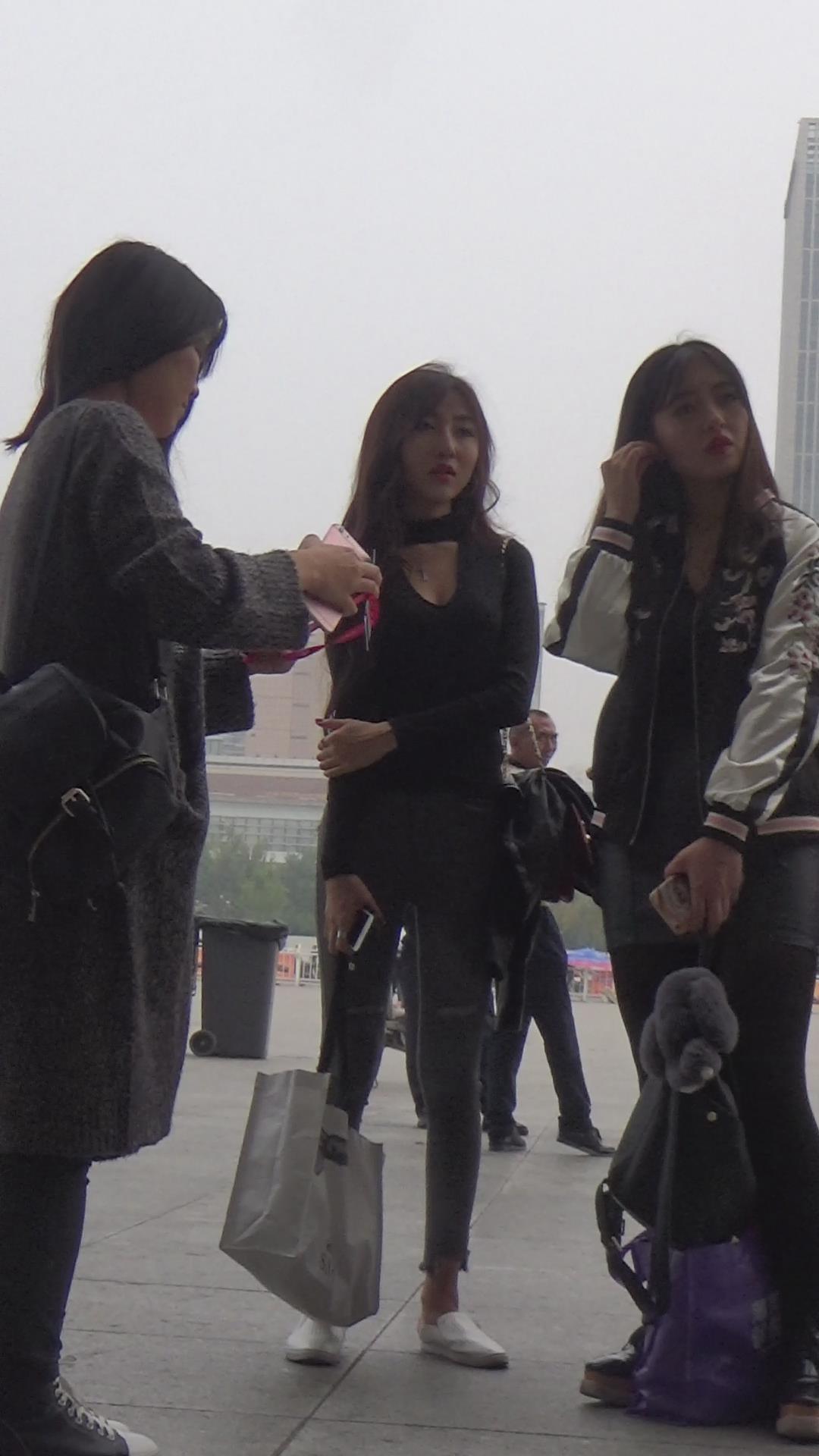 街拍灰色紧身裤清纯美女编号3914