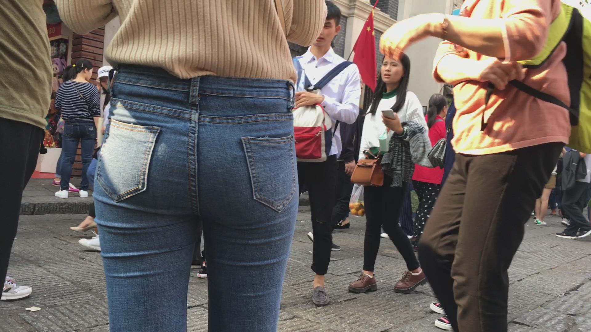 街拍超级丰满的肉臀蓝色紧身牛仔裤美眉 编号6077
