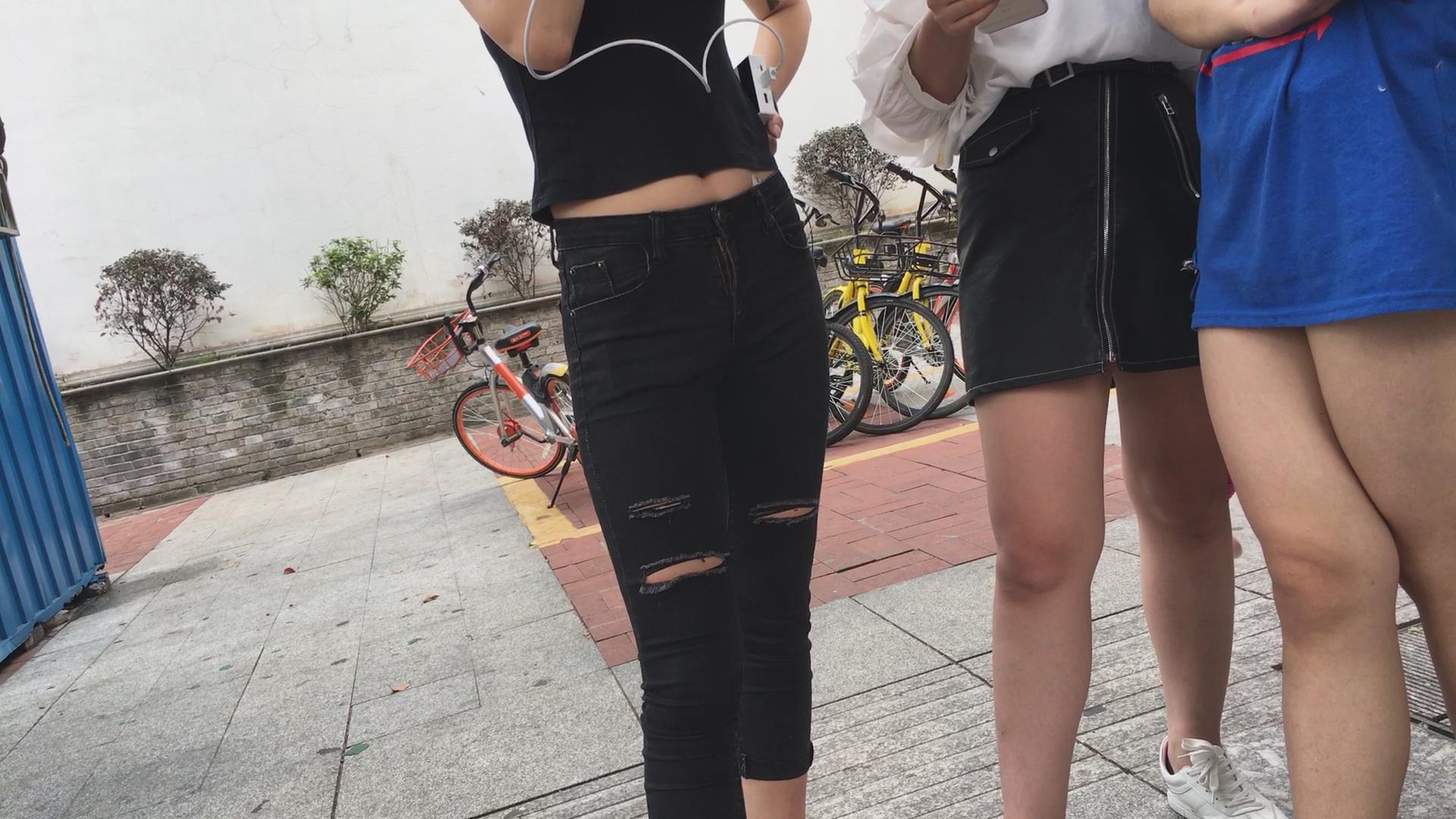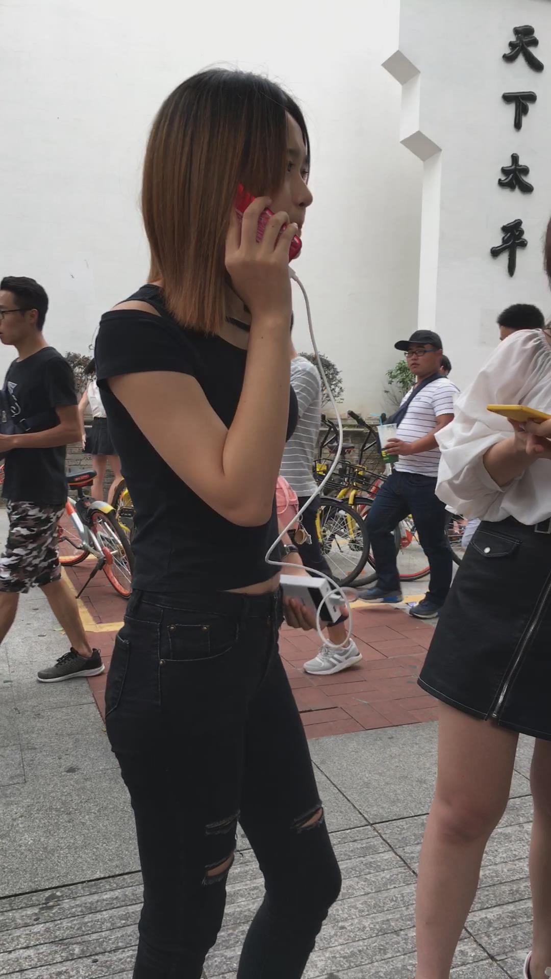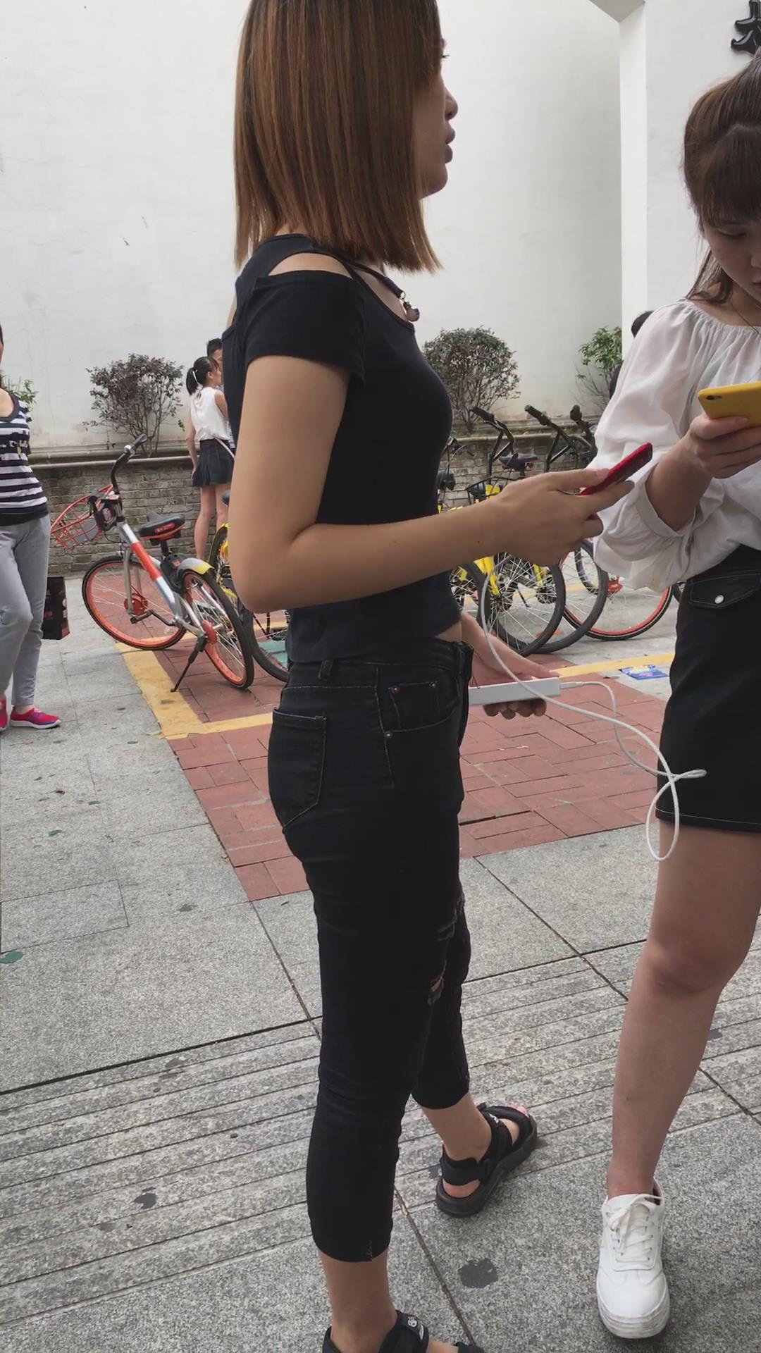 极品黑色紧身破洞牛仔裤美眉 编号6078