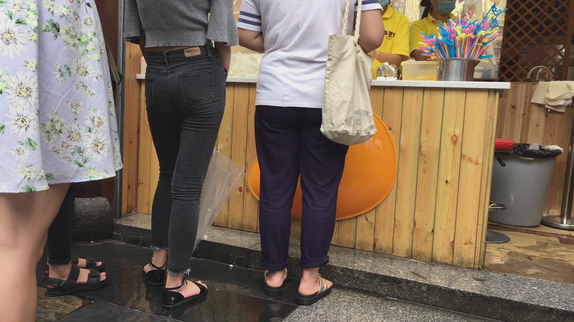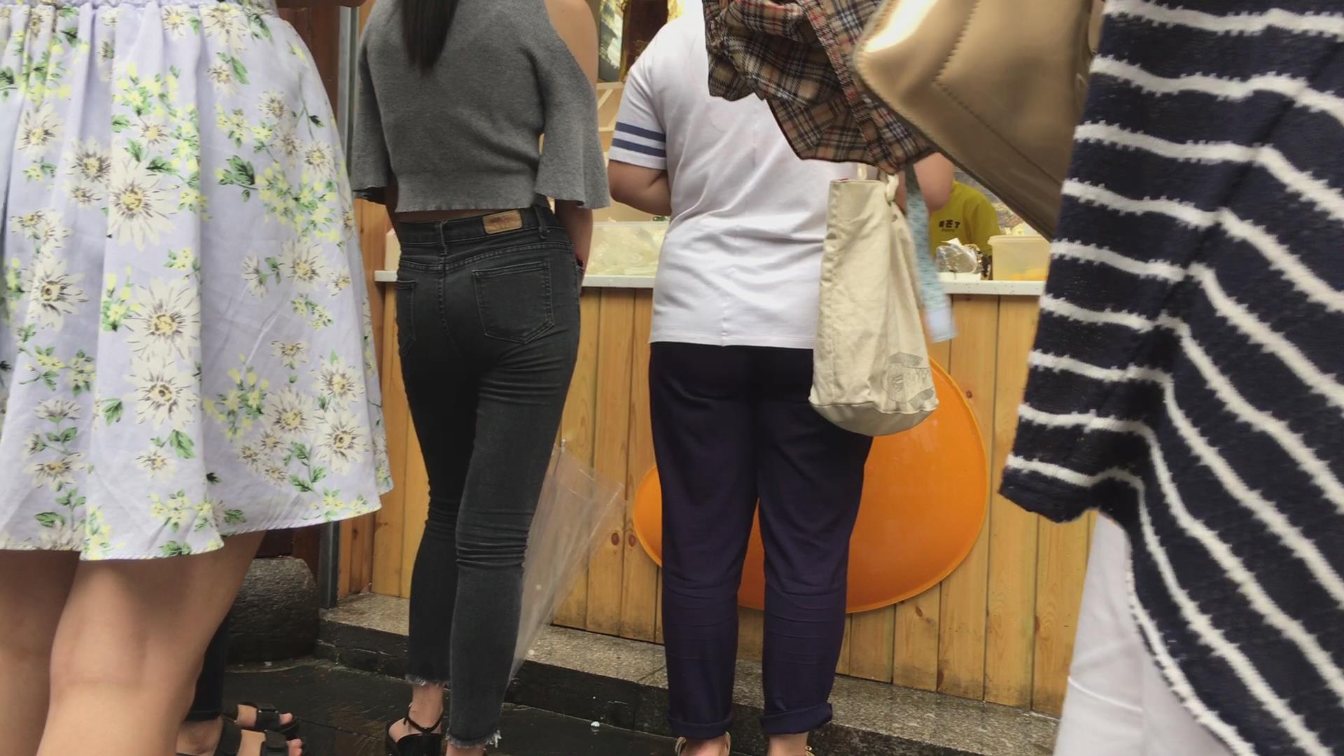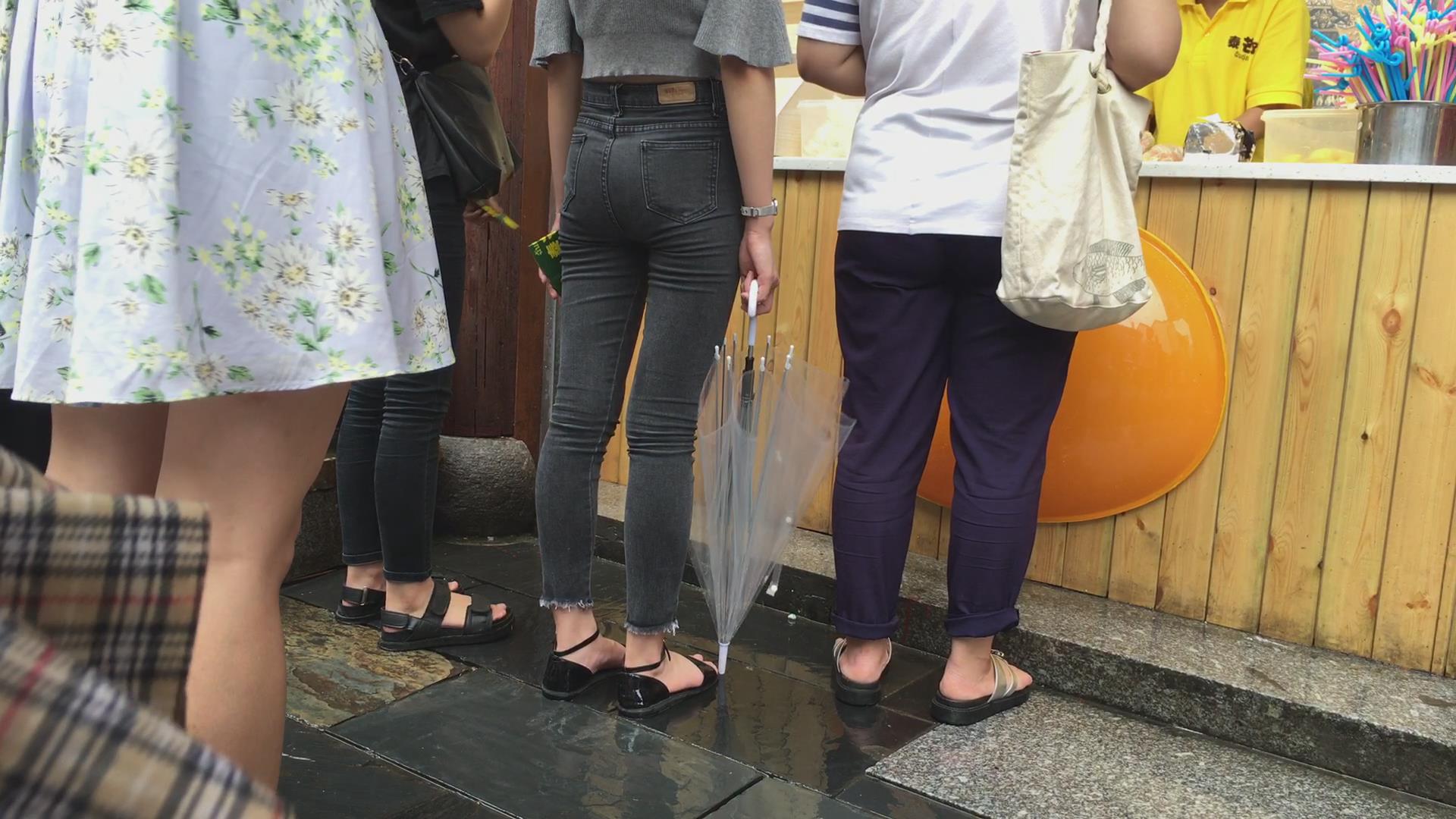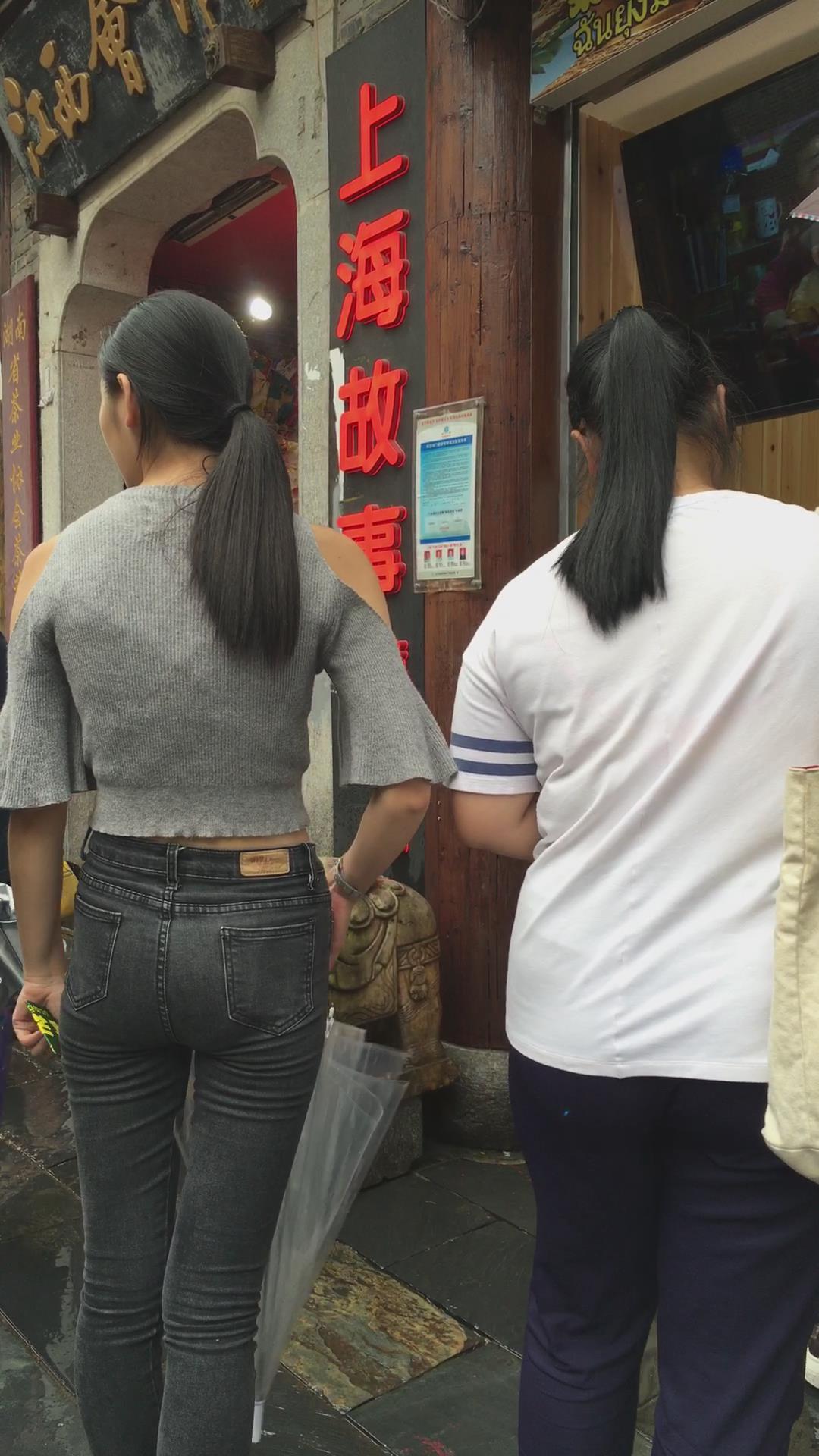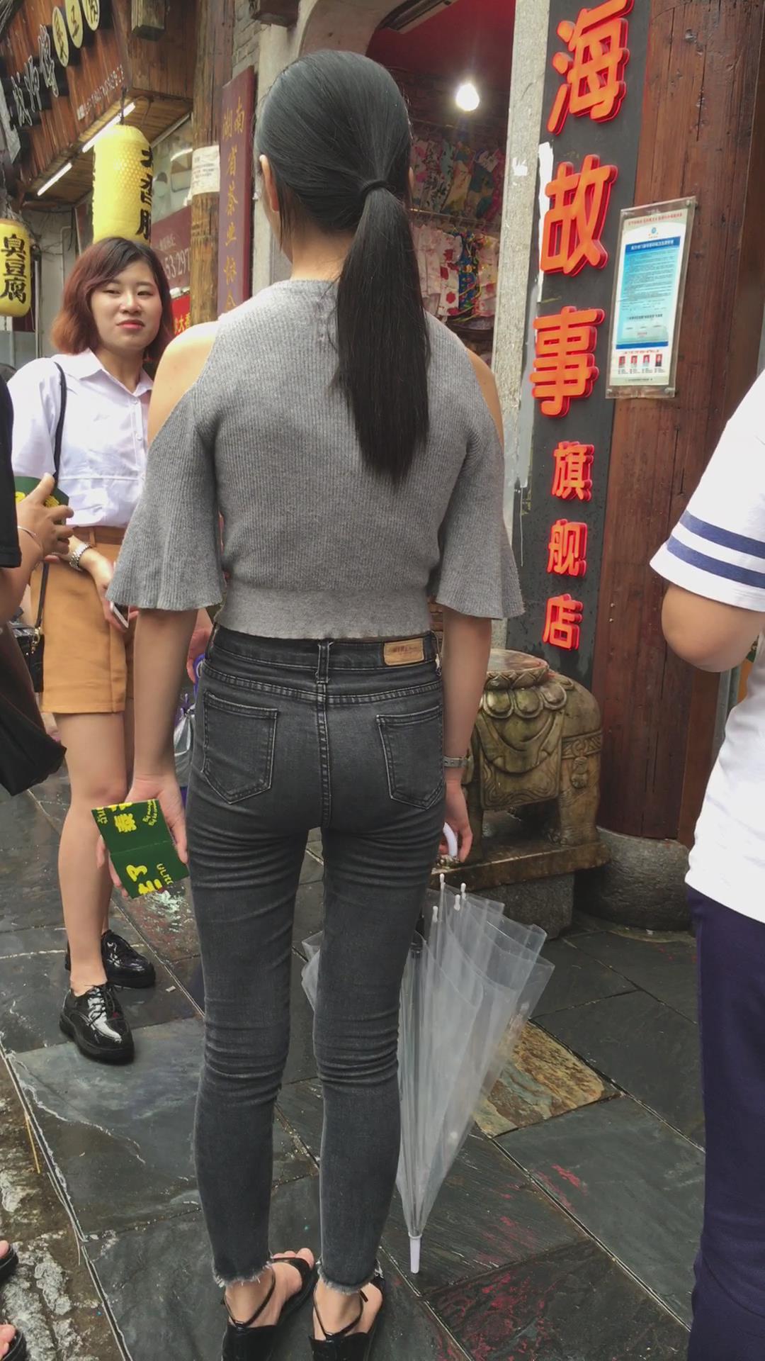 极品紧绷灰色牛仔裤苹果臀性感气质美女 编号6089