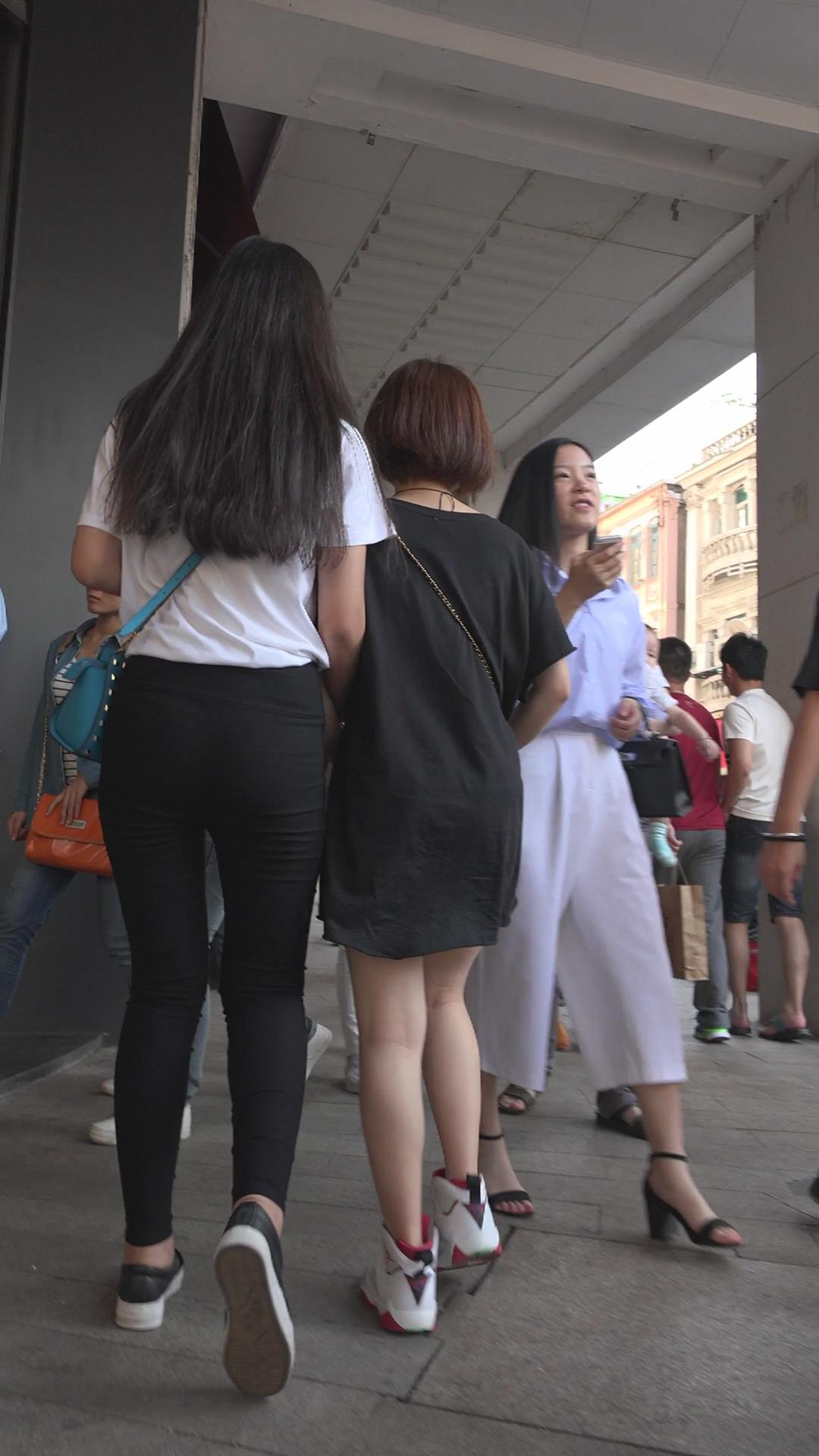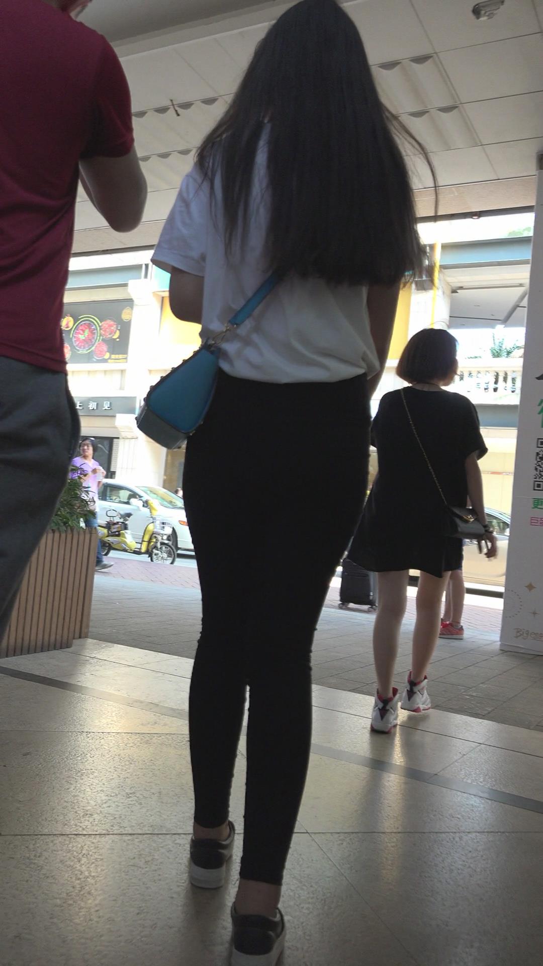 街拍紧身黑裤蜜桃臀美女 编号6098