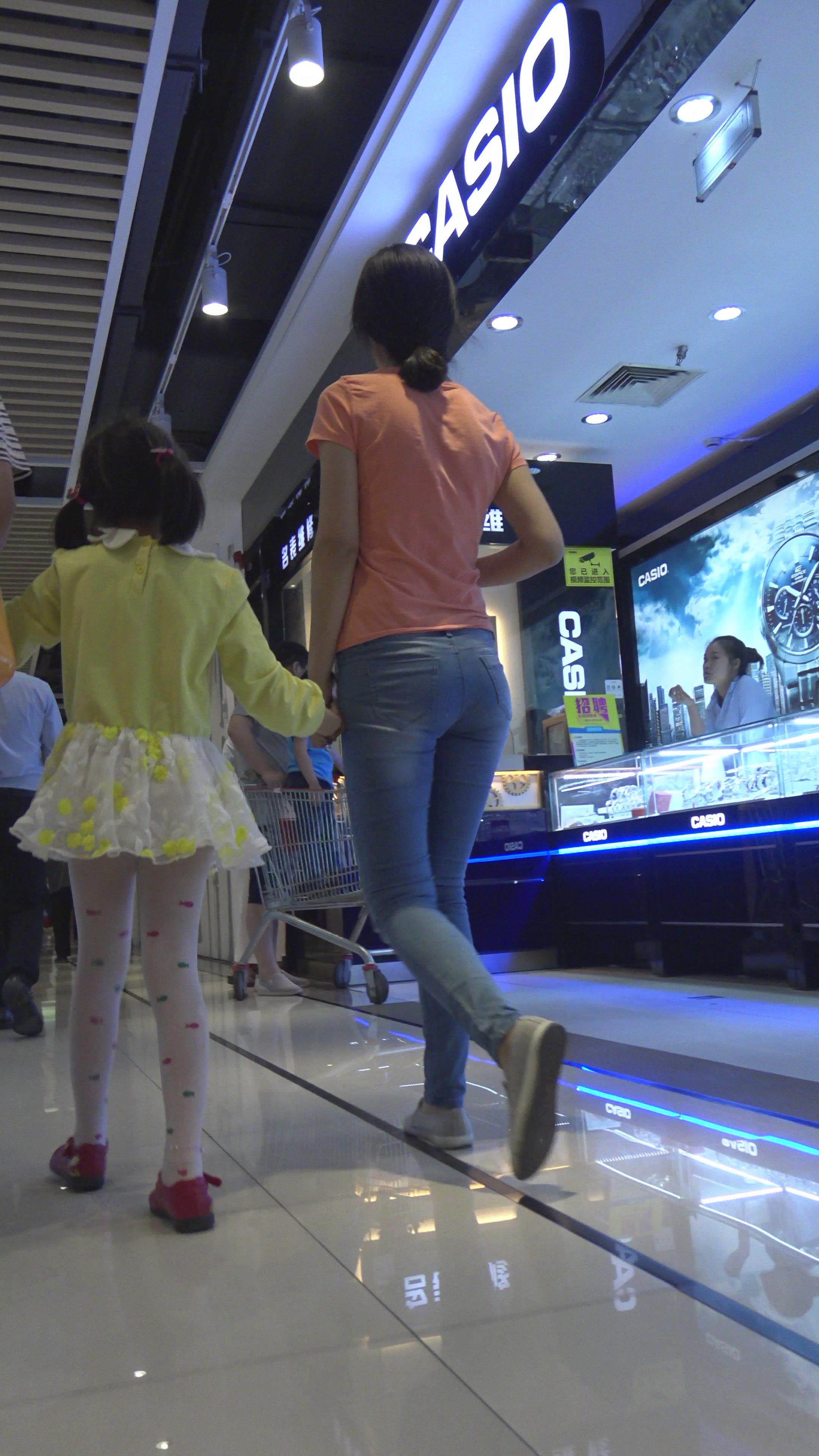 街拍紧身牛仔美,妇逛商场 编号5226