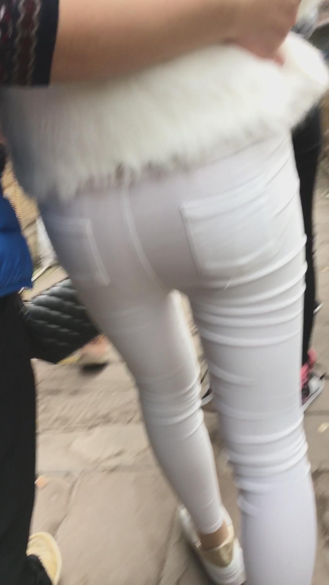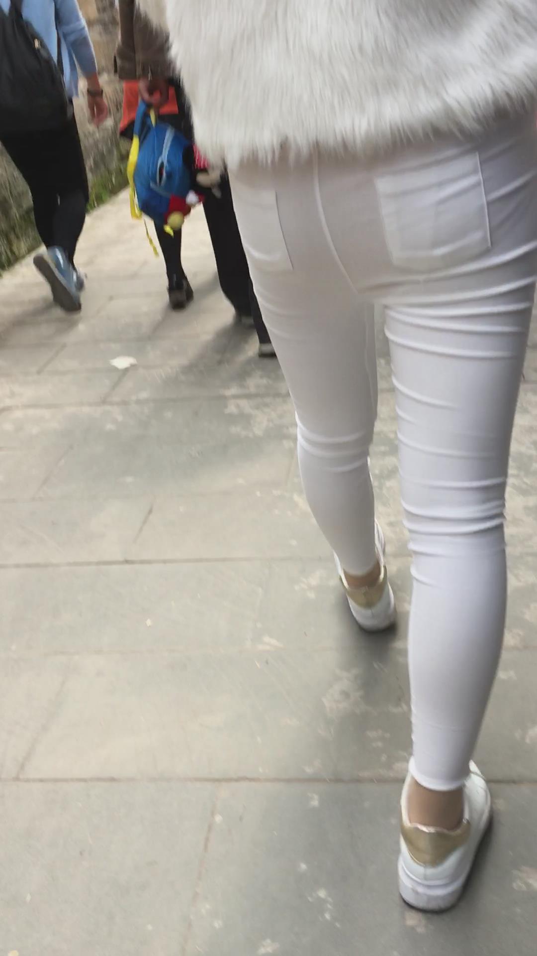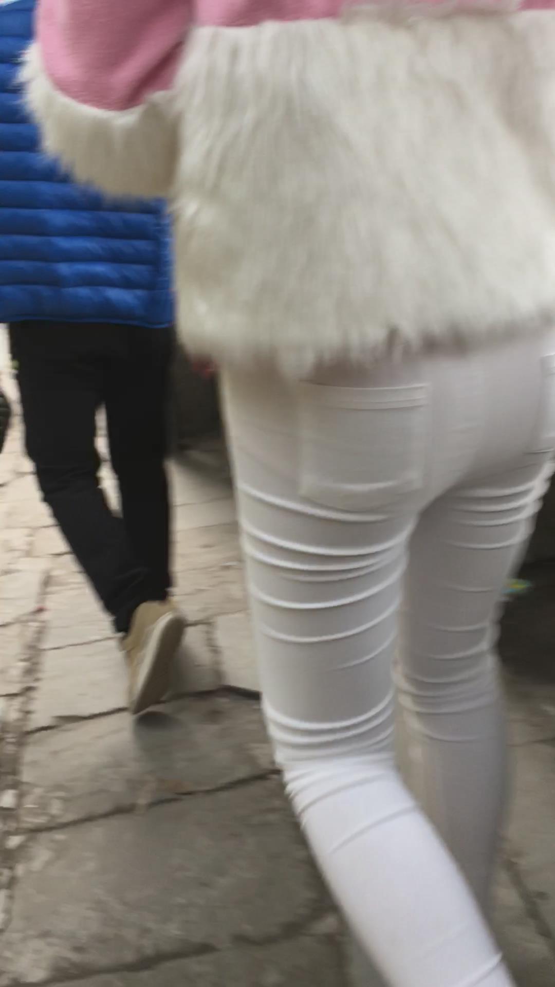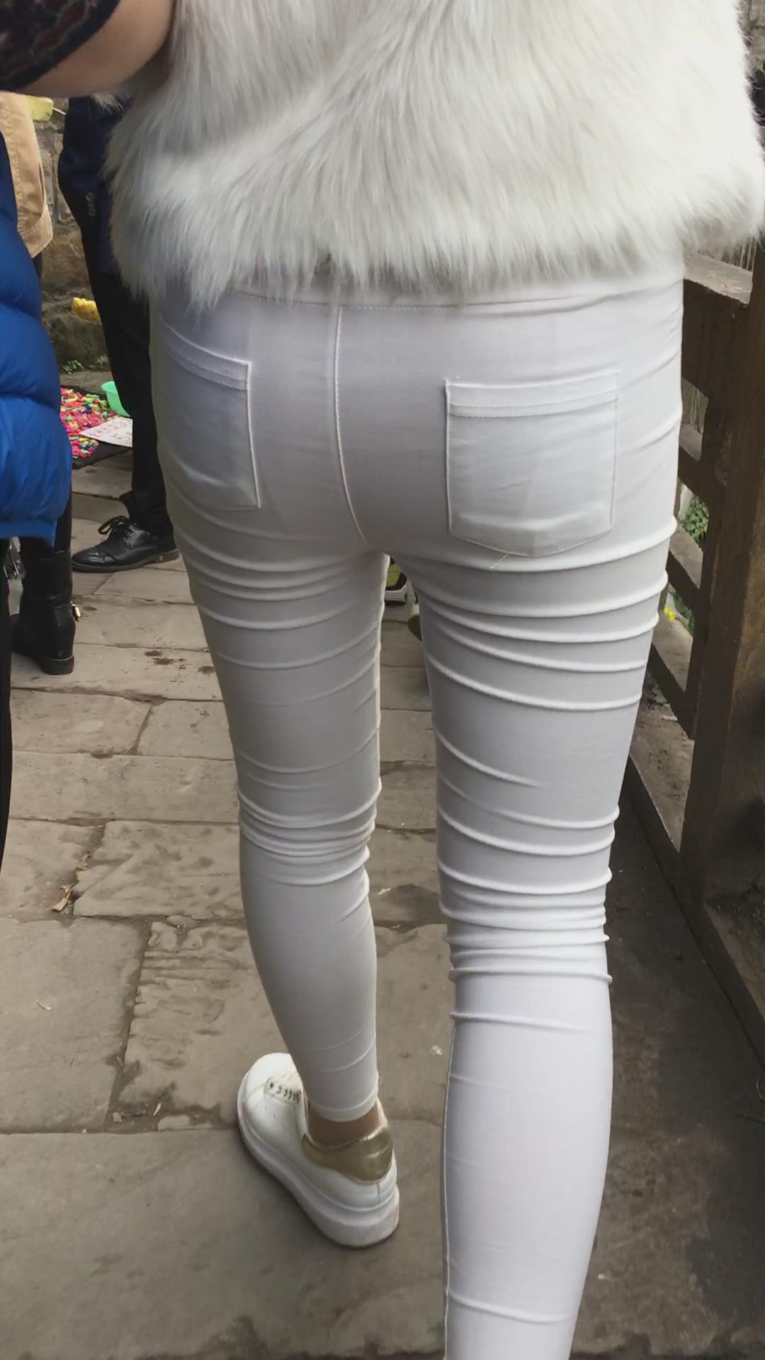 街拍紧身白裤白皙小妹 编号5234