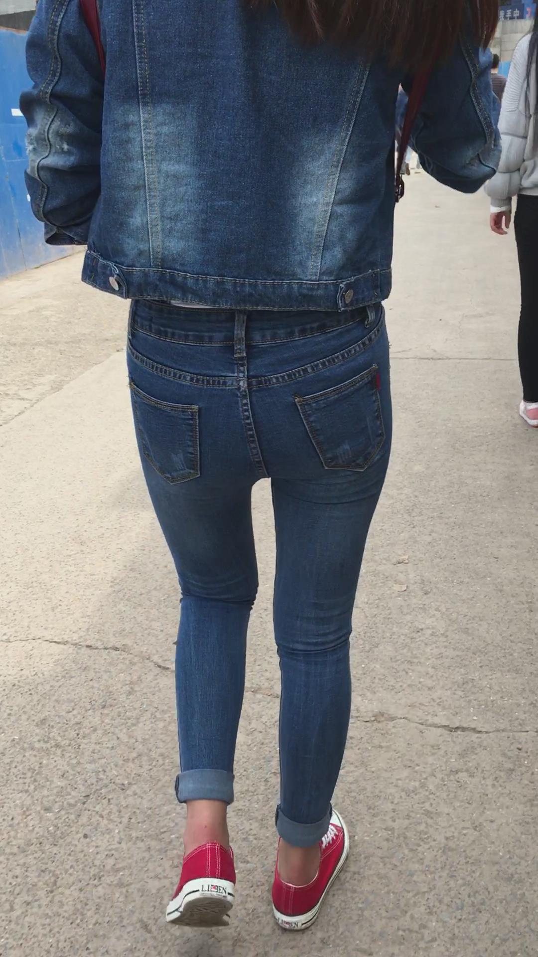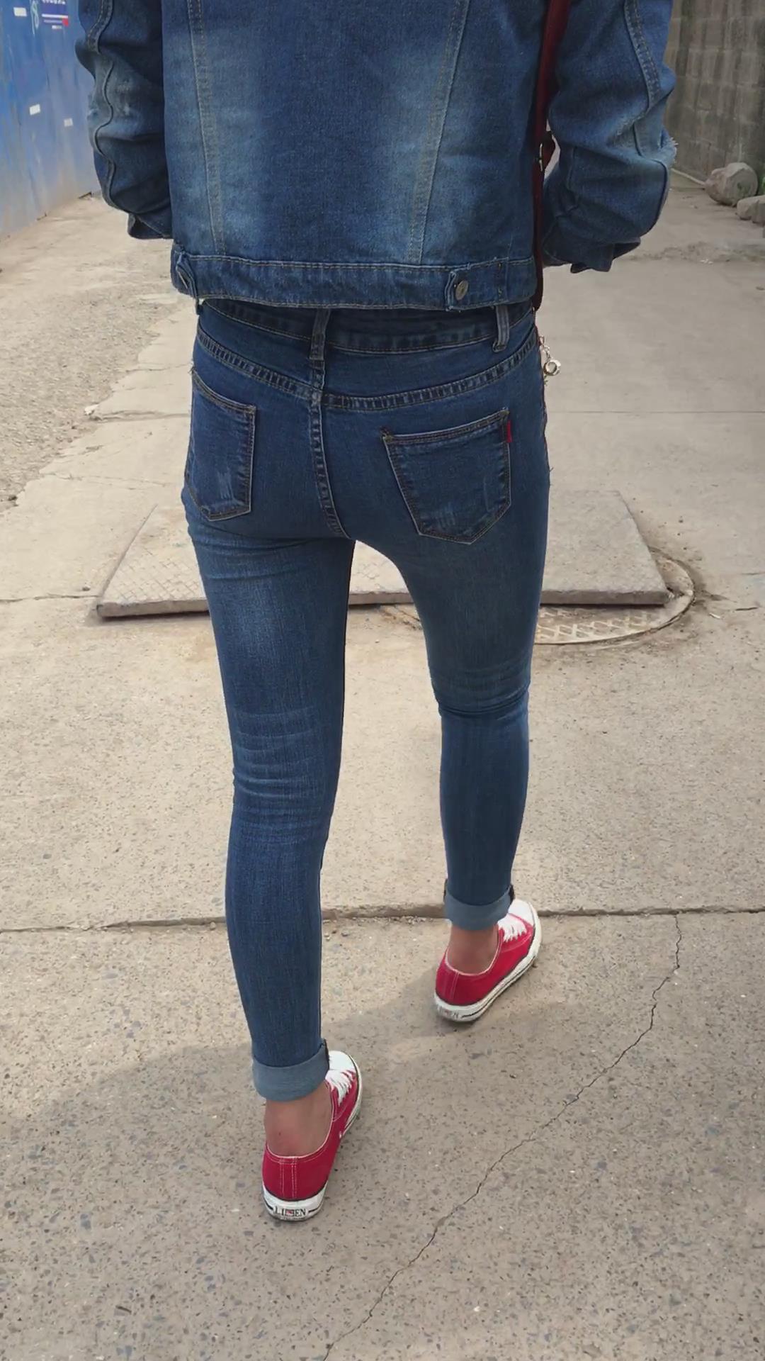 街拍紧身牛仔裤牛仔外套妹子 编号5236