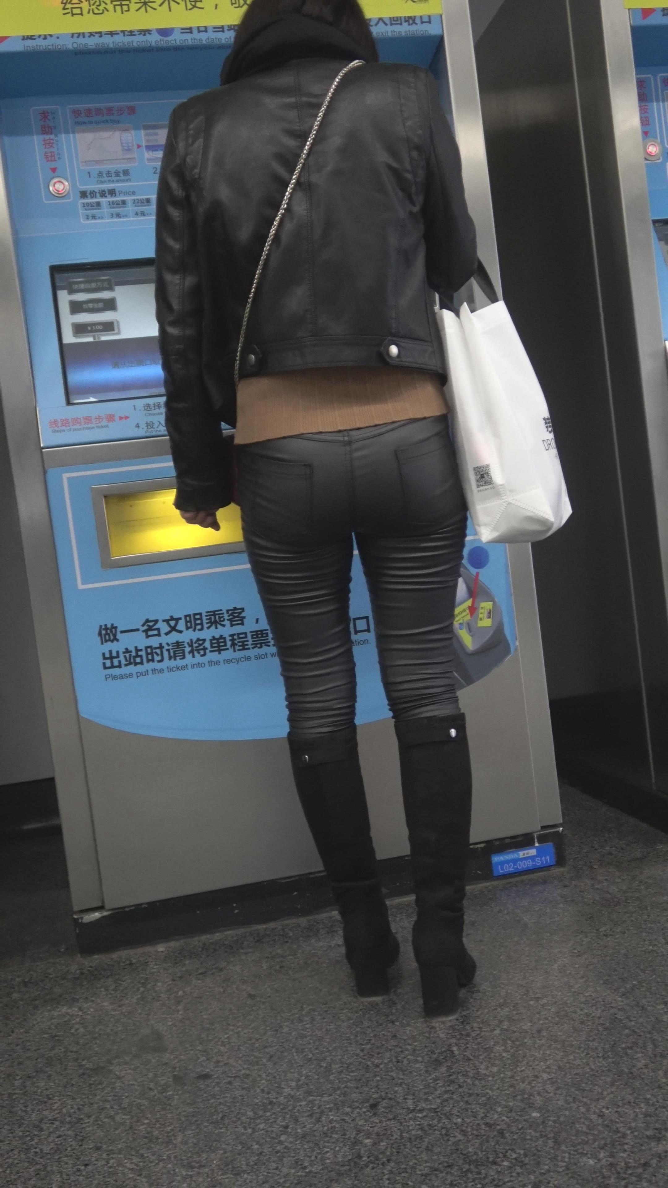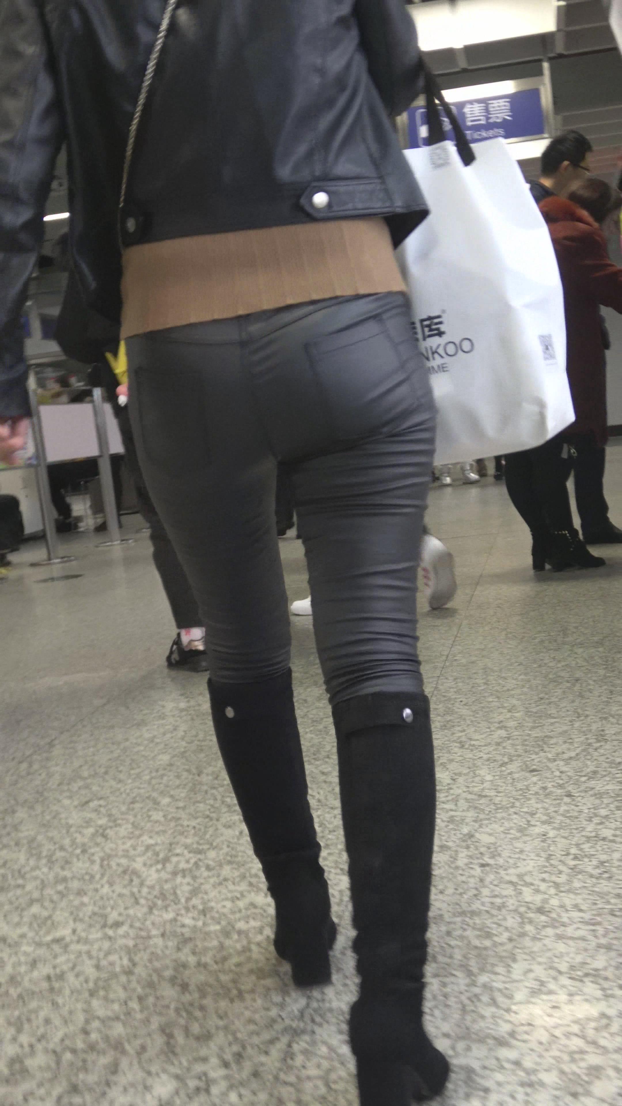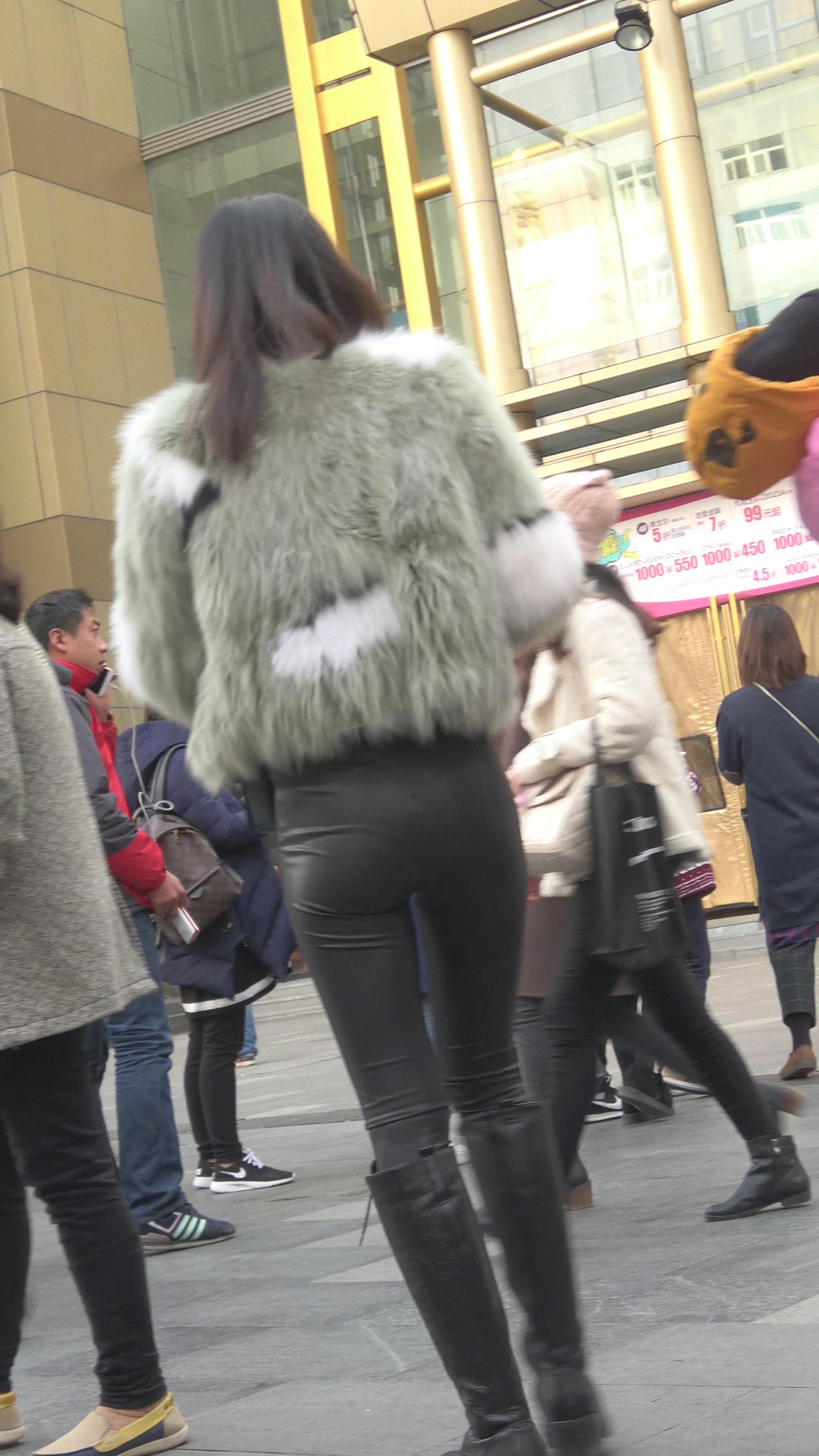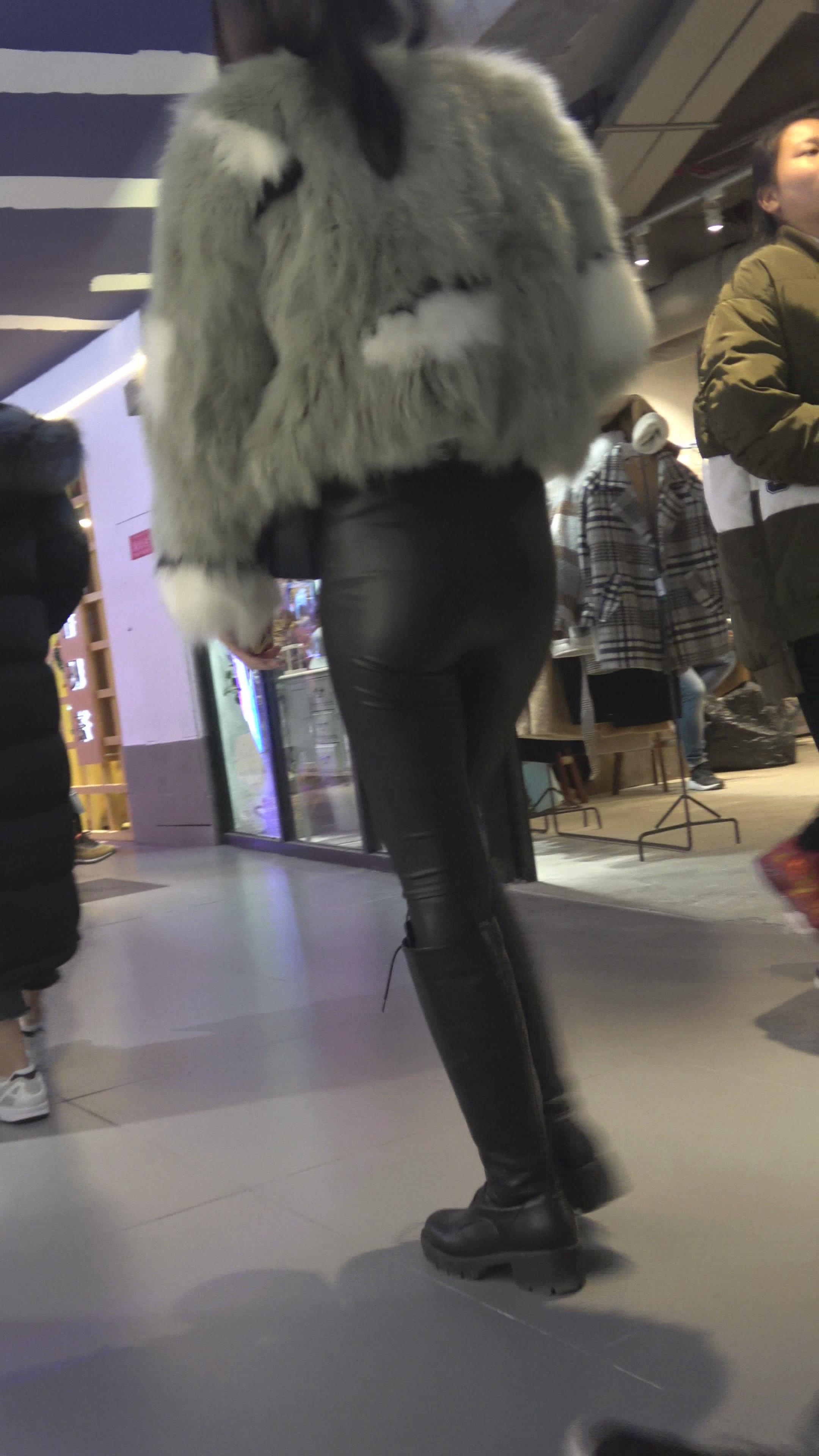 4K 跟拍逛商场的紧身皮裤美女 编号5239