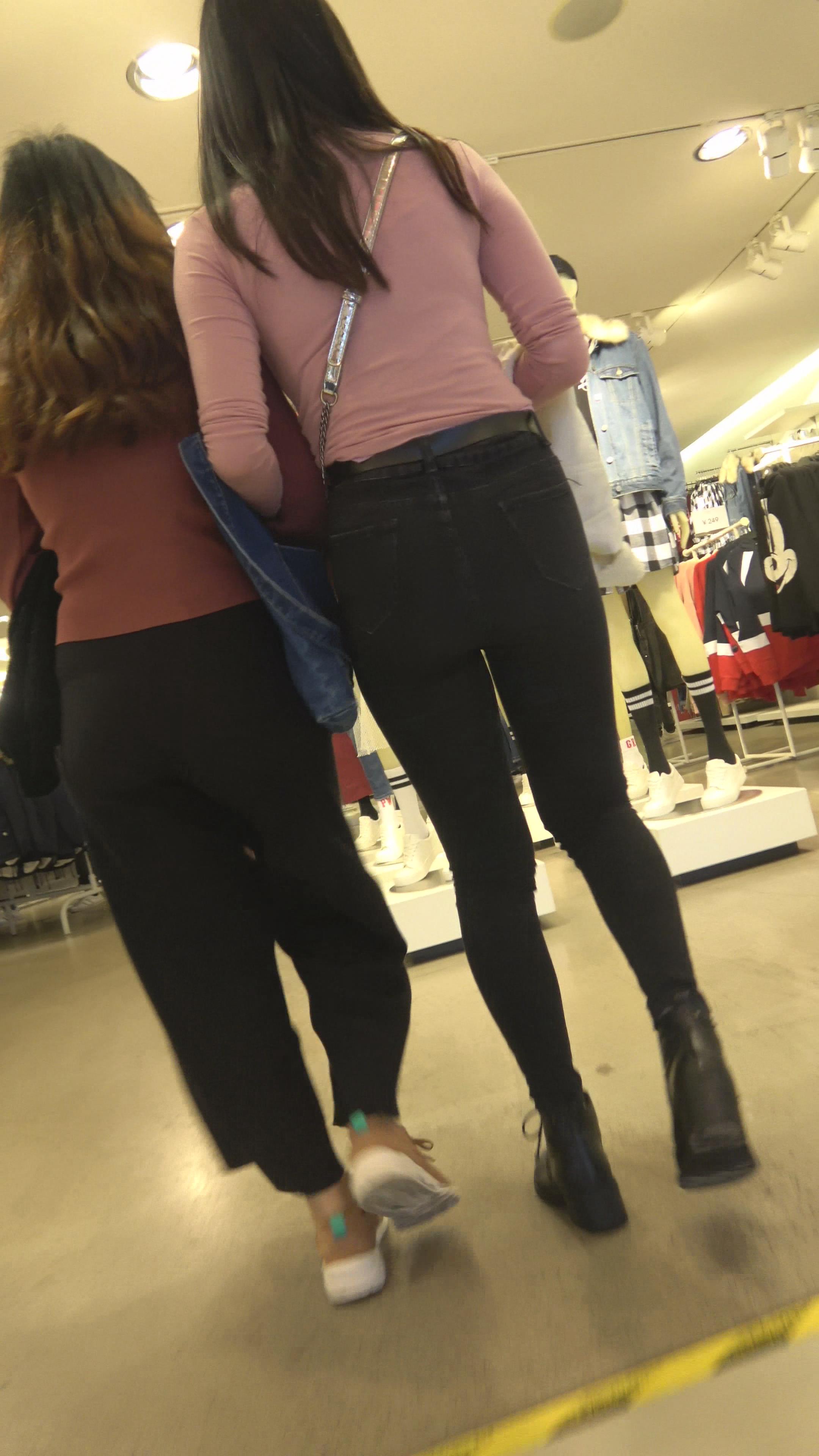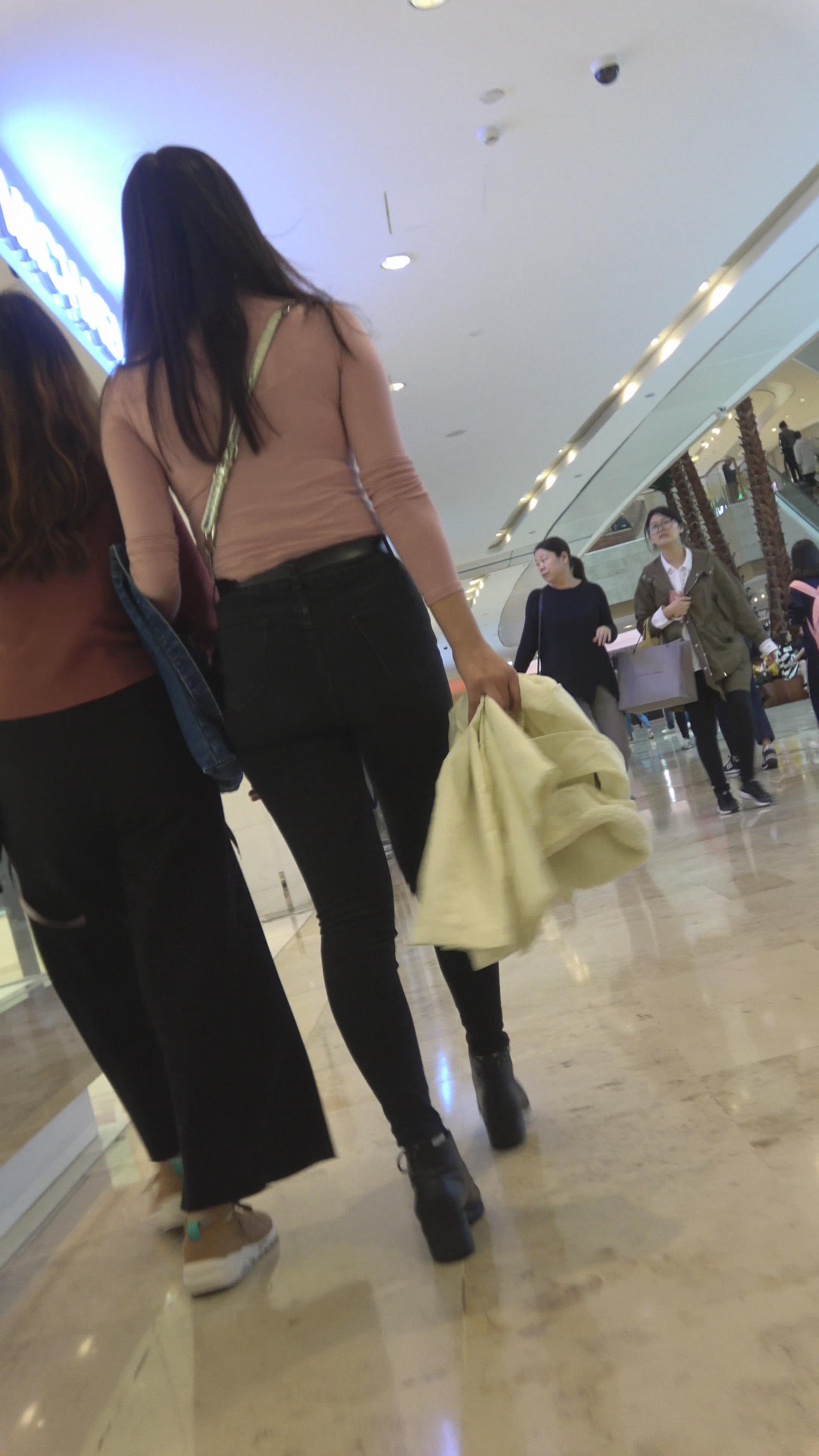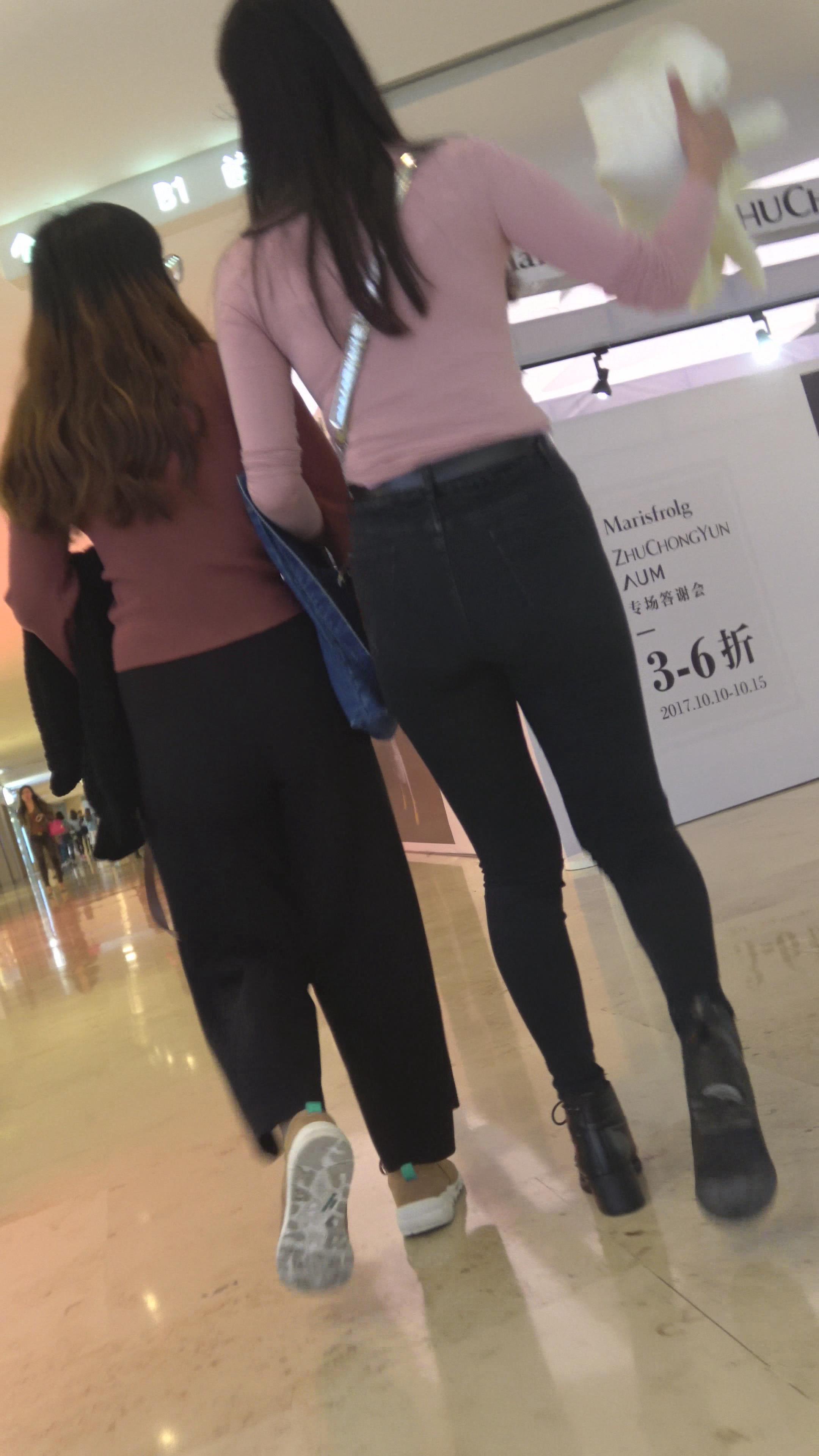 4K 两位街拍紧身牛仔美眉逛商场 编号5245