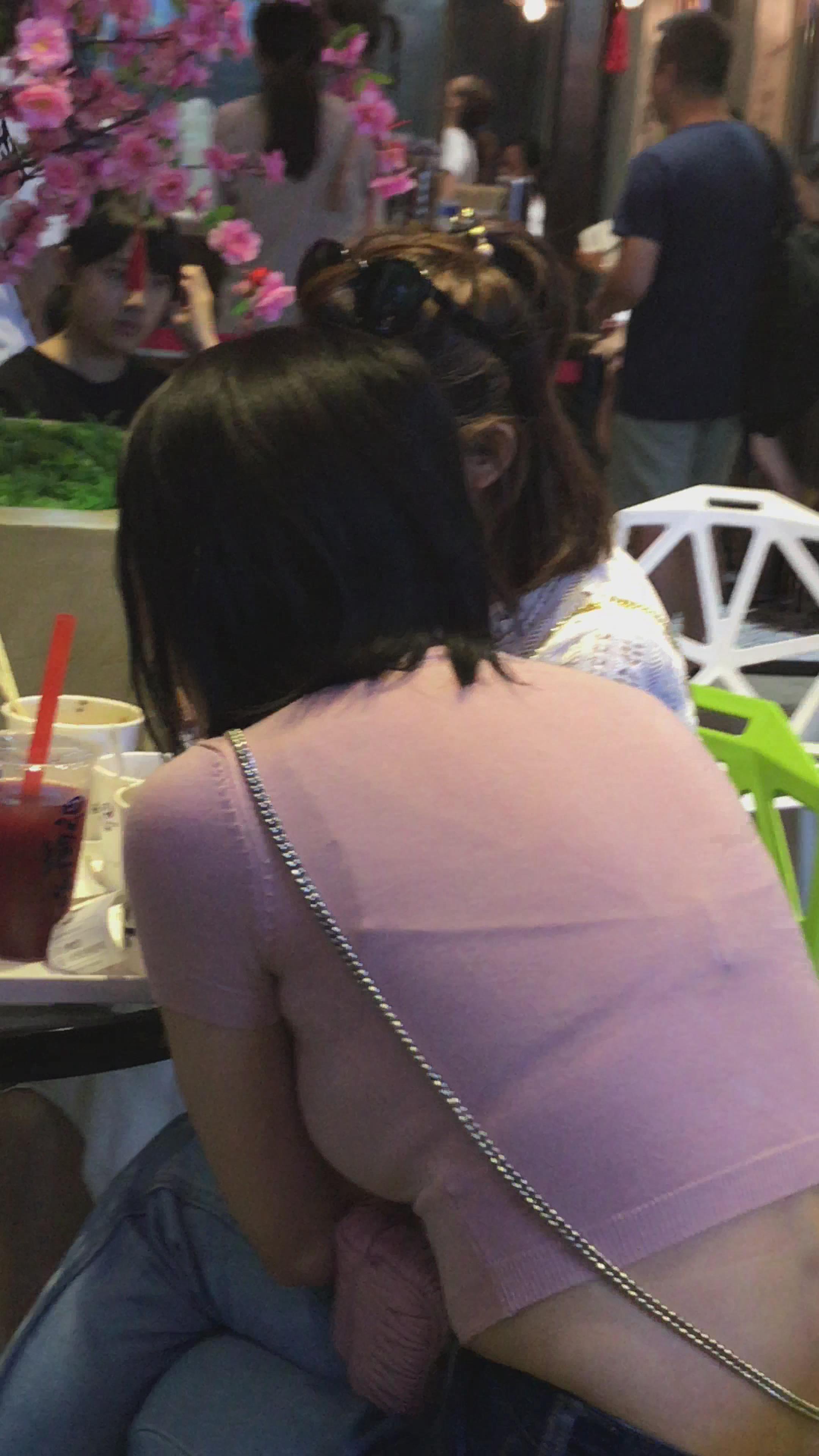 粉衣服街拍紧身丰腴身材美女 编号5249
