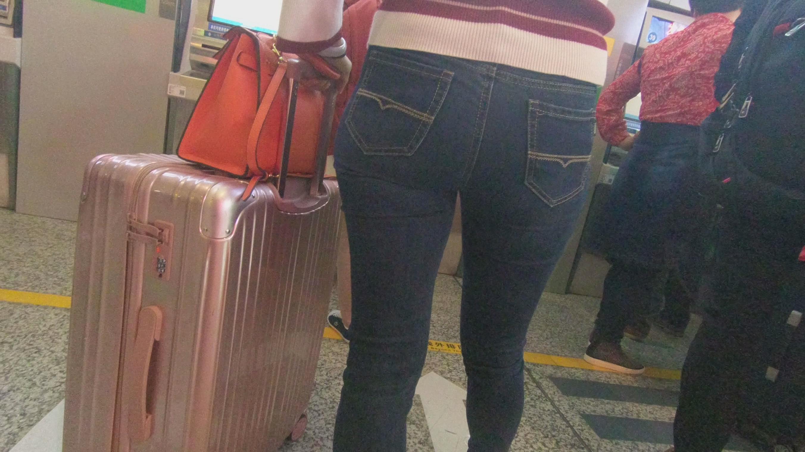街拍紧身肉臀美眉车展排队等车 编号5257