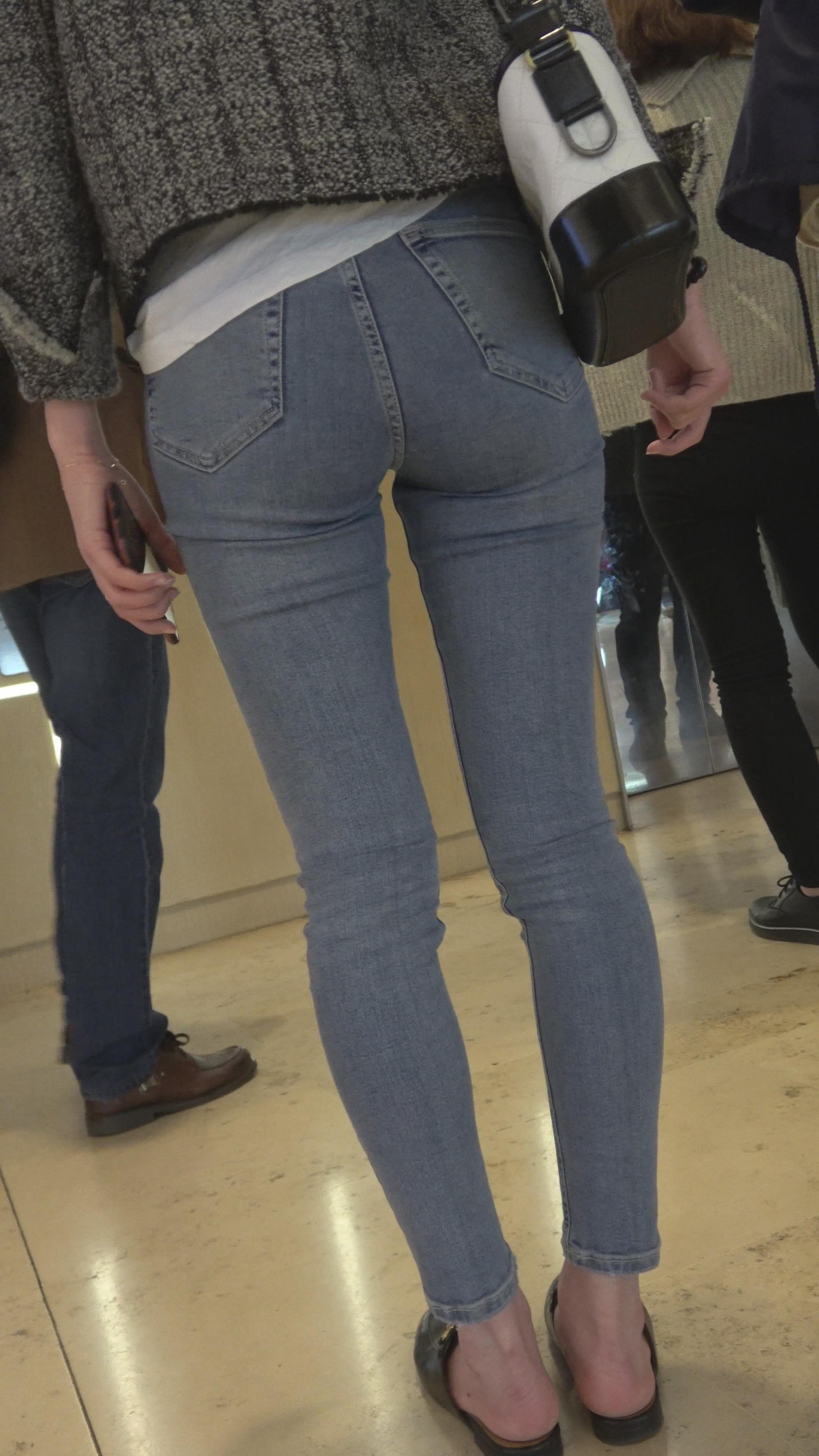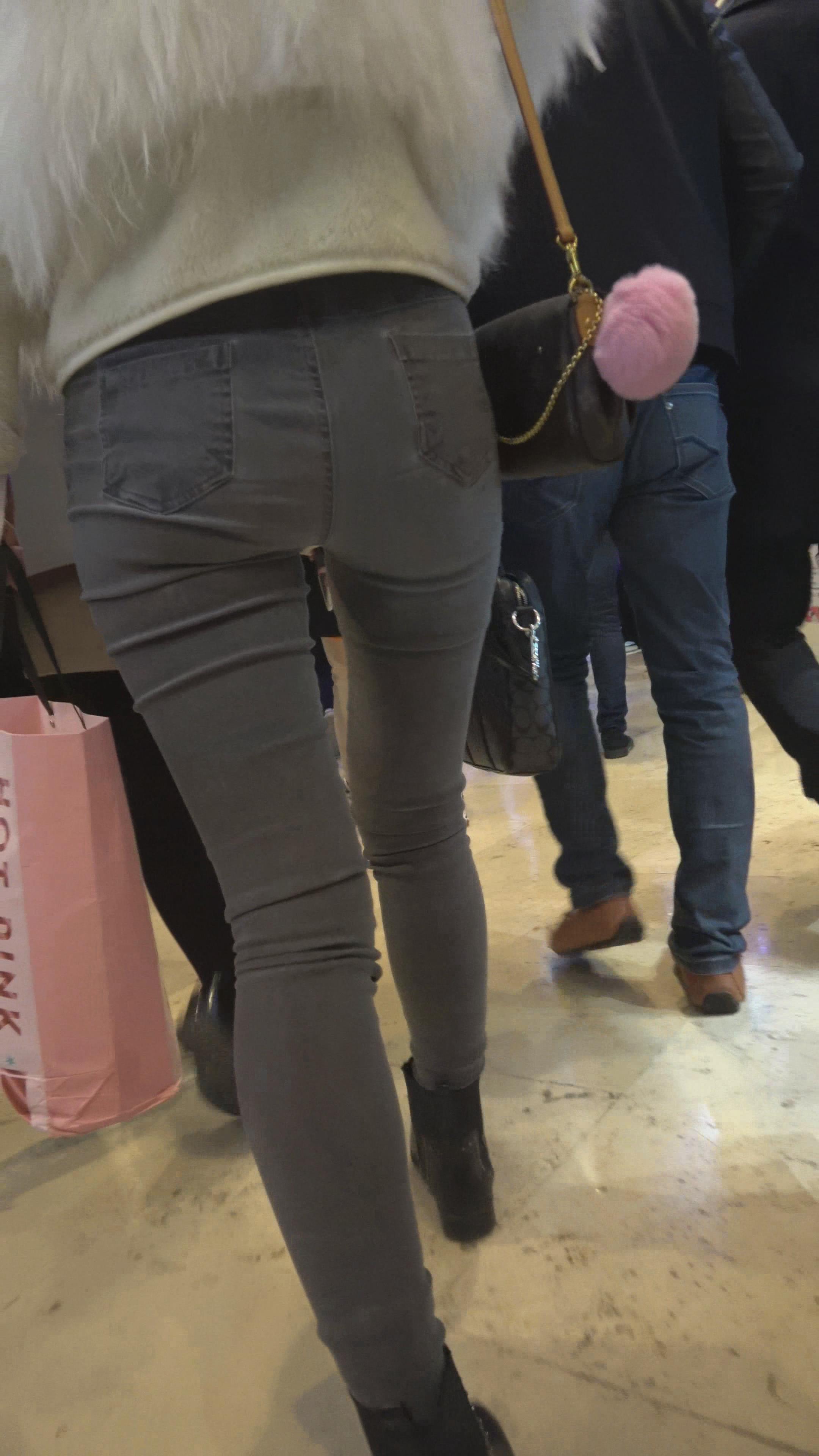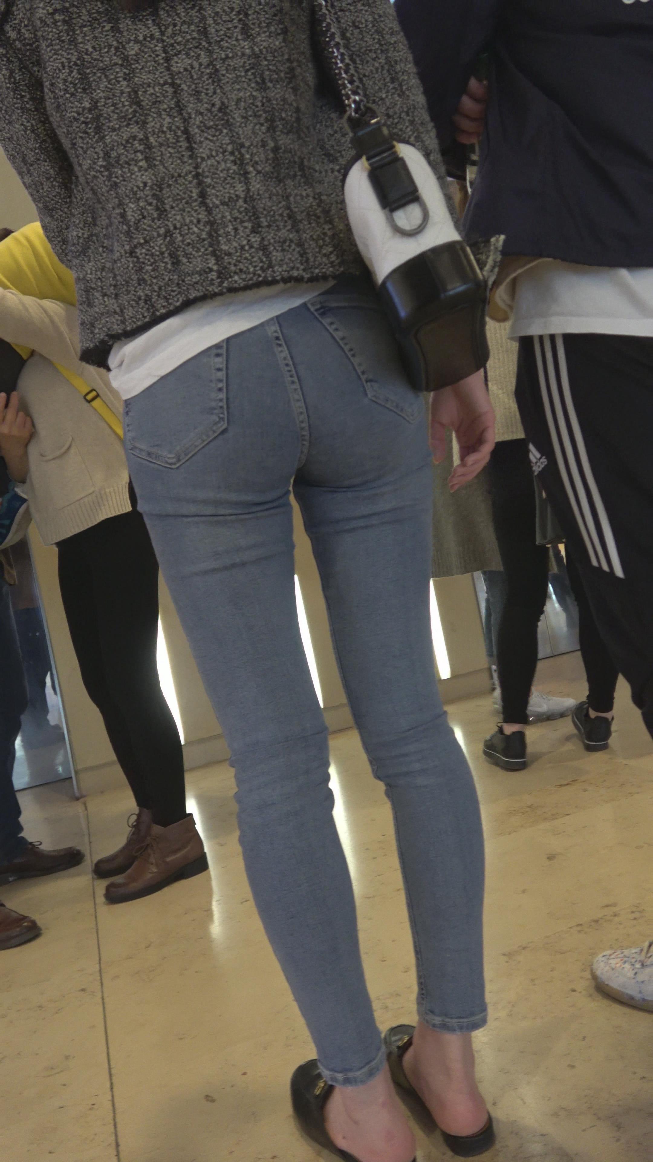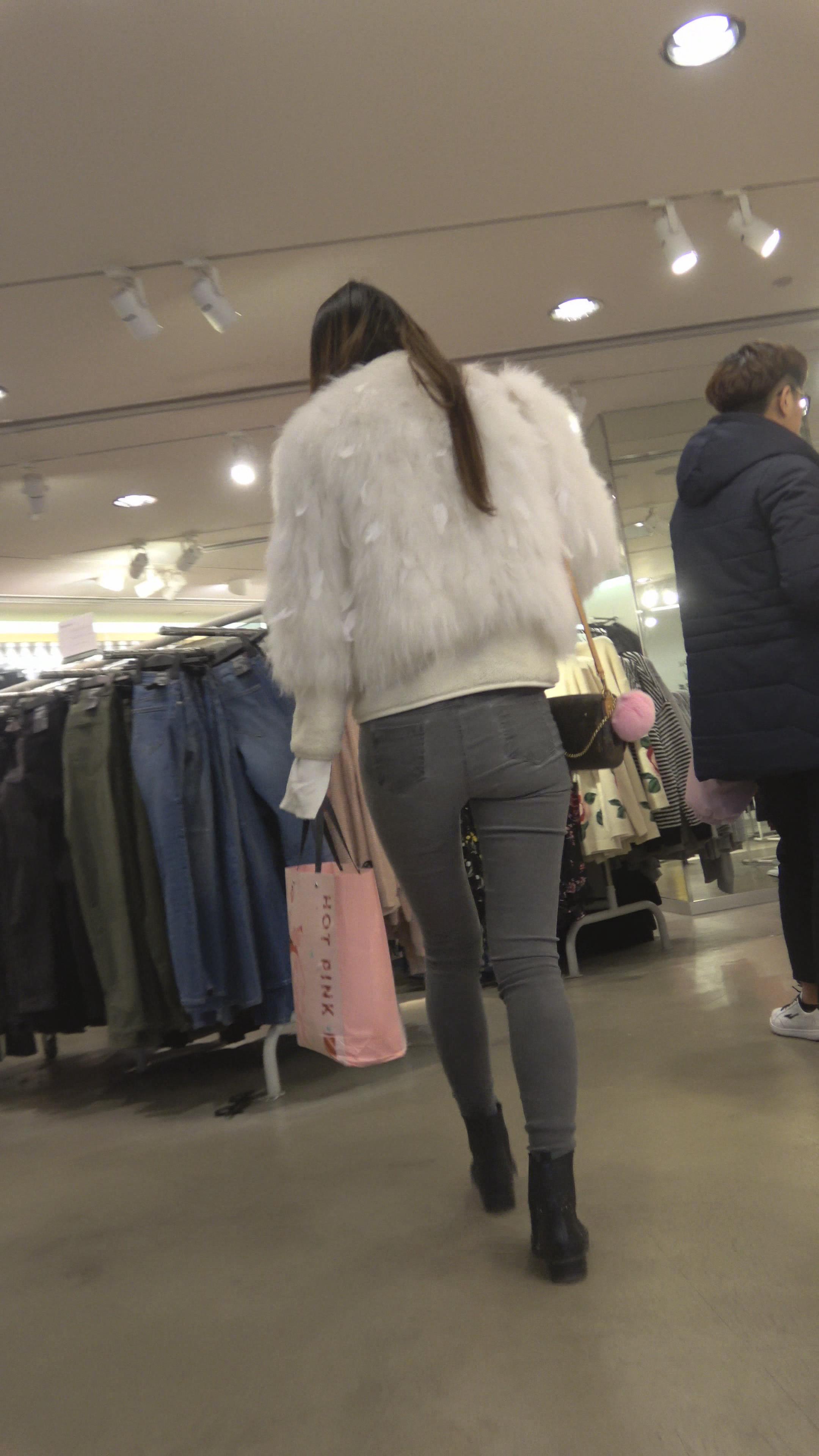 4K - 街拍商场的两位紧身牛仔美女 编号5260