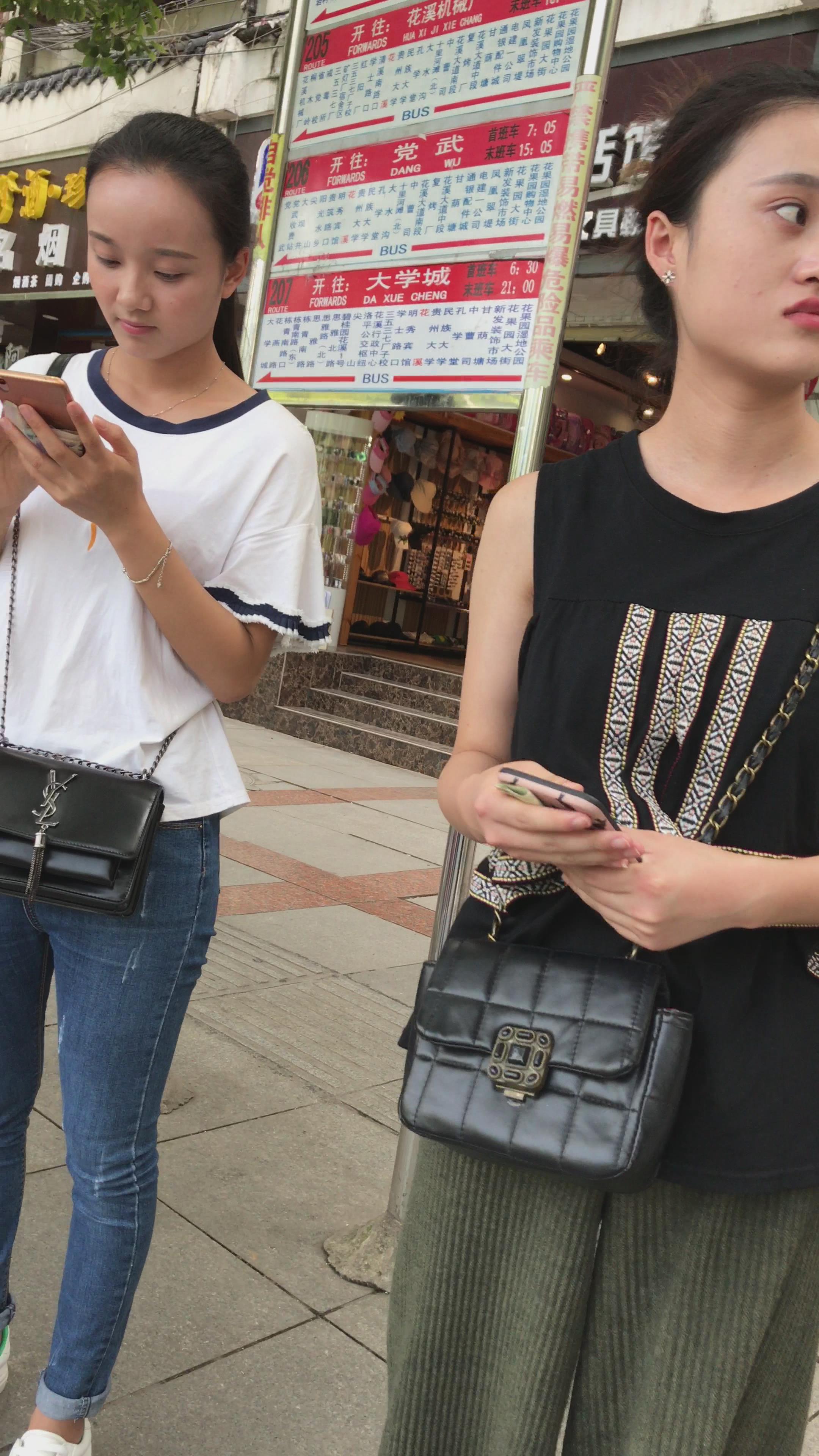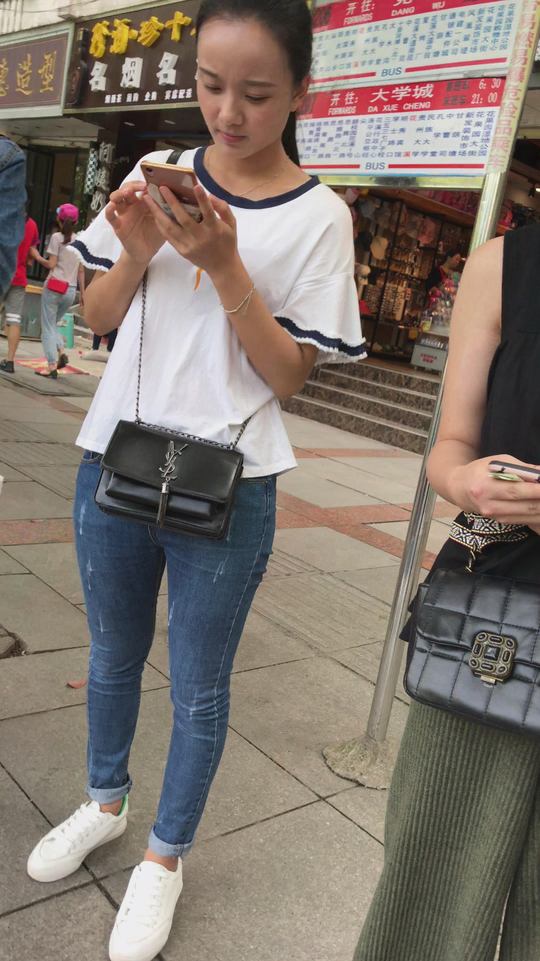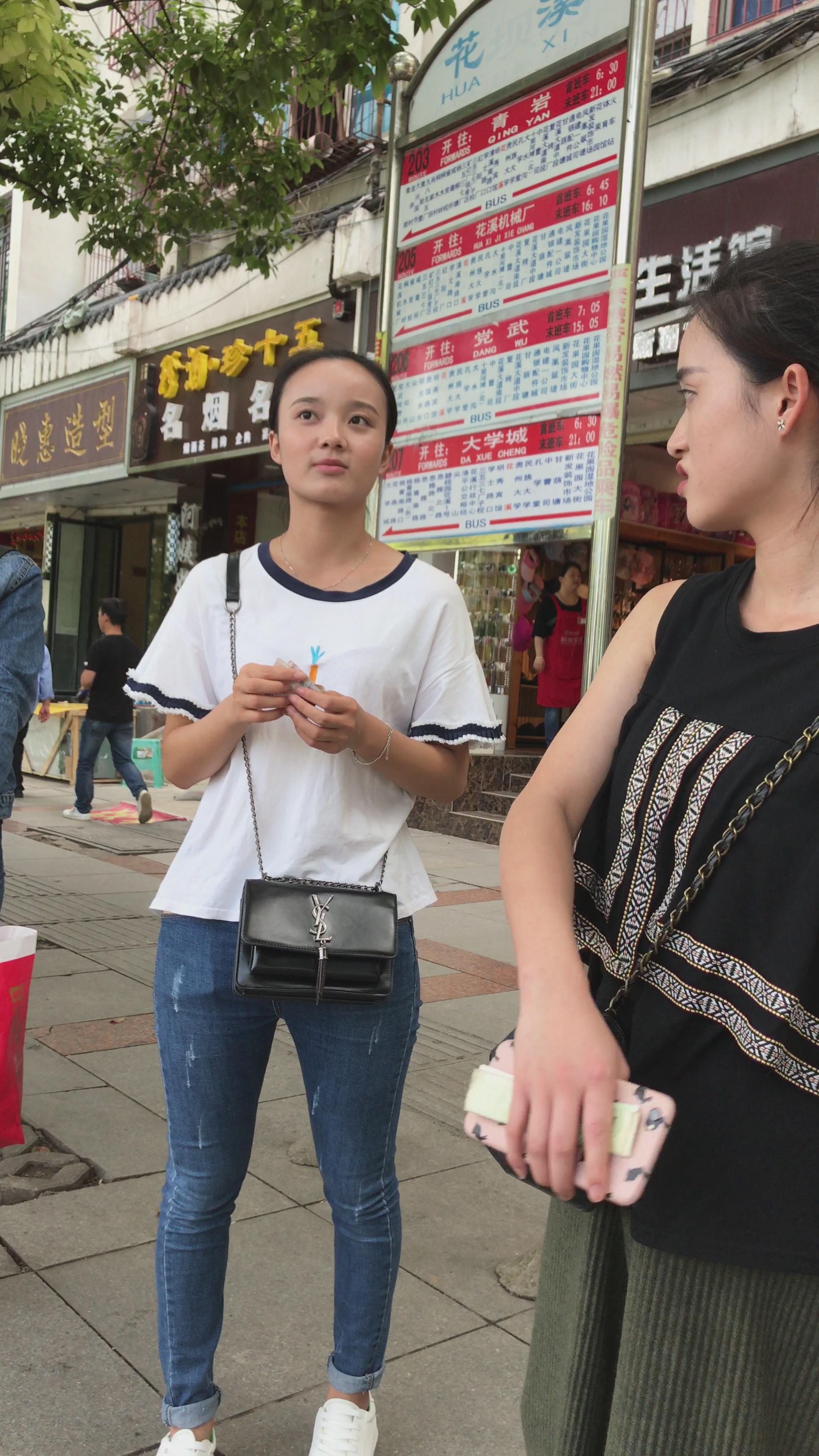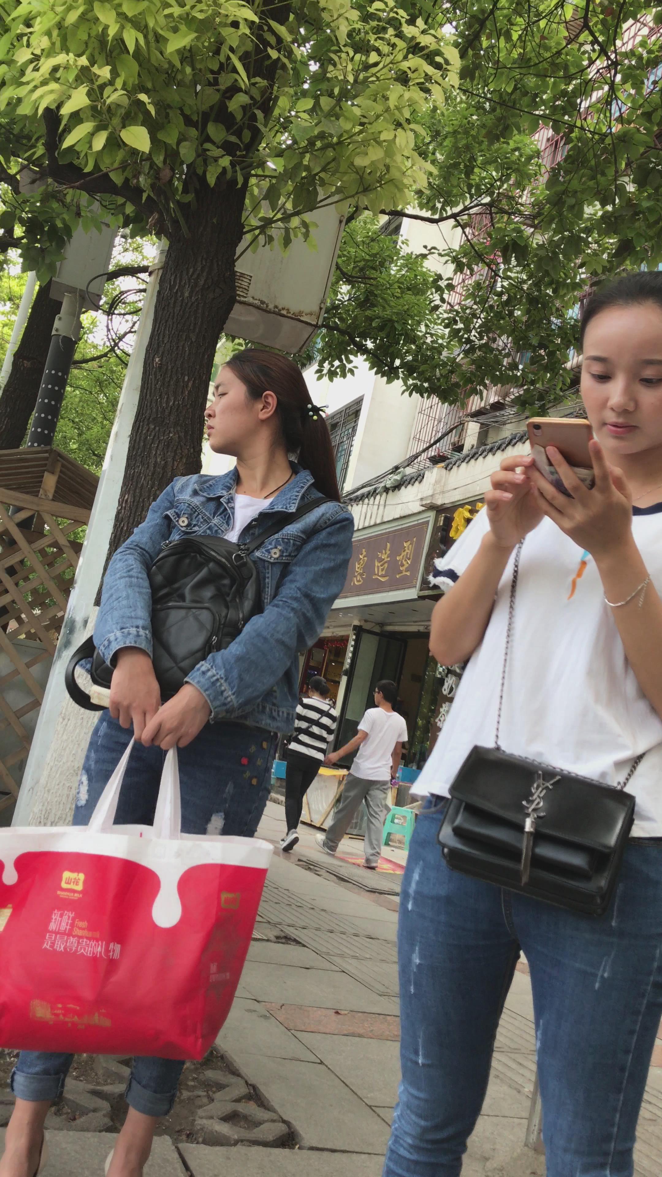 街拍紧身牛仔裤美眉再等公交车 编号5261