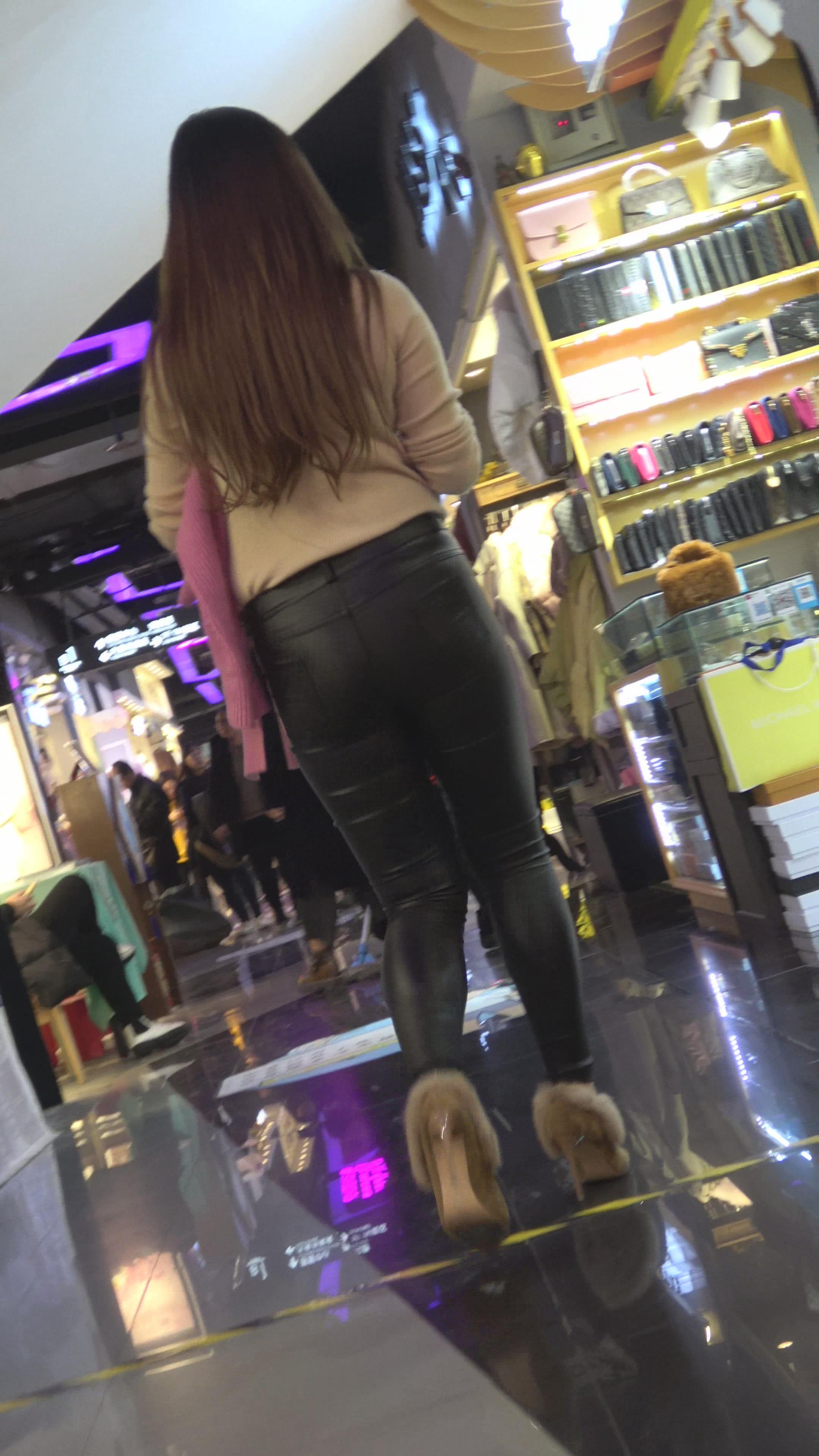 街拍皮裤紧身蜜桃臀性感美女 编号5265