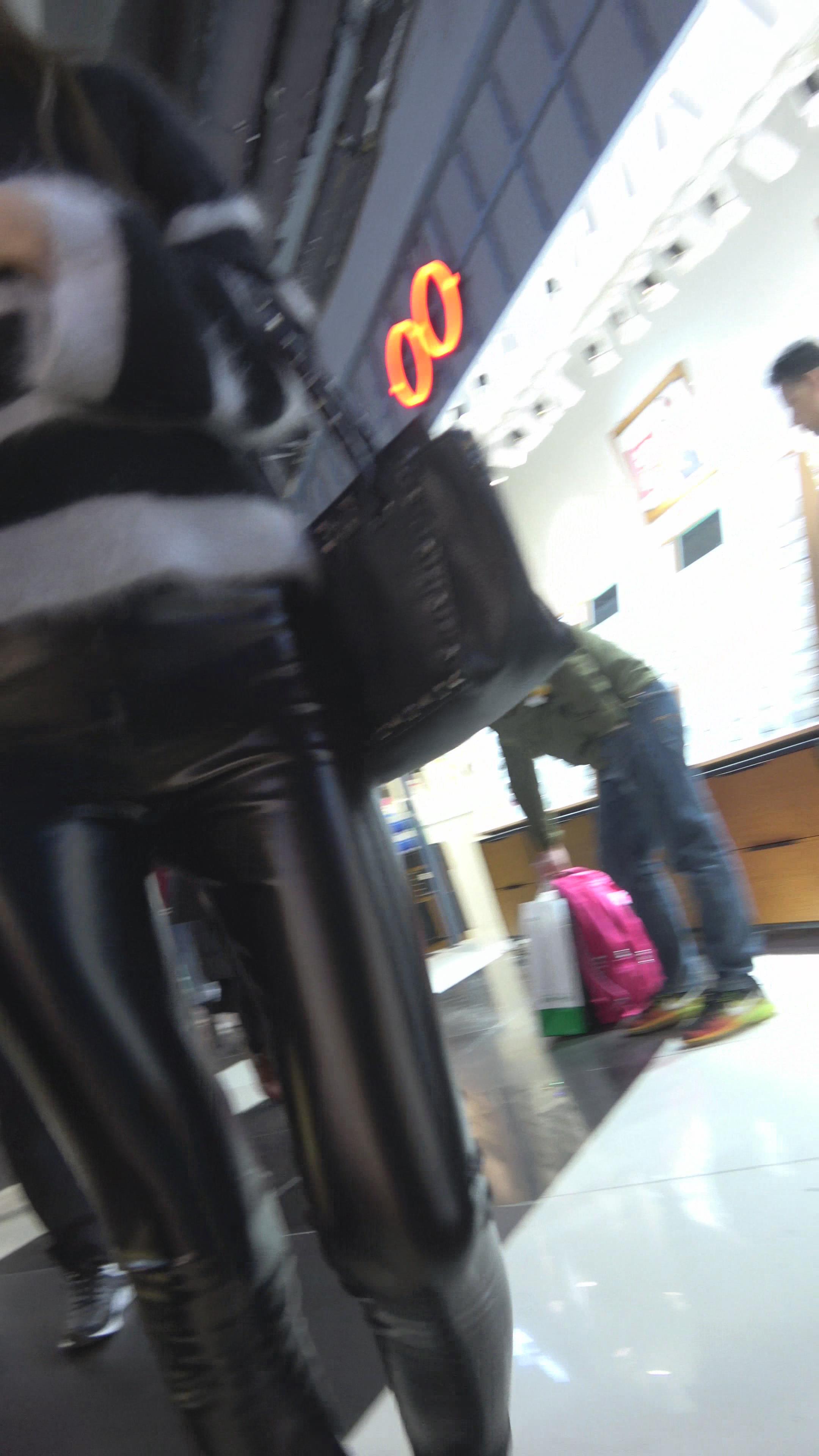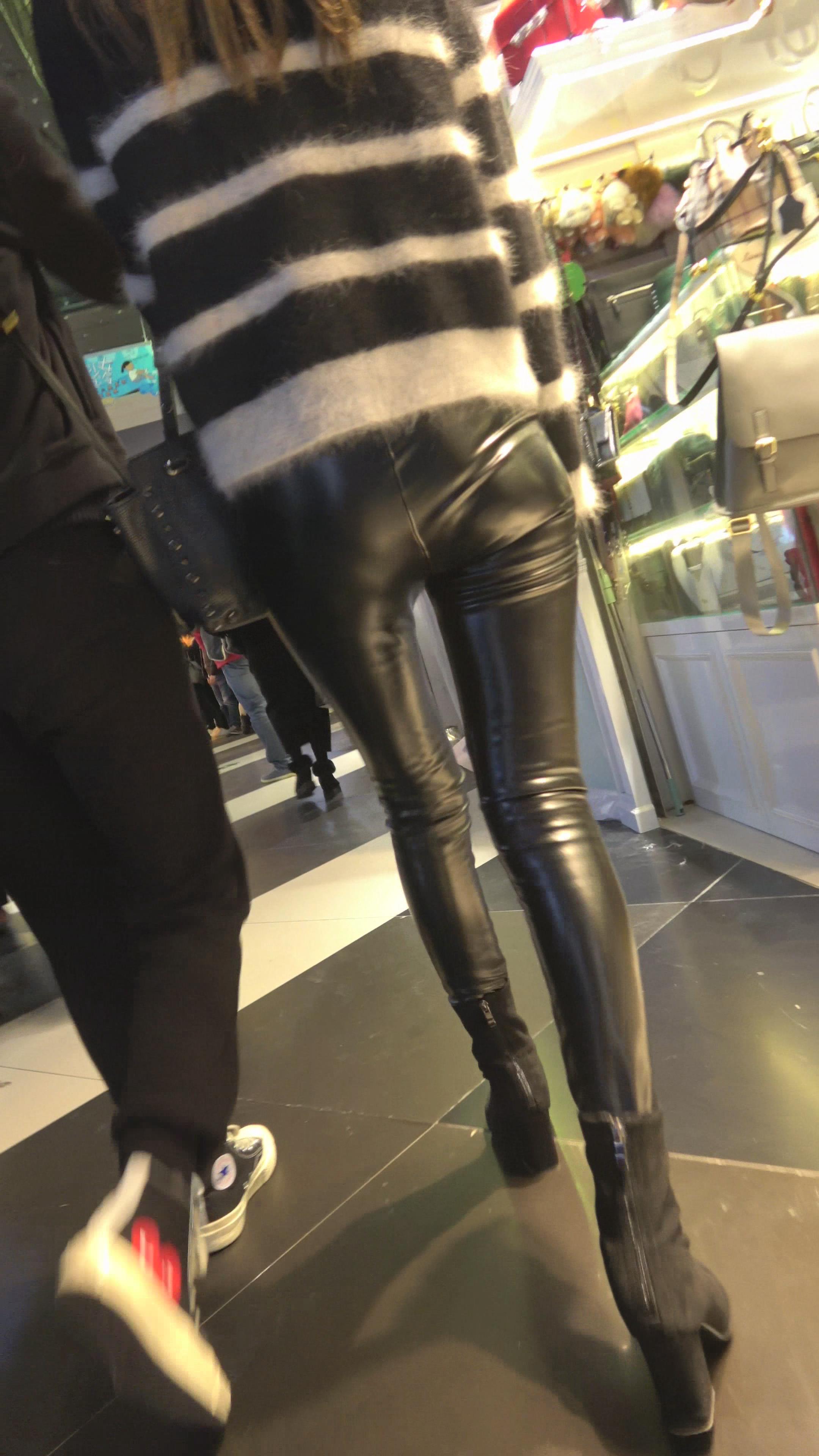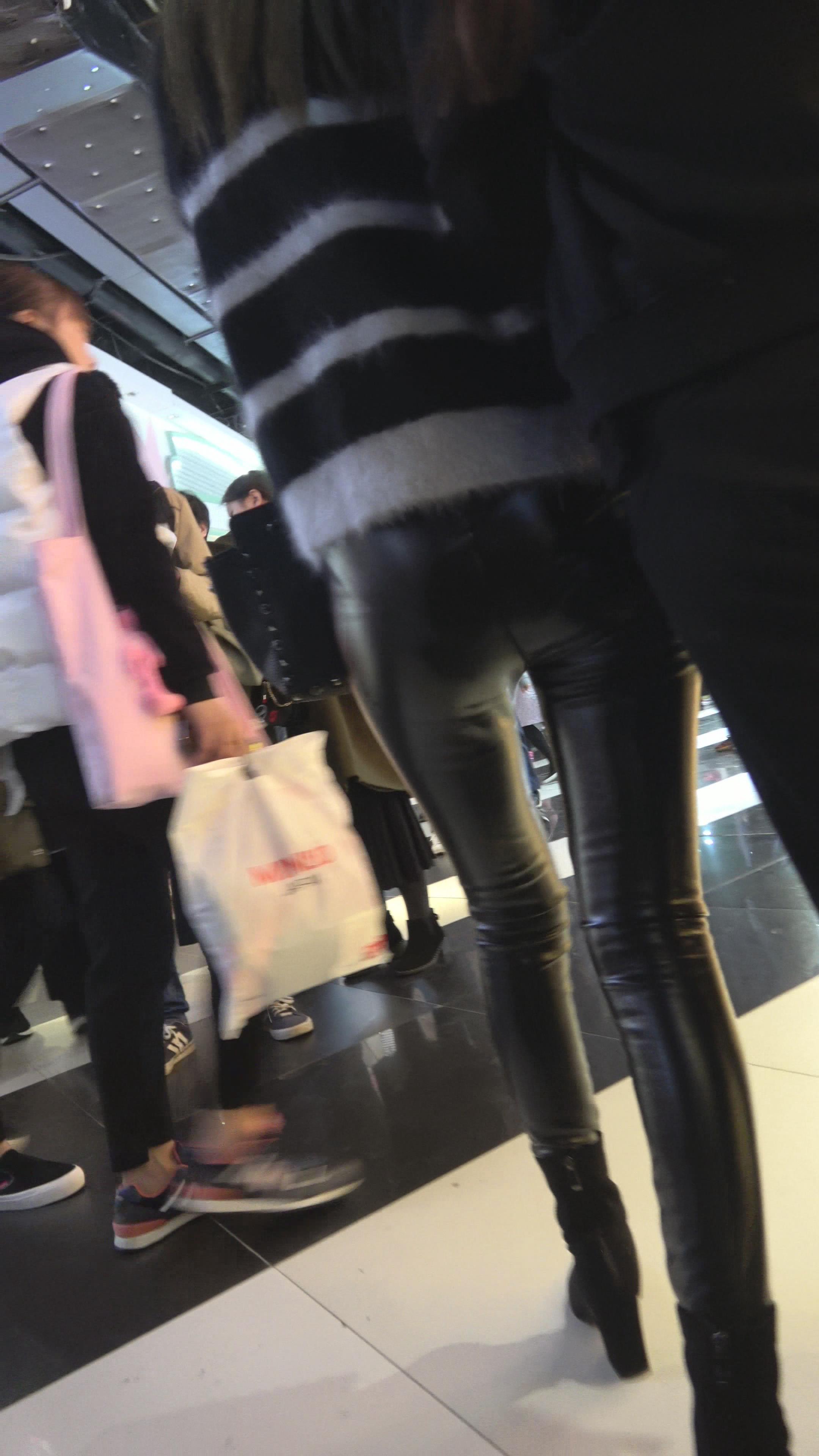4K - 街拍紧身皮裤黑色系姑娘 编号5268