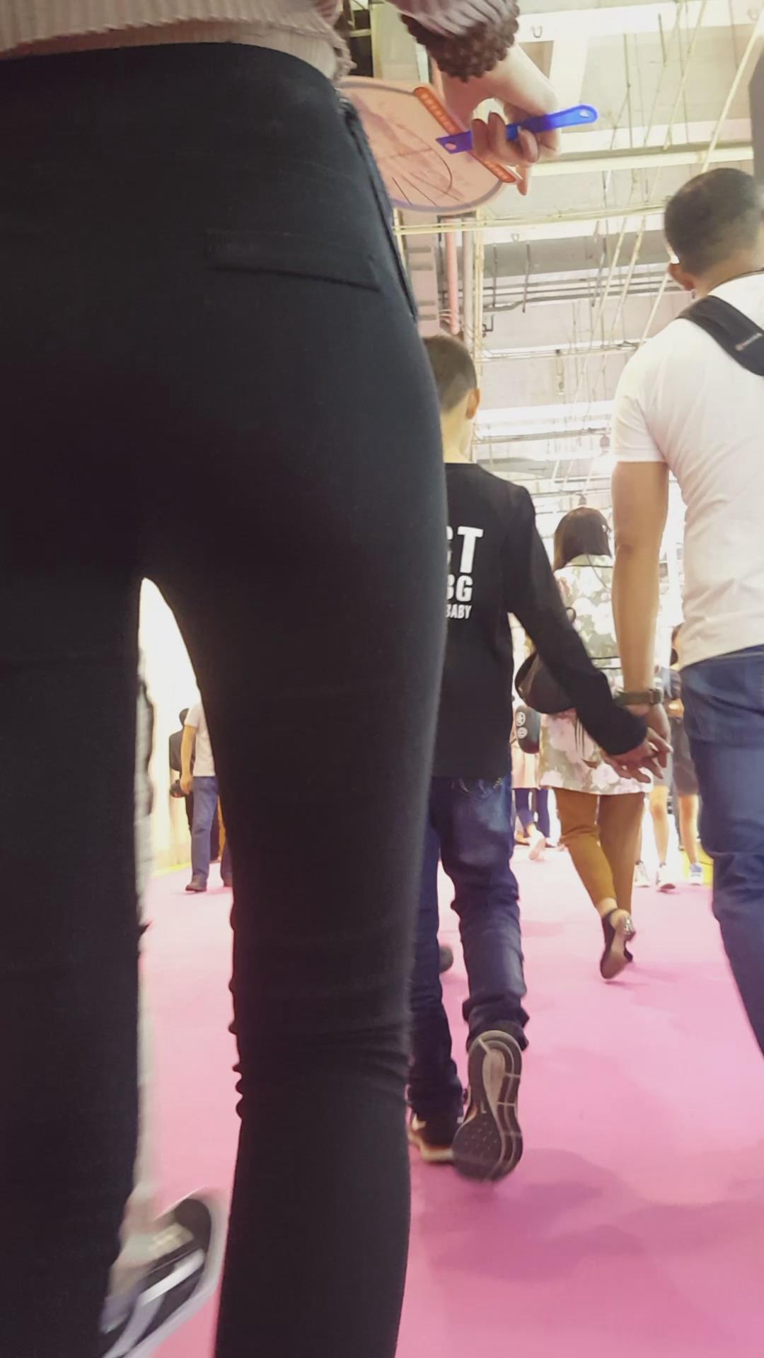 黑色紧身裤街拍美臀姐姐 编号5301