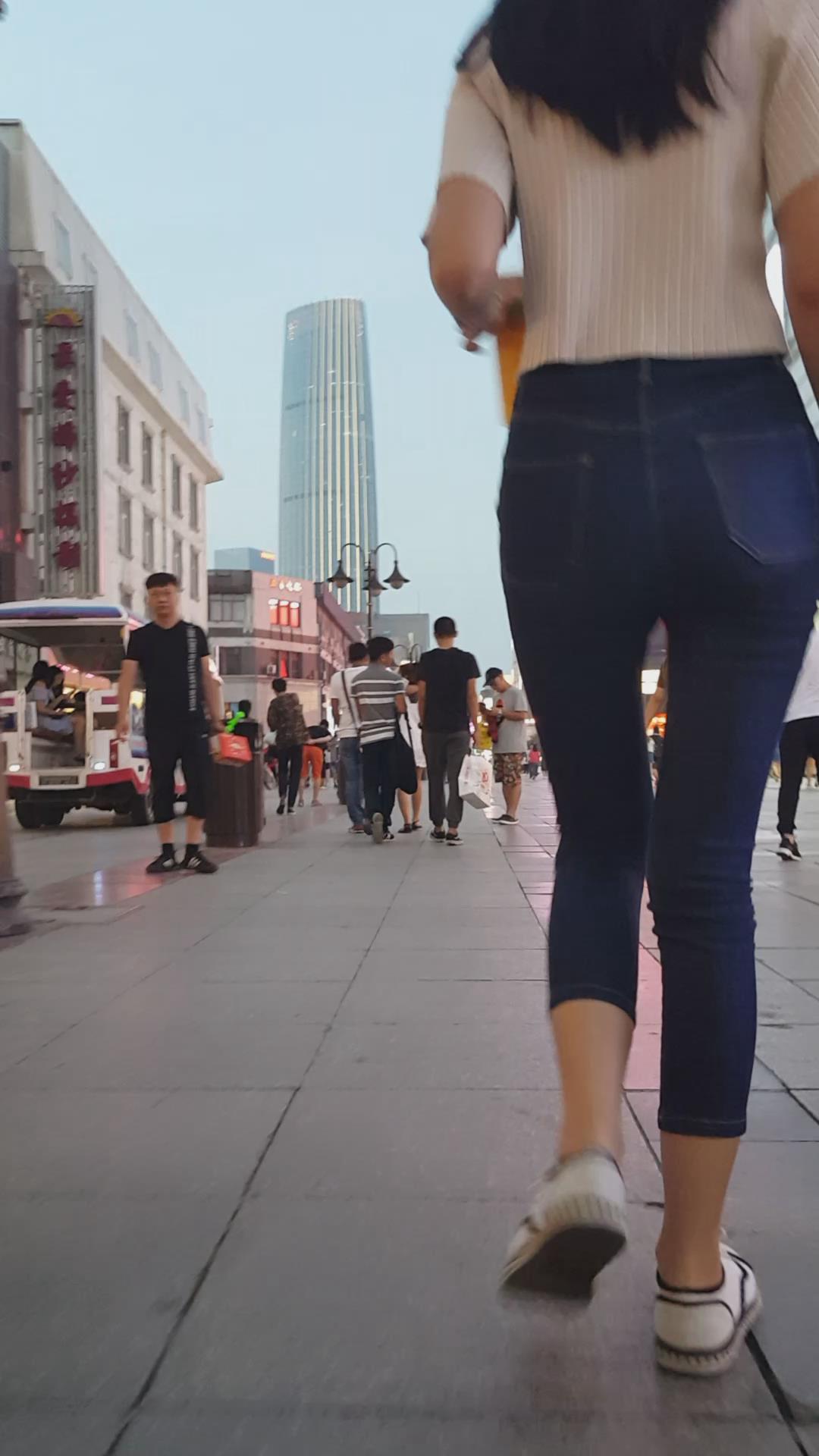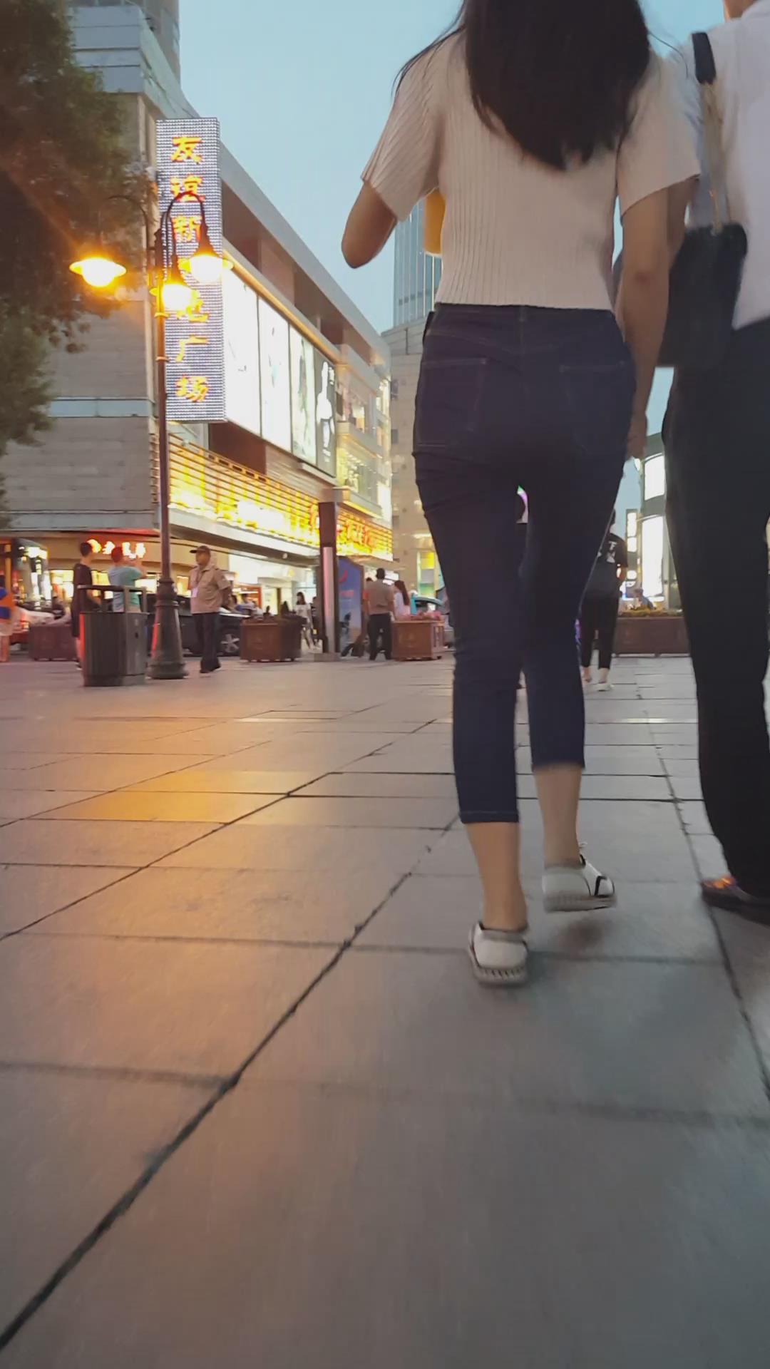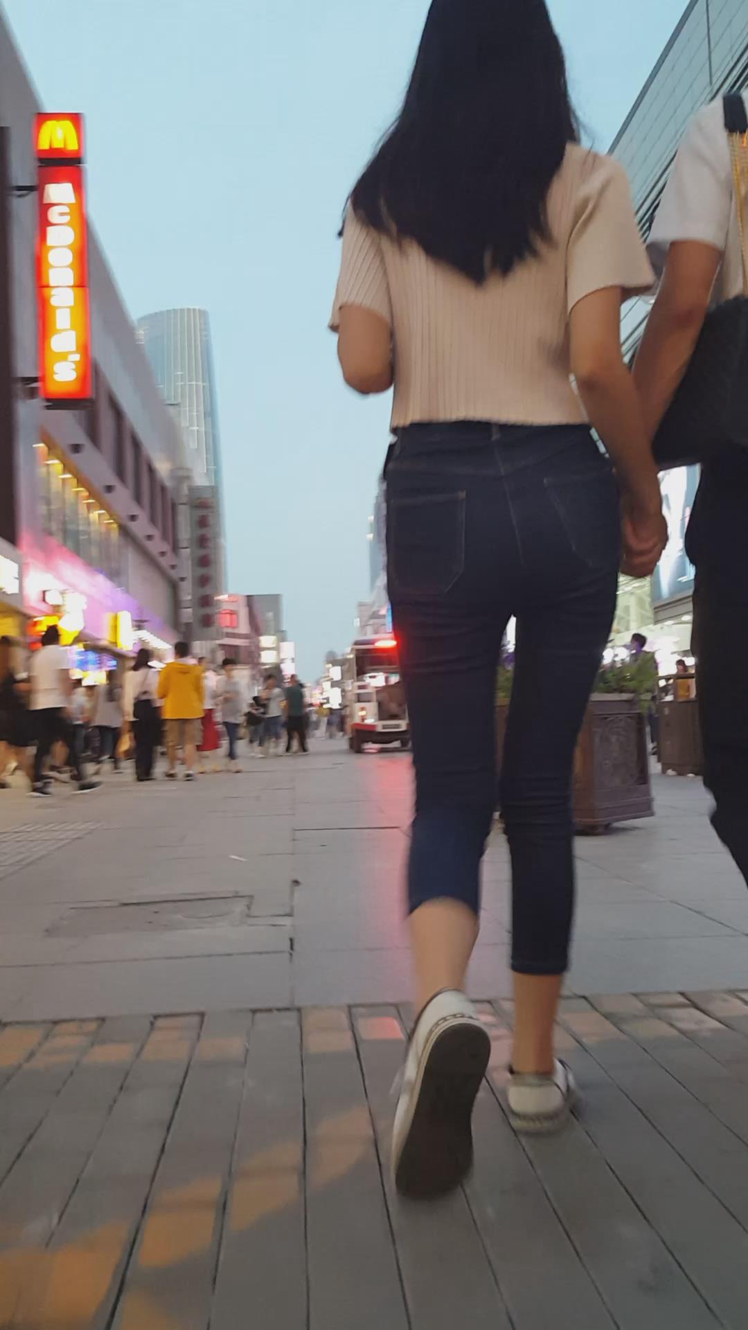 七分紧身蓝牛小妹陪男友压马路 编号6114