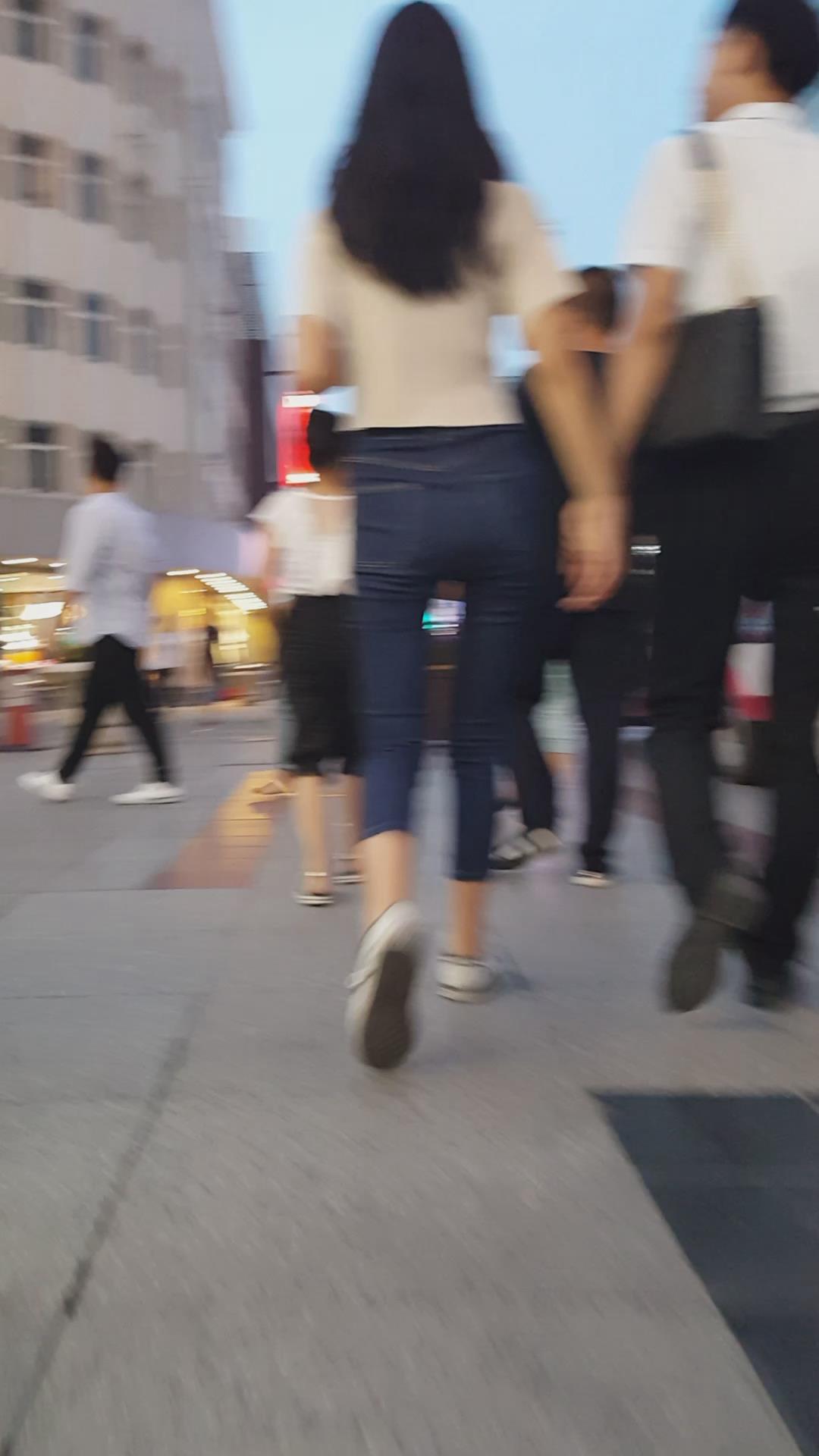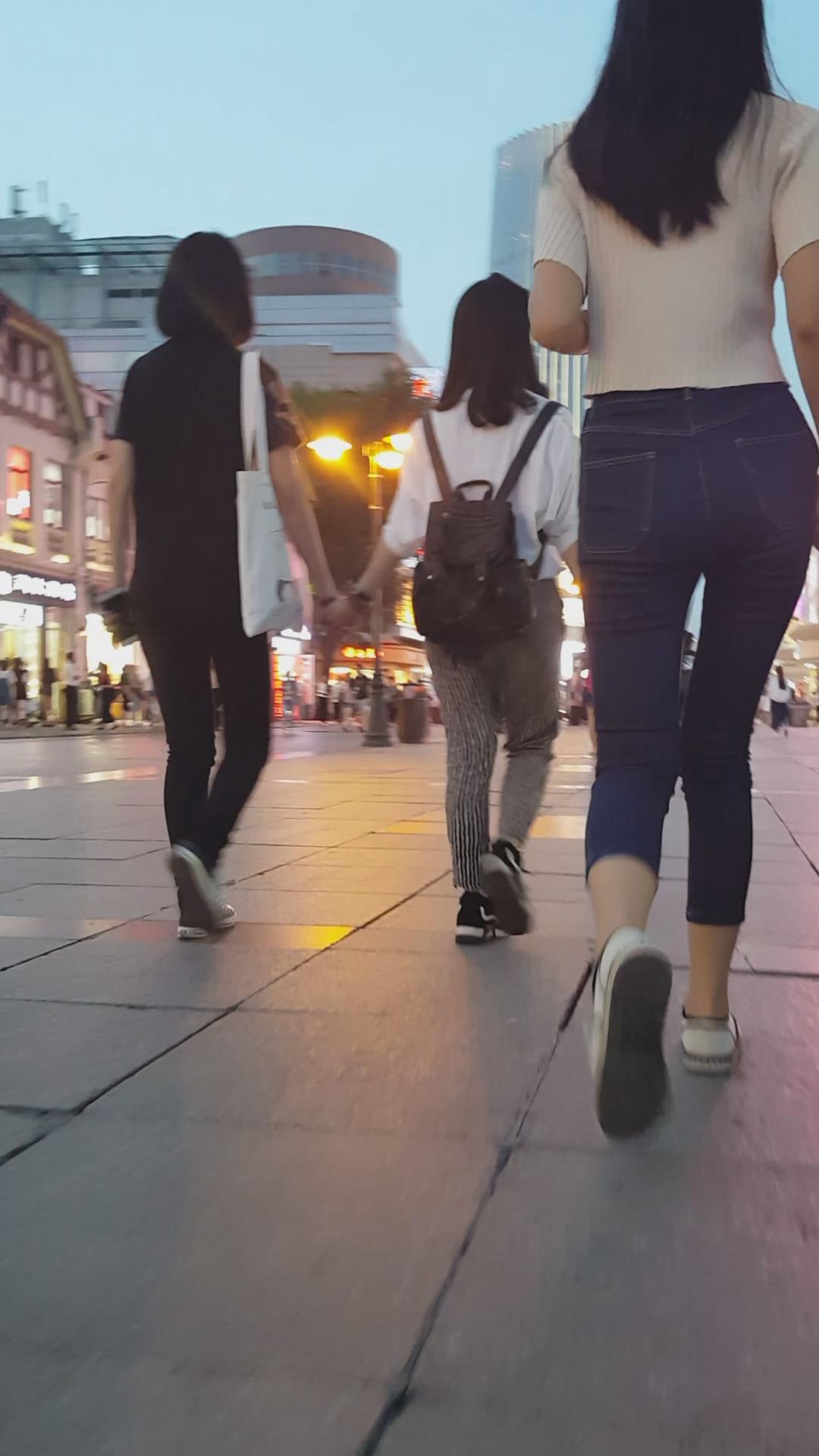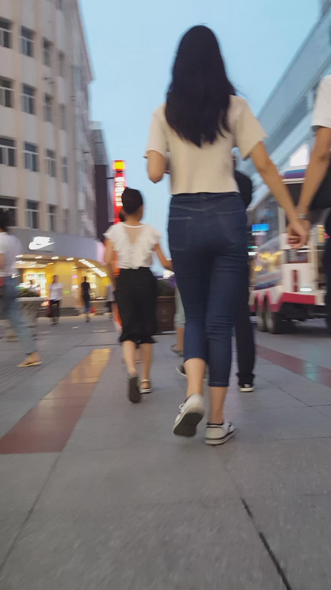 七分紧身蓝牛小妹陪男友压马路 编号6114