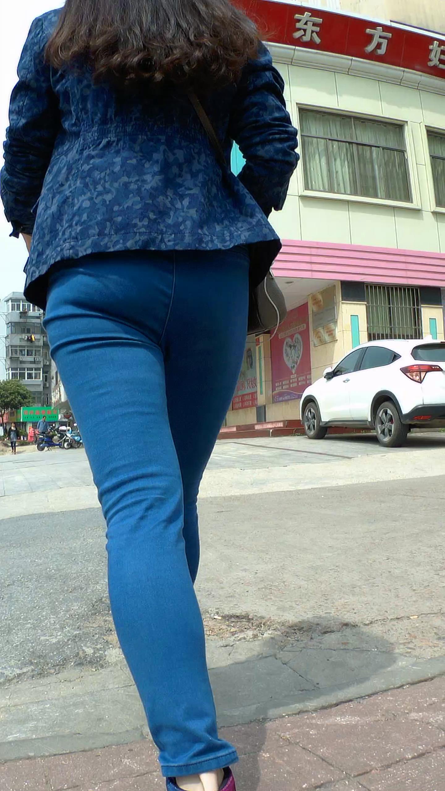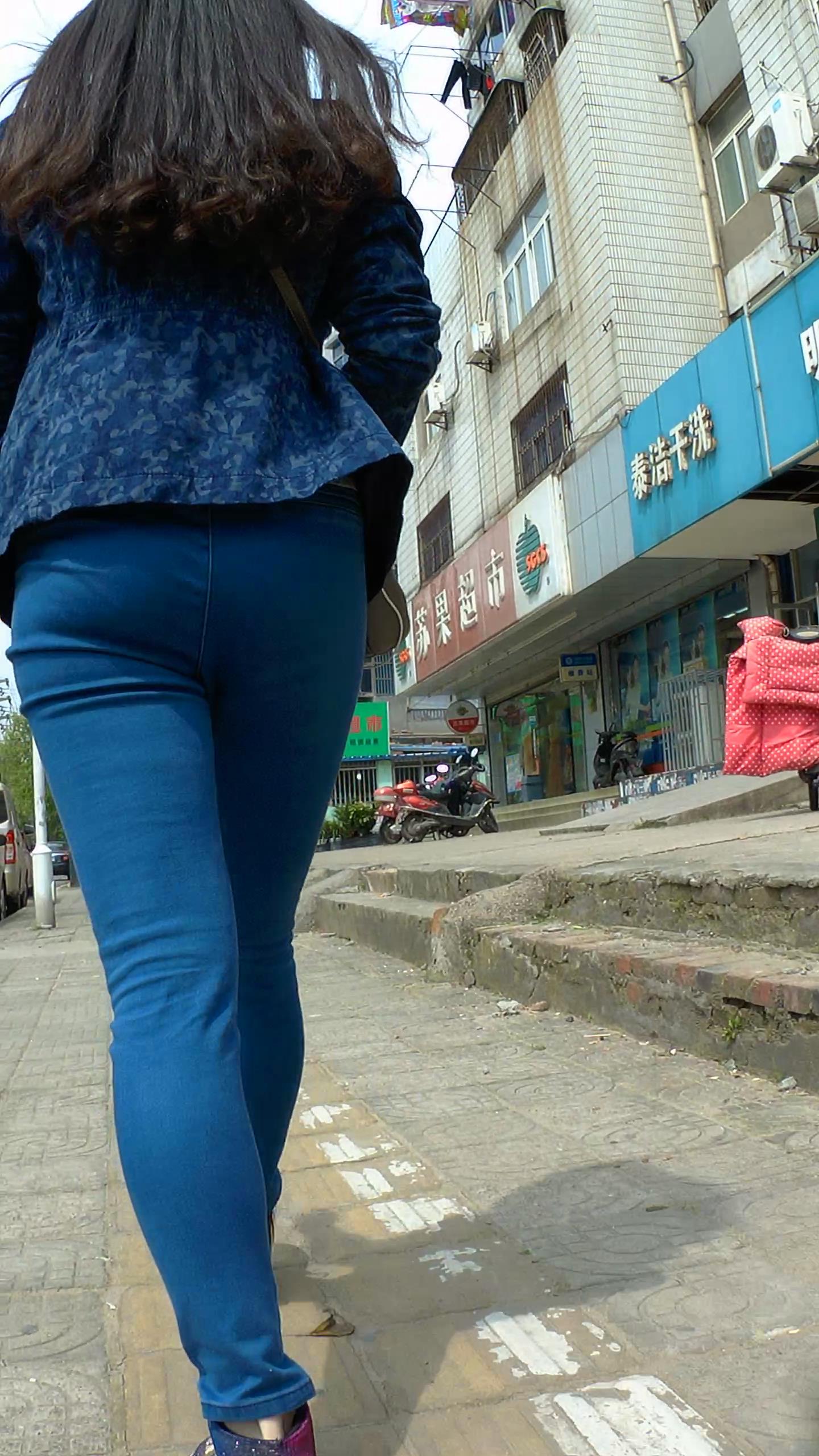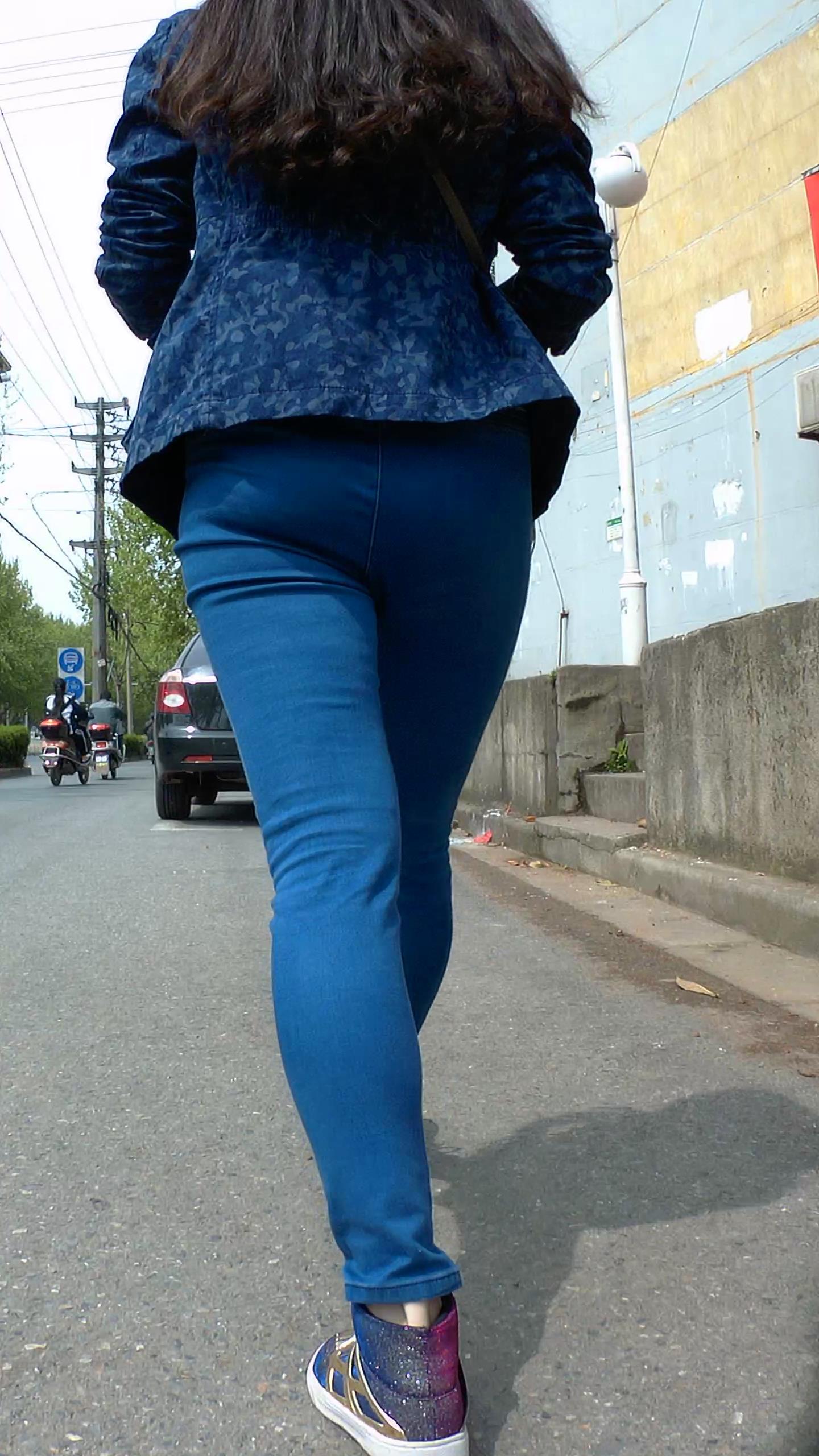 肥臀紧身蓝牛街拍美眉 编号5304
