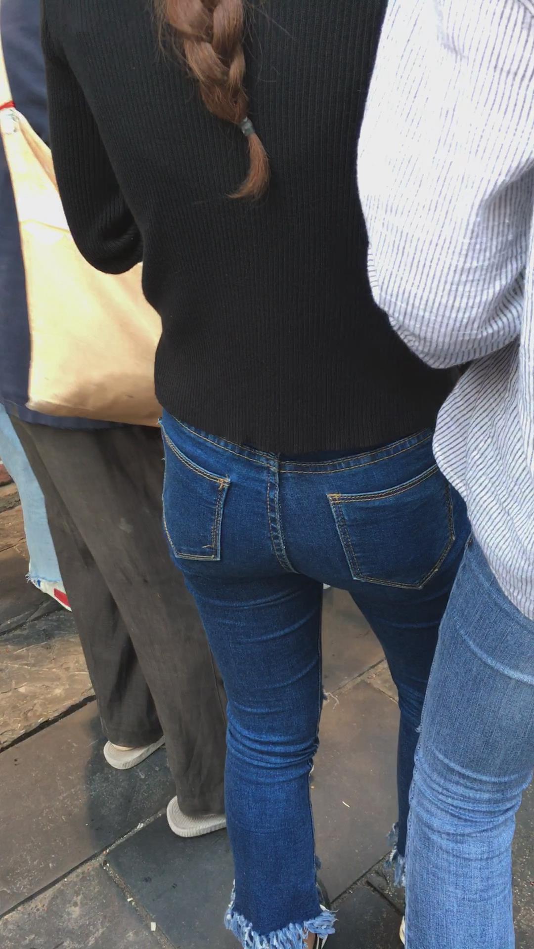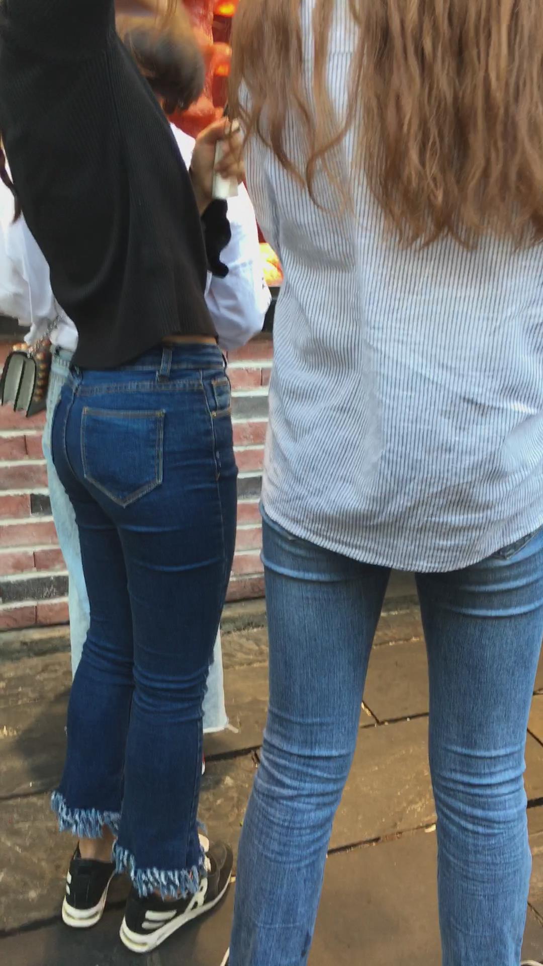 黑色毛衣紧身蓝牛圆臀妹纸 编号5307