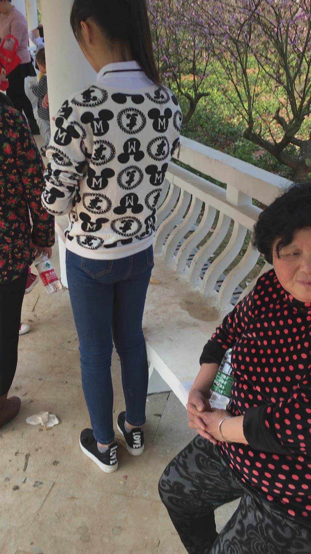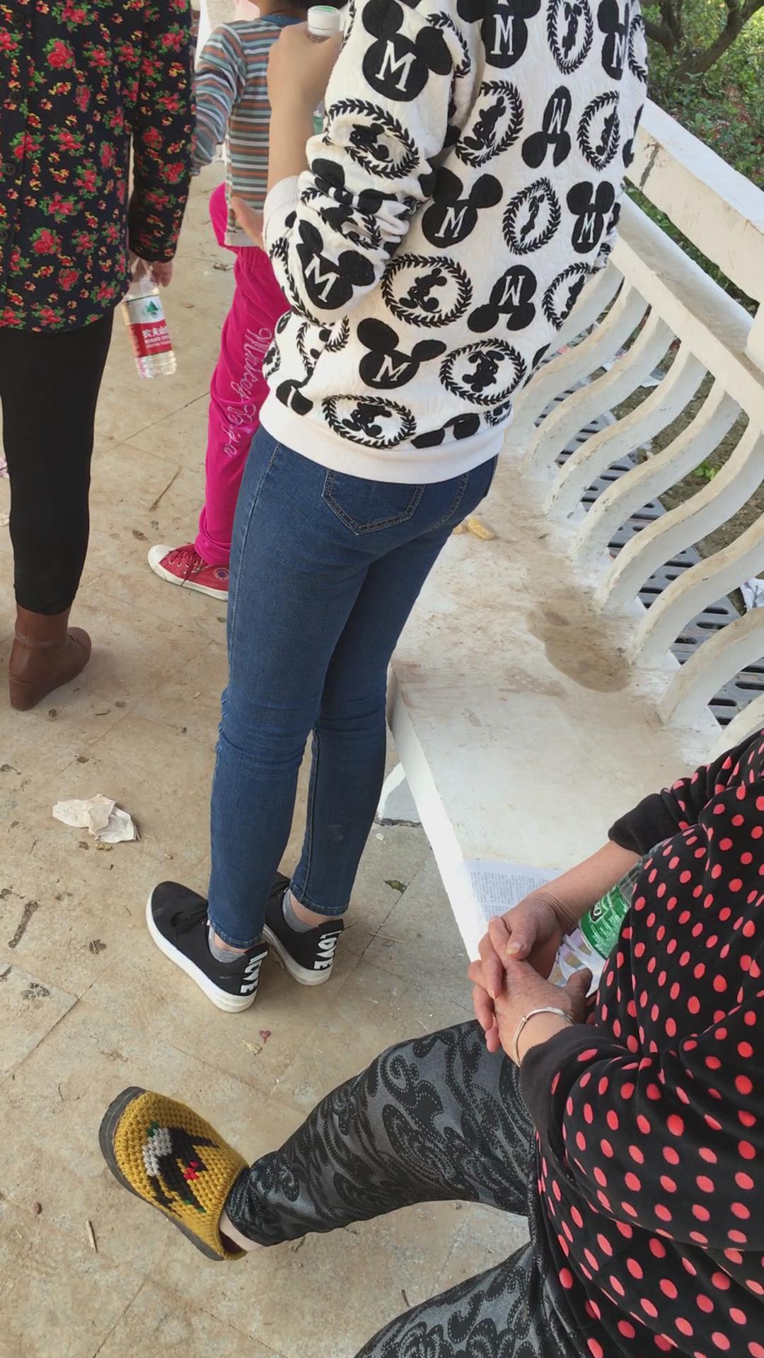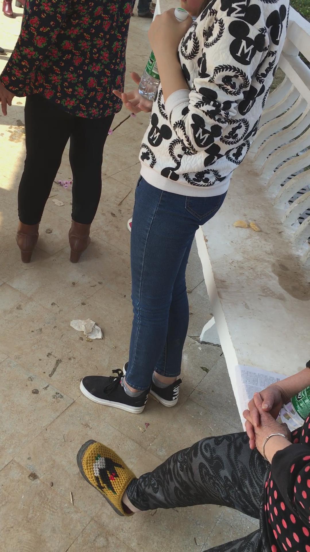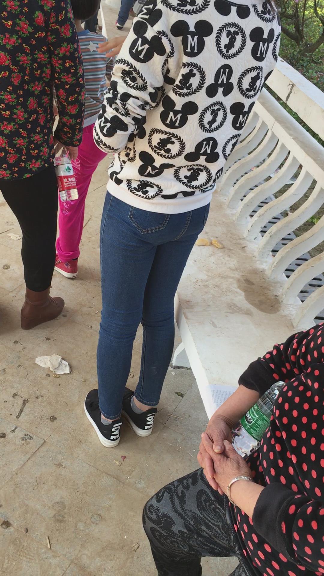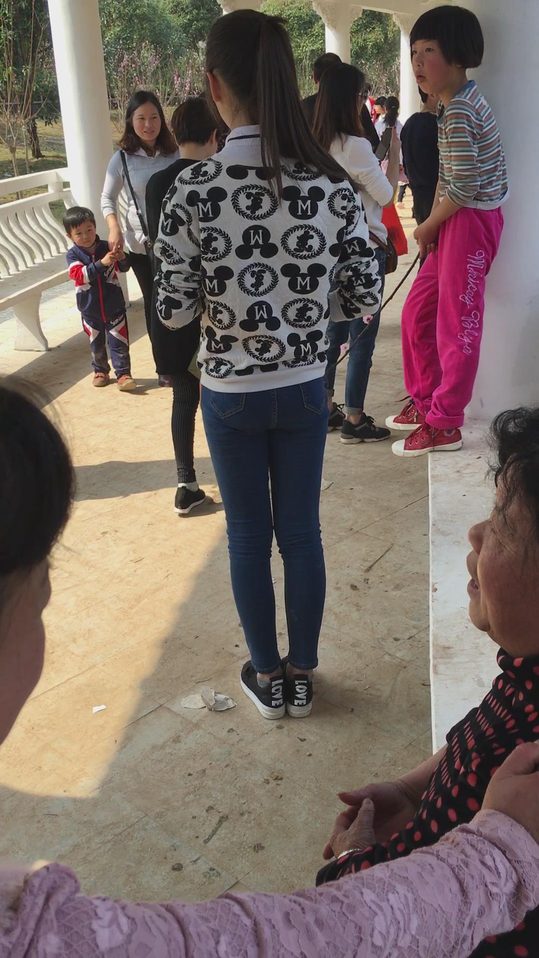 逛公园的紧身蓝牛马尾辫纯情小美女 编号5319