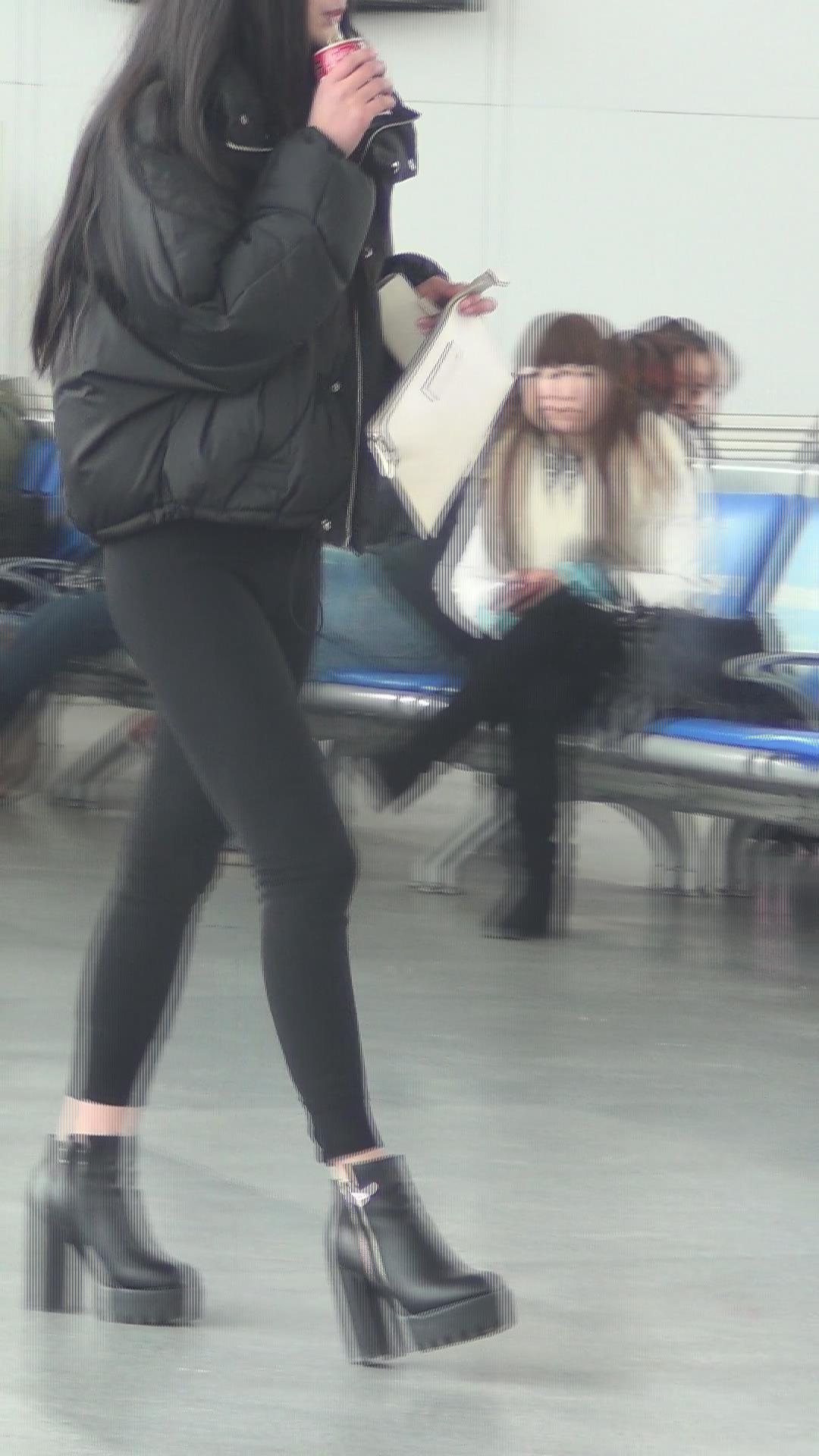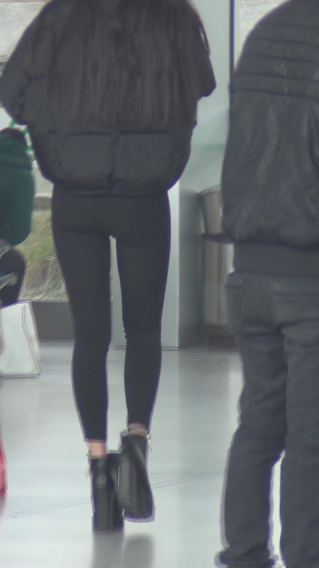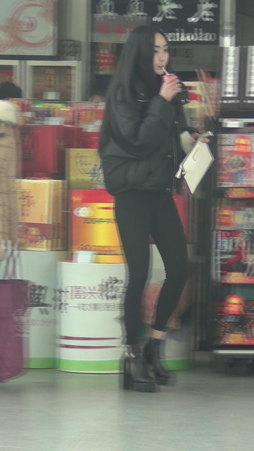 街拍黑色紧身裤长腿美女视频 编号5321