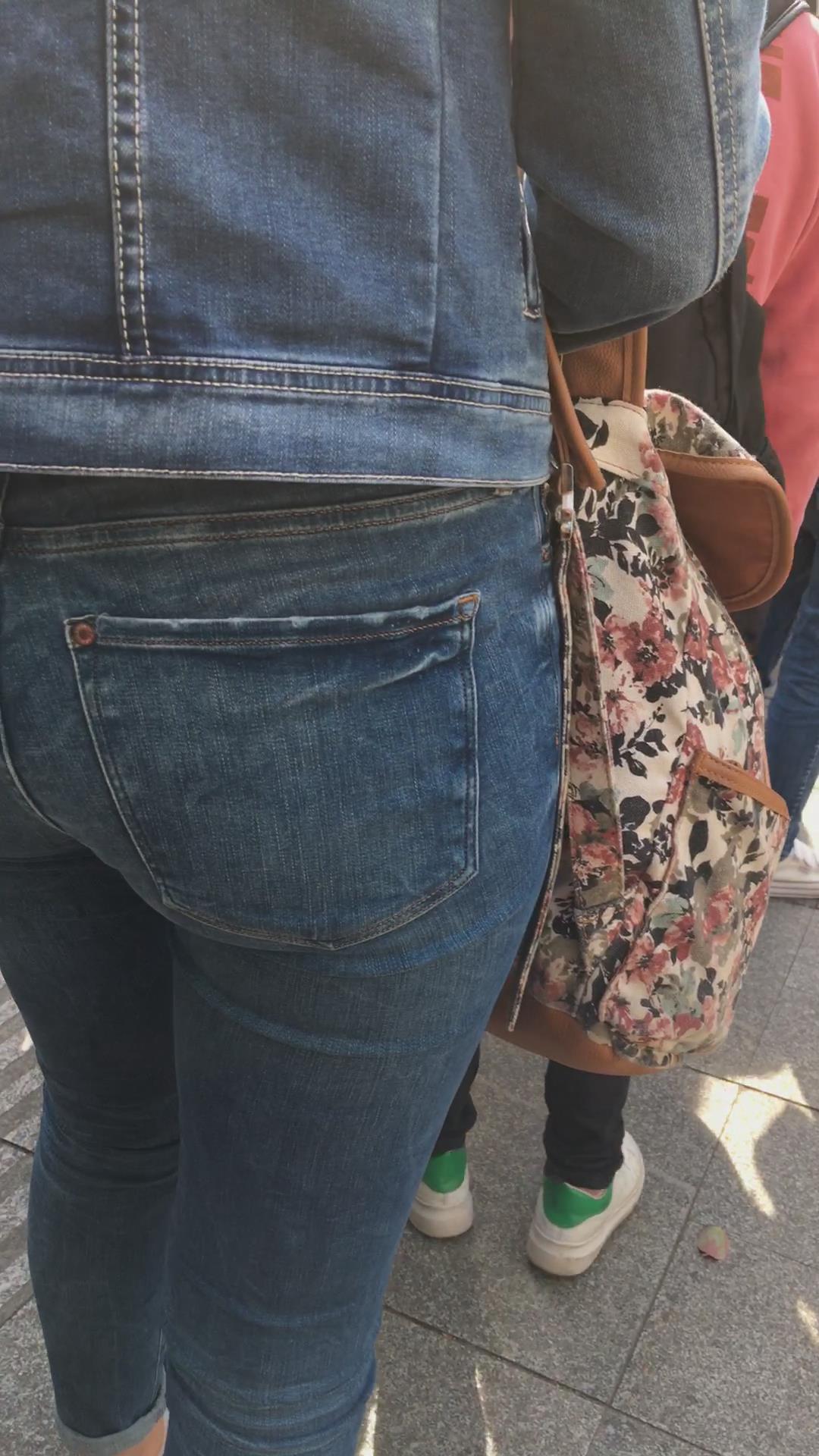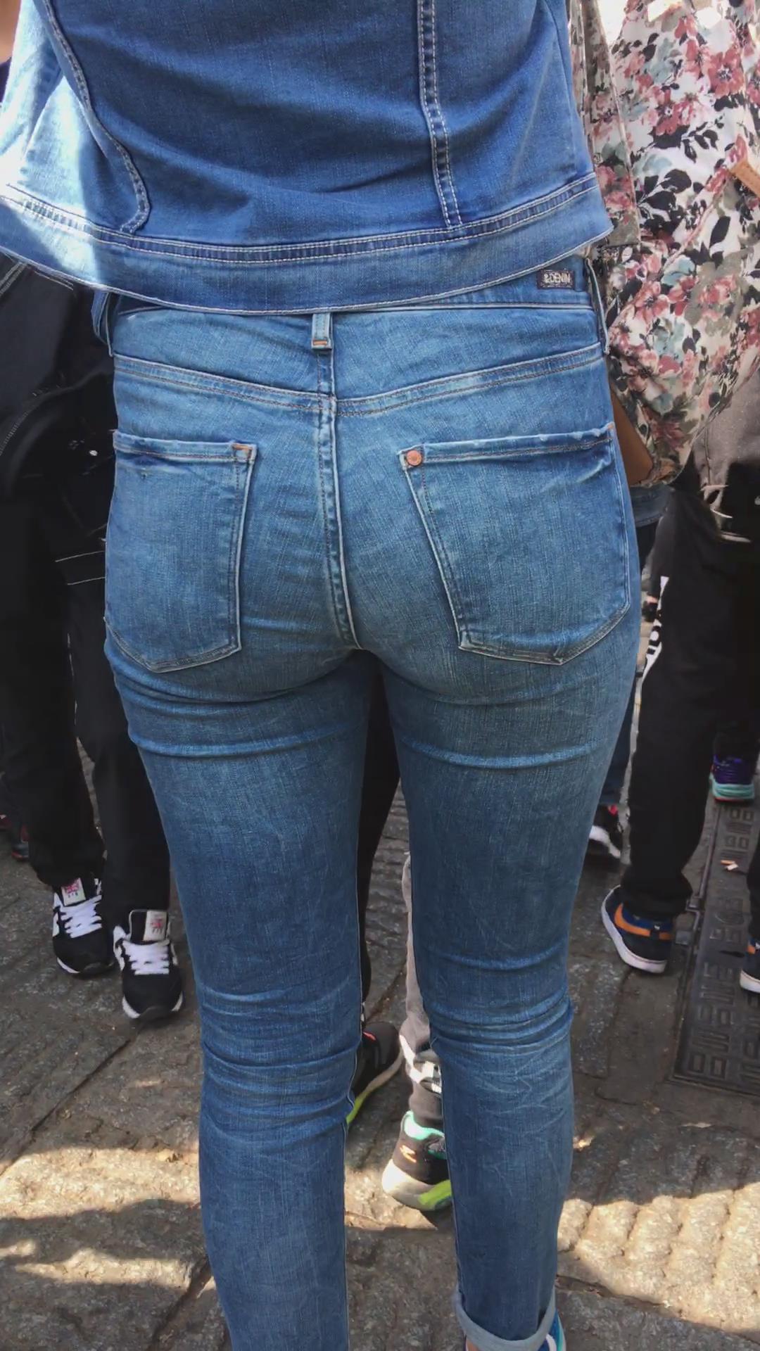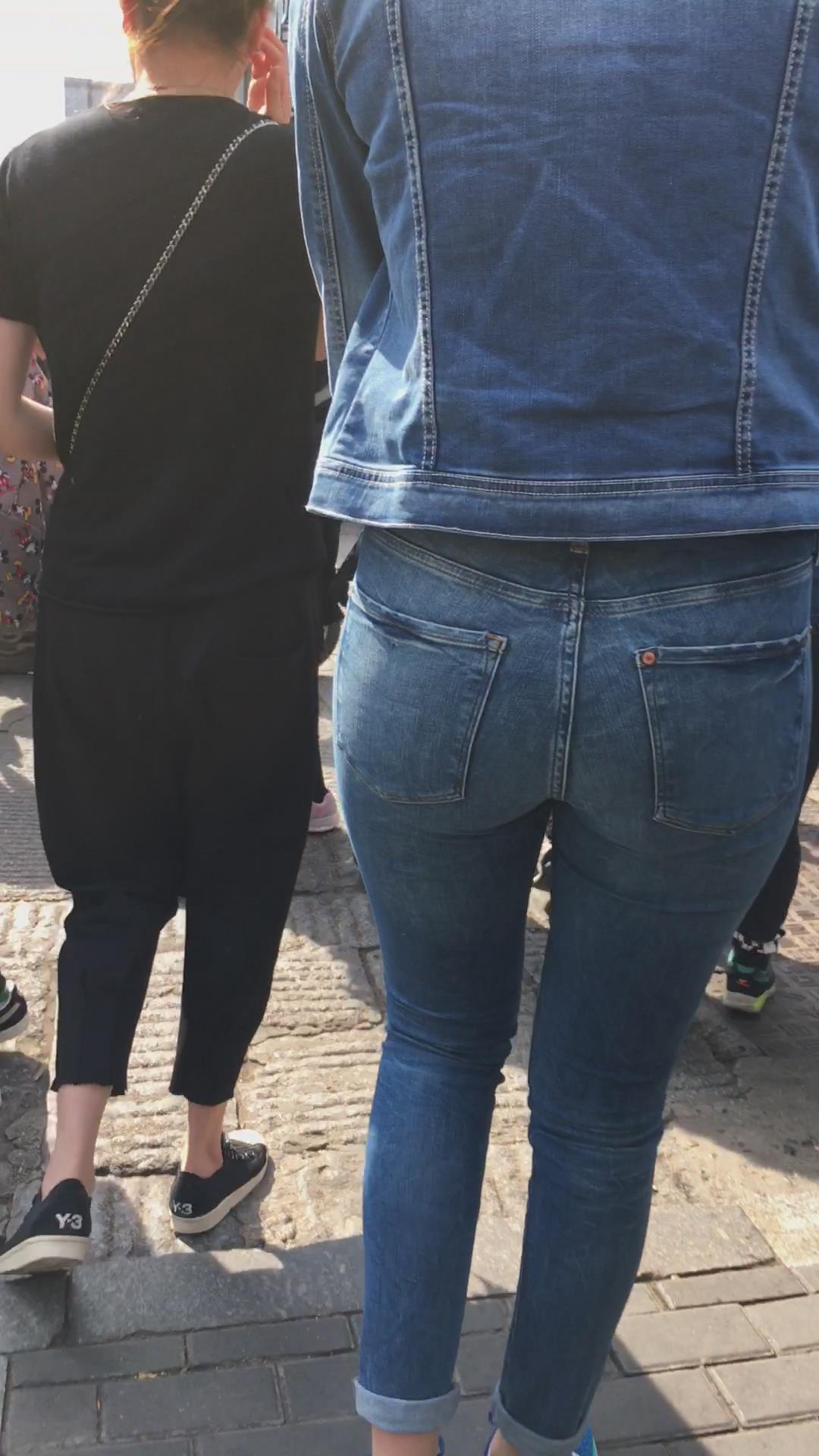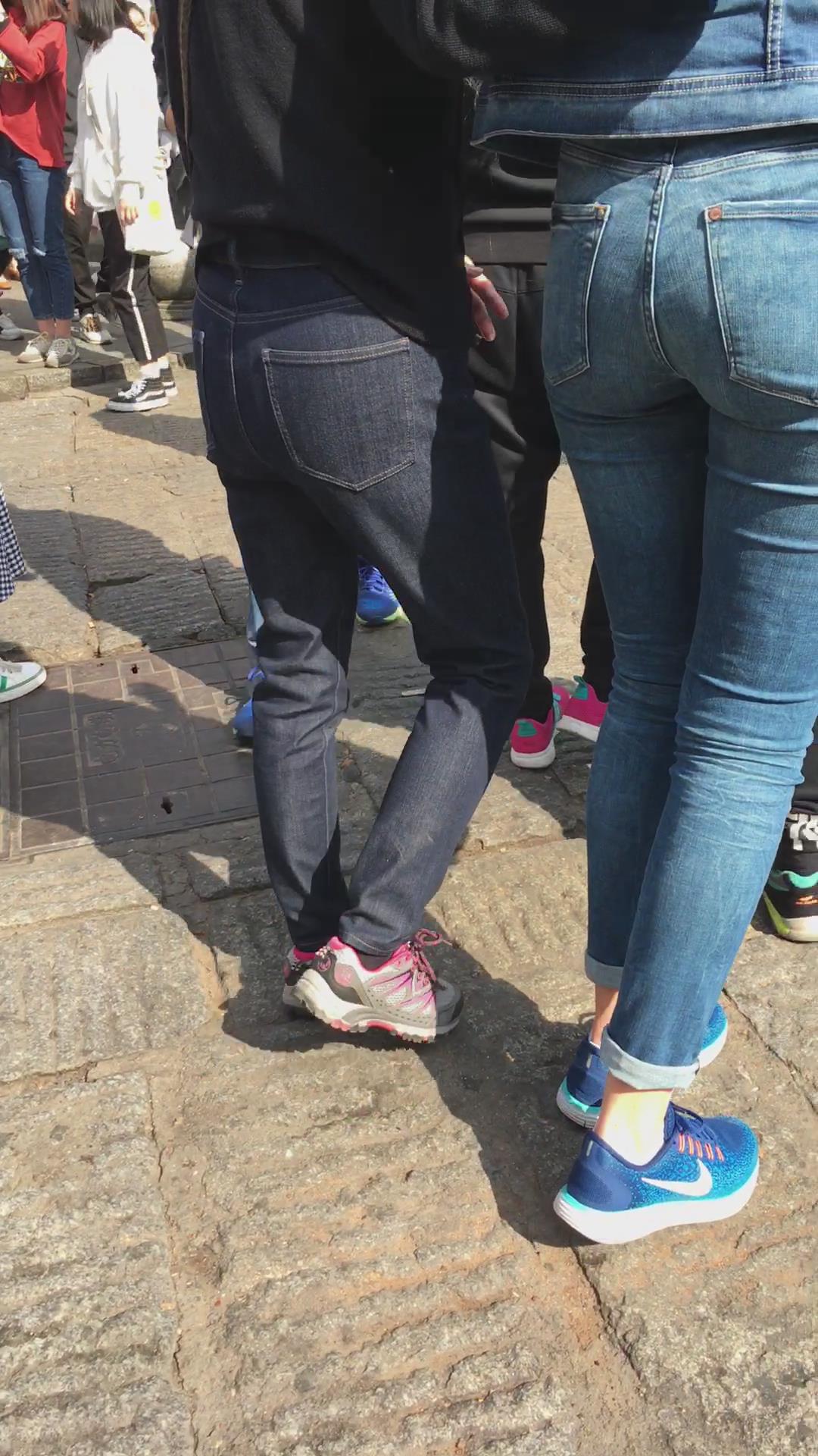 超紧蓝色牛仔裤圆臀街拍美女、太紧了太紧了 编号5328