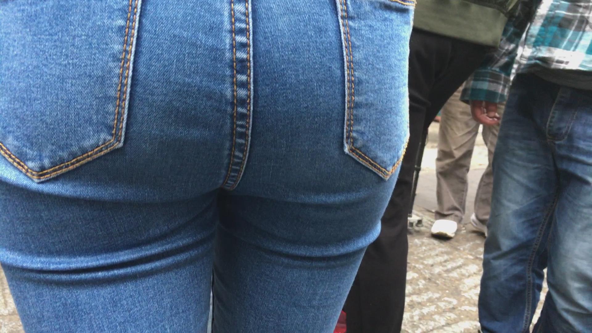 街拍圆臀紧身蓝色牛仔裤学生妹 编号5333