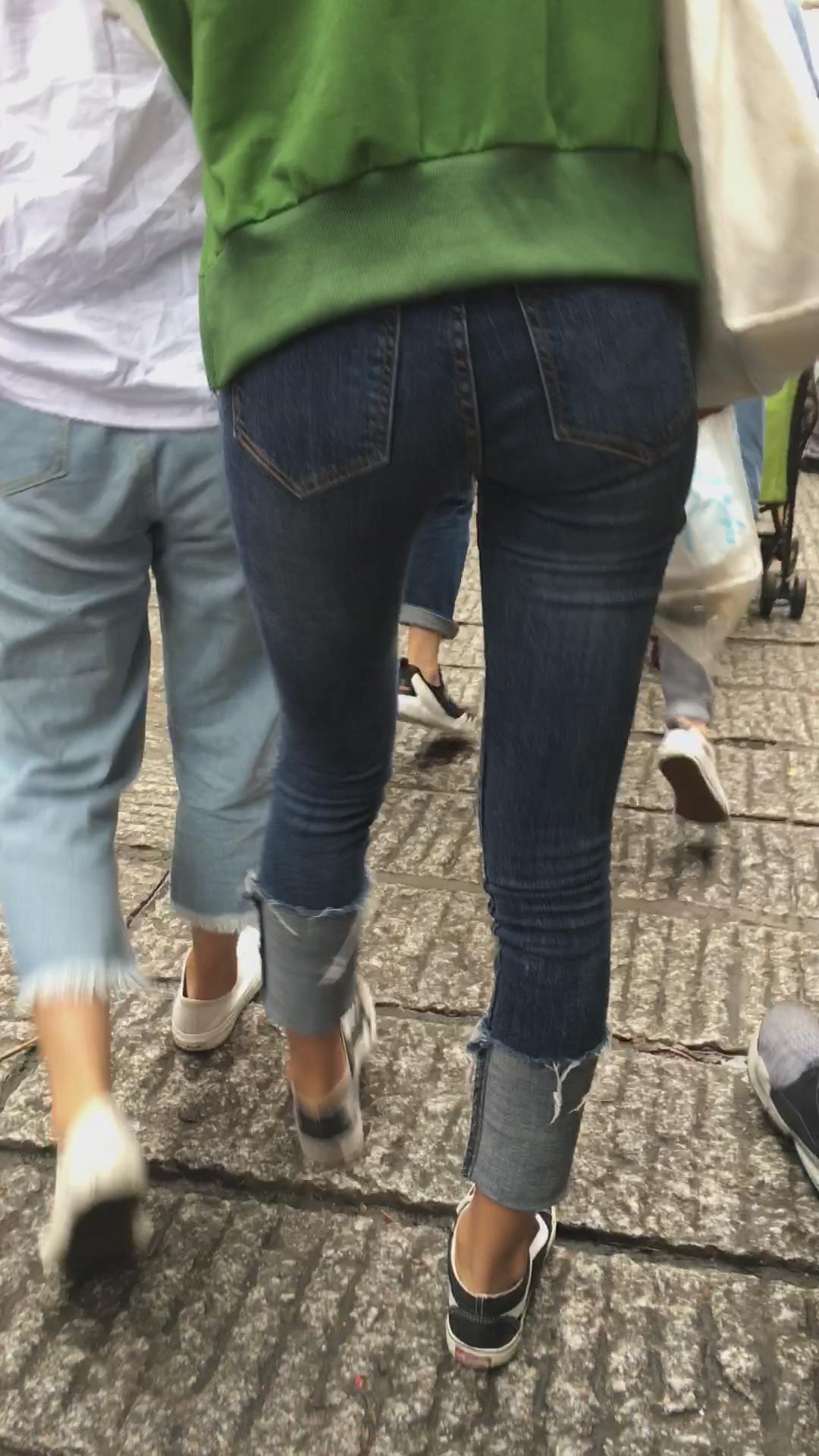 蓝色牛仔裤街拍小妹 编号5336