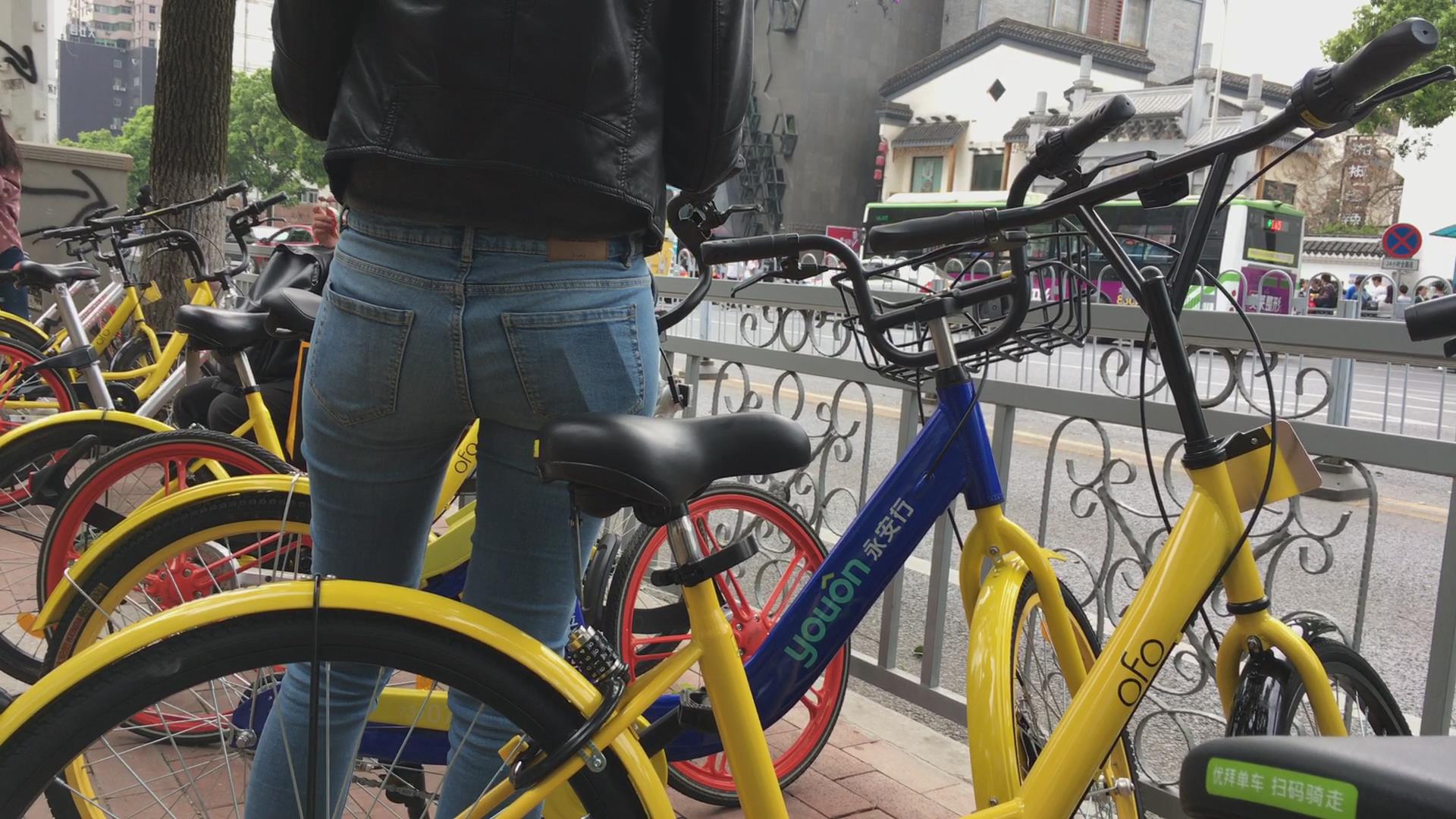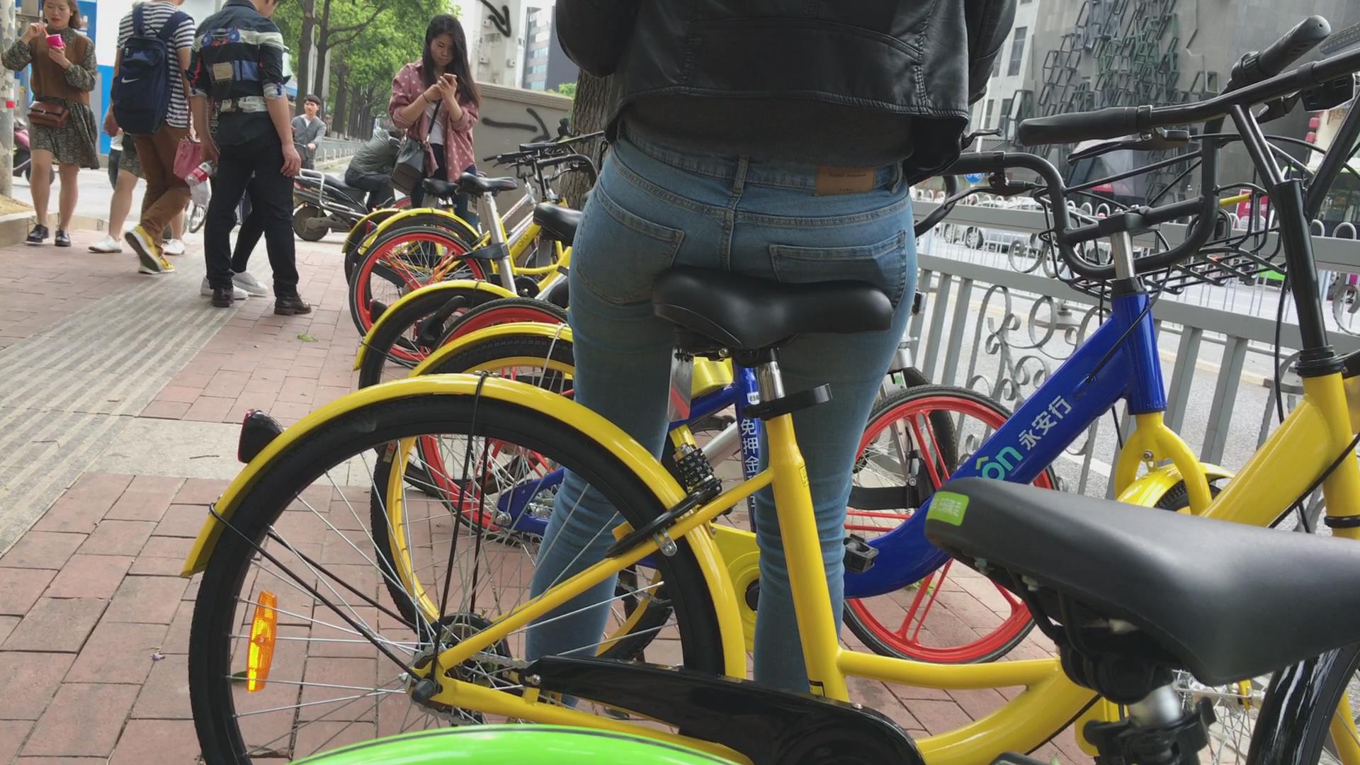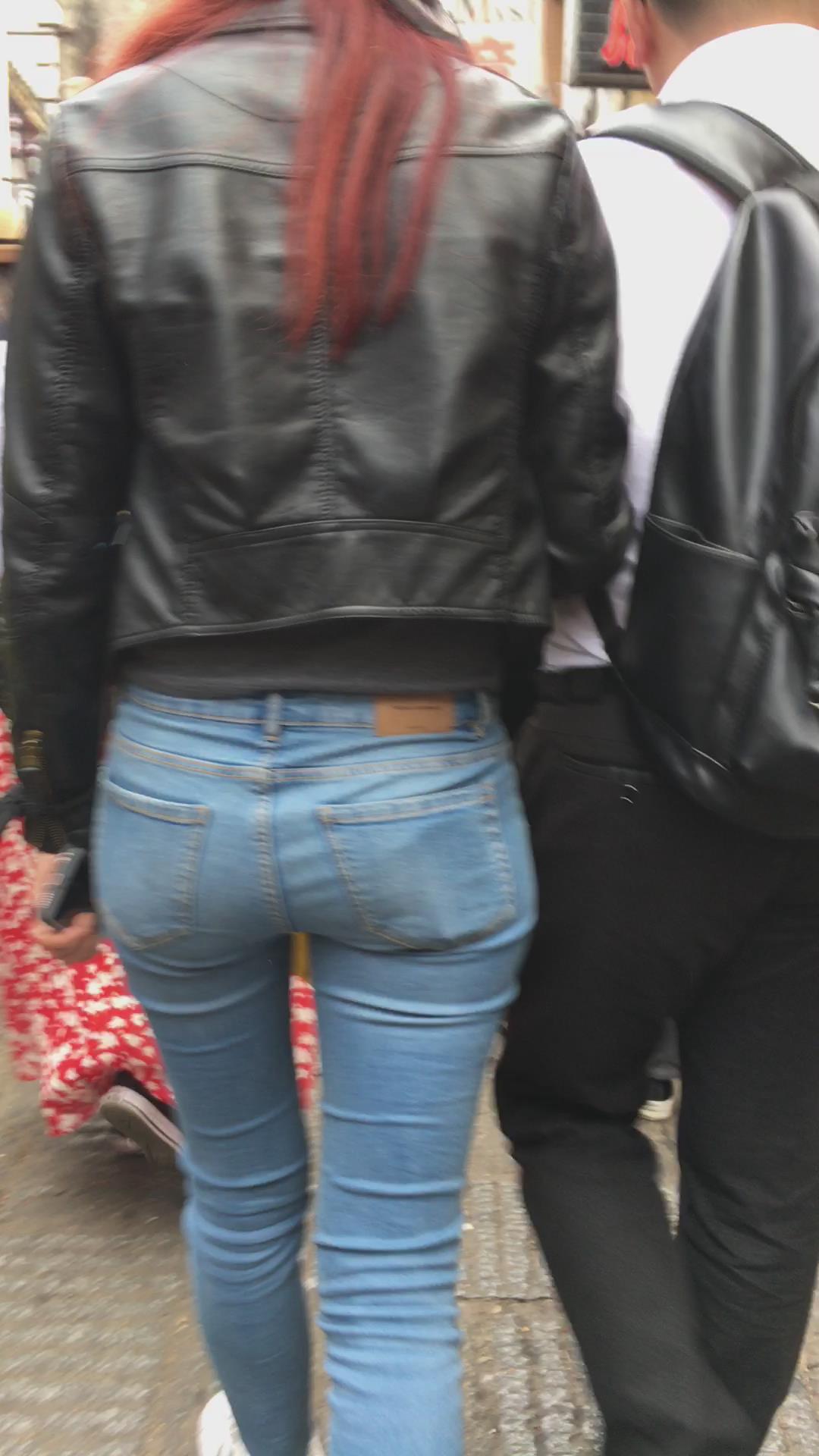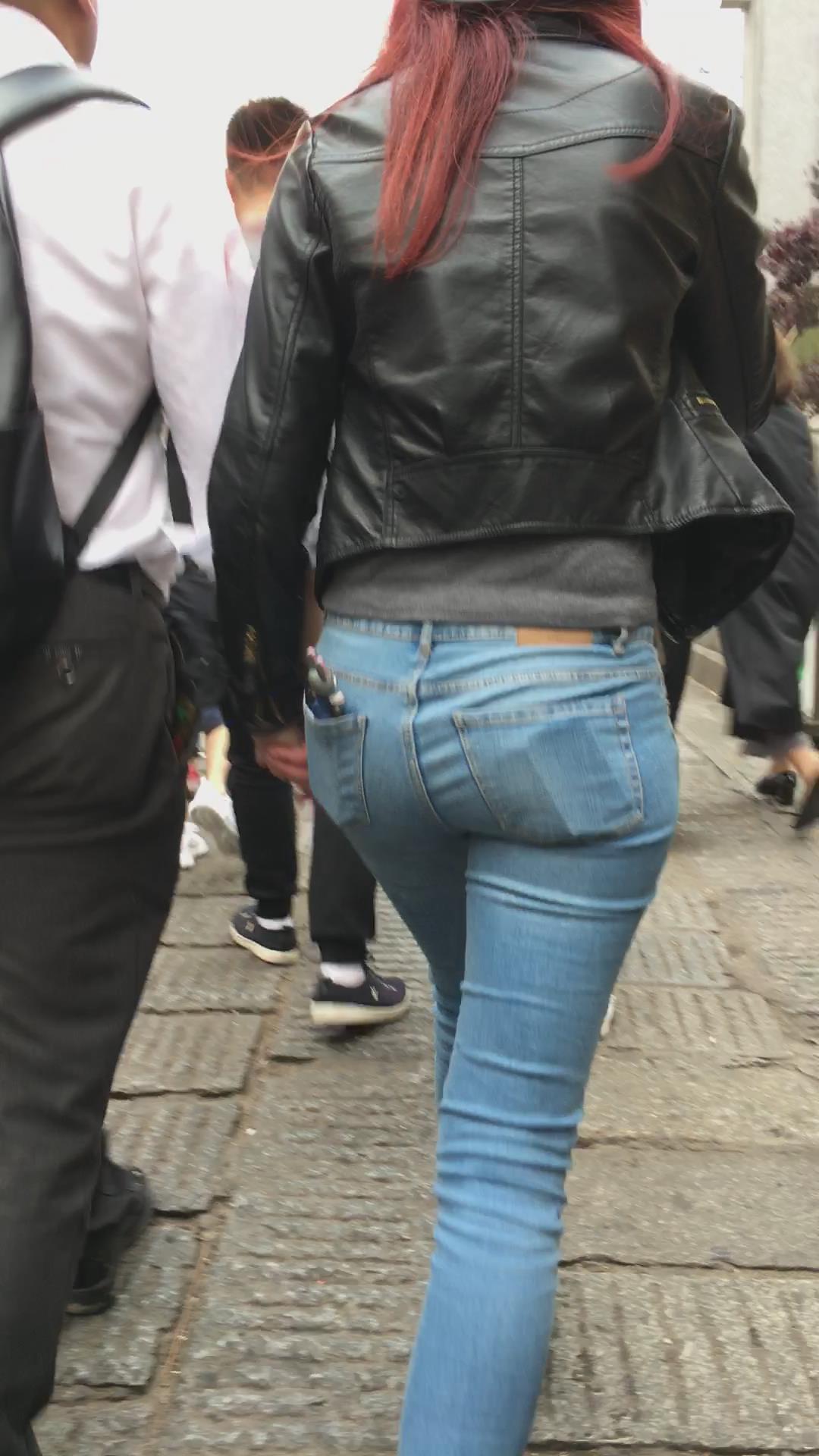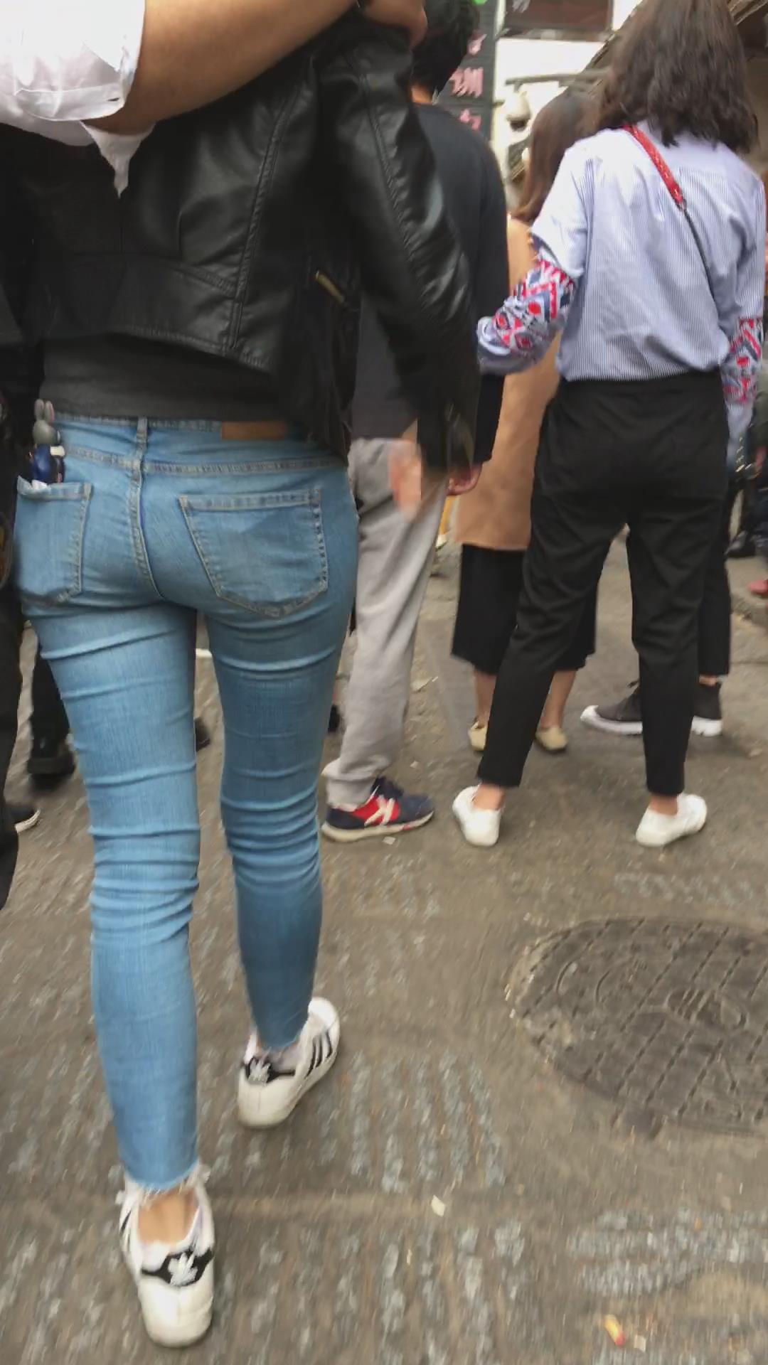 街拍极品紧身蓝色牛仔裤美臀美眉 编号5359