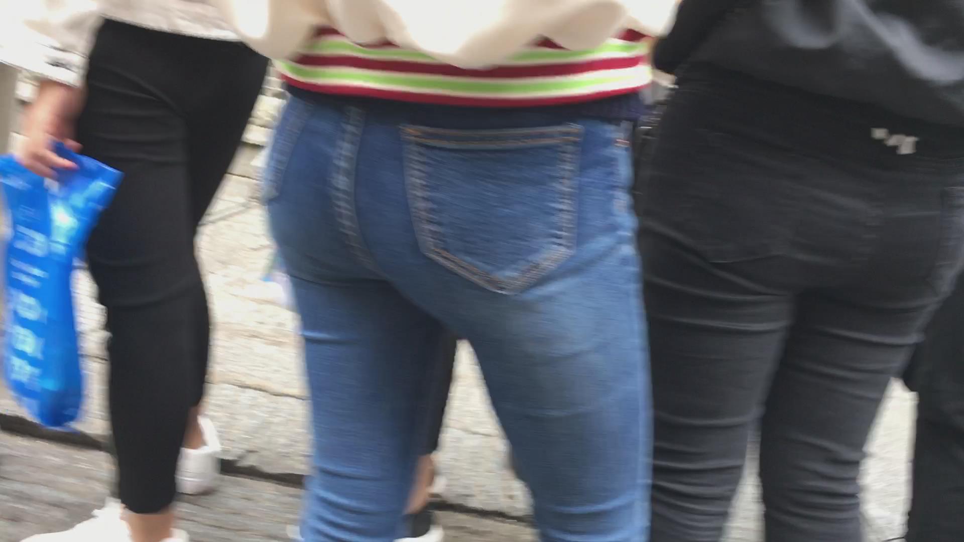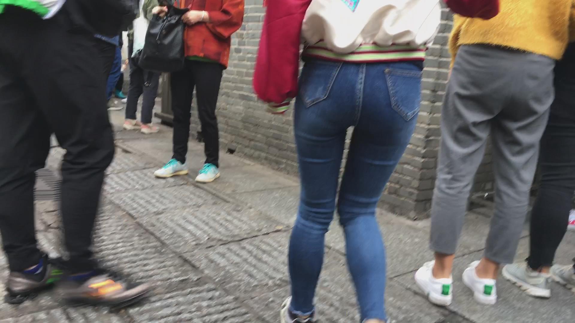 街拍紧身蓝色牛仔裤美眉,真是太紧了 编号5365