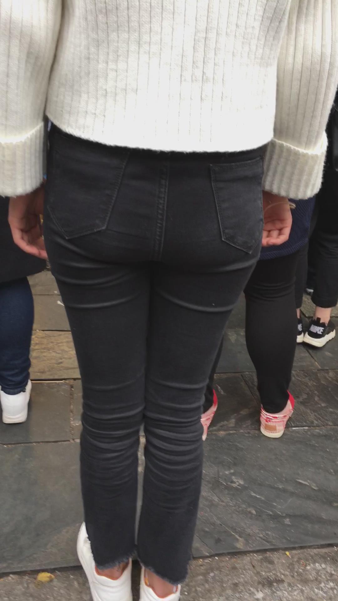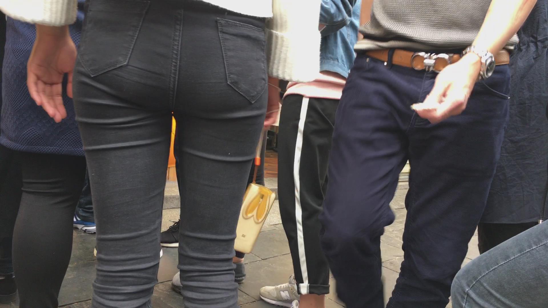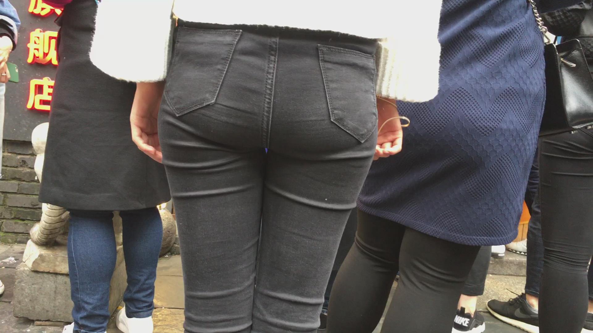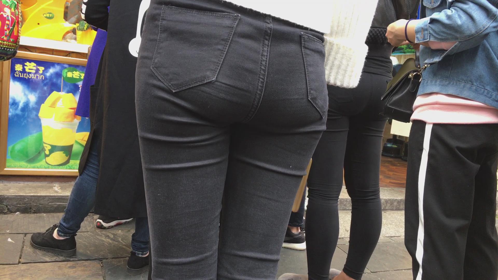 街拍宽臀黑色紧身裤小清新学妹 编号5367