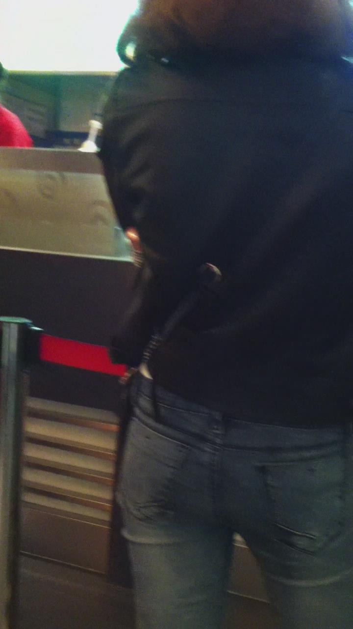 街拍紧身蓝色牛仔裤妹子 编号5393