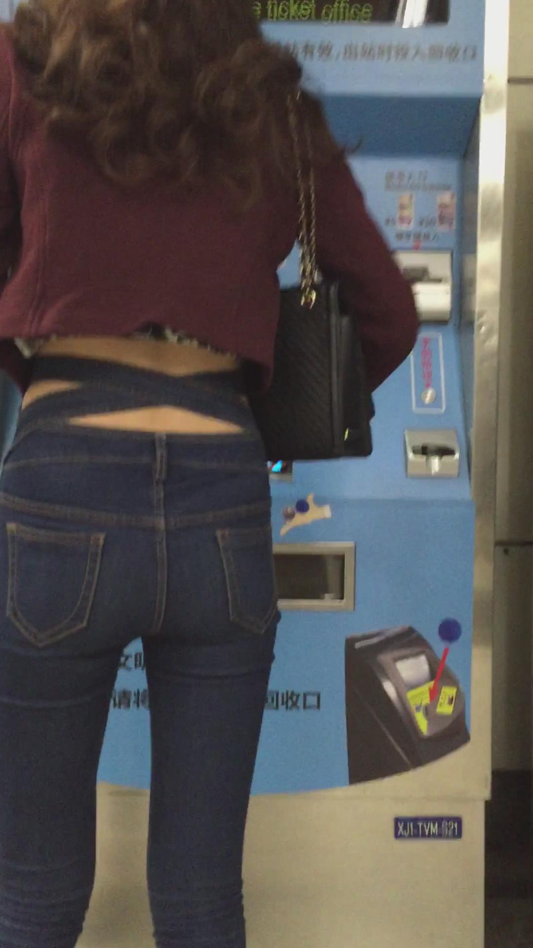 紧身蓝色牛仔裤美眉 编号5403