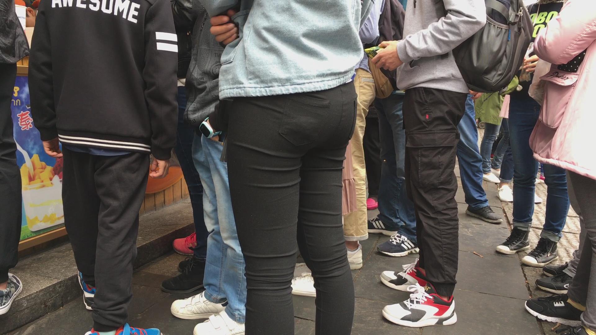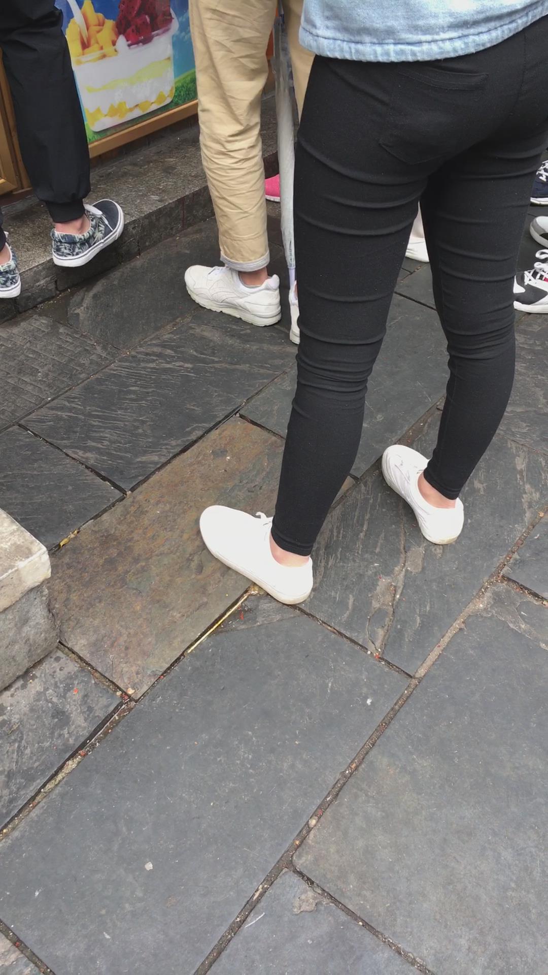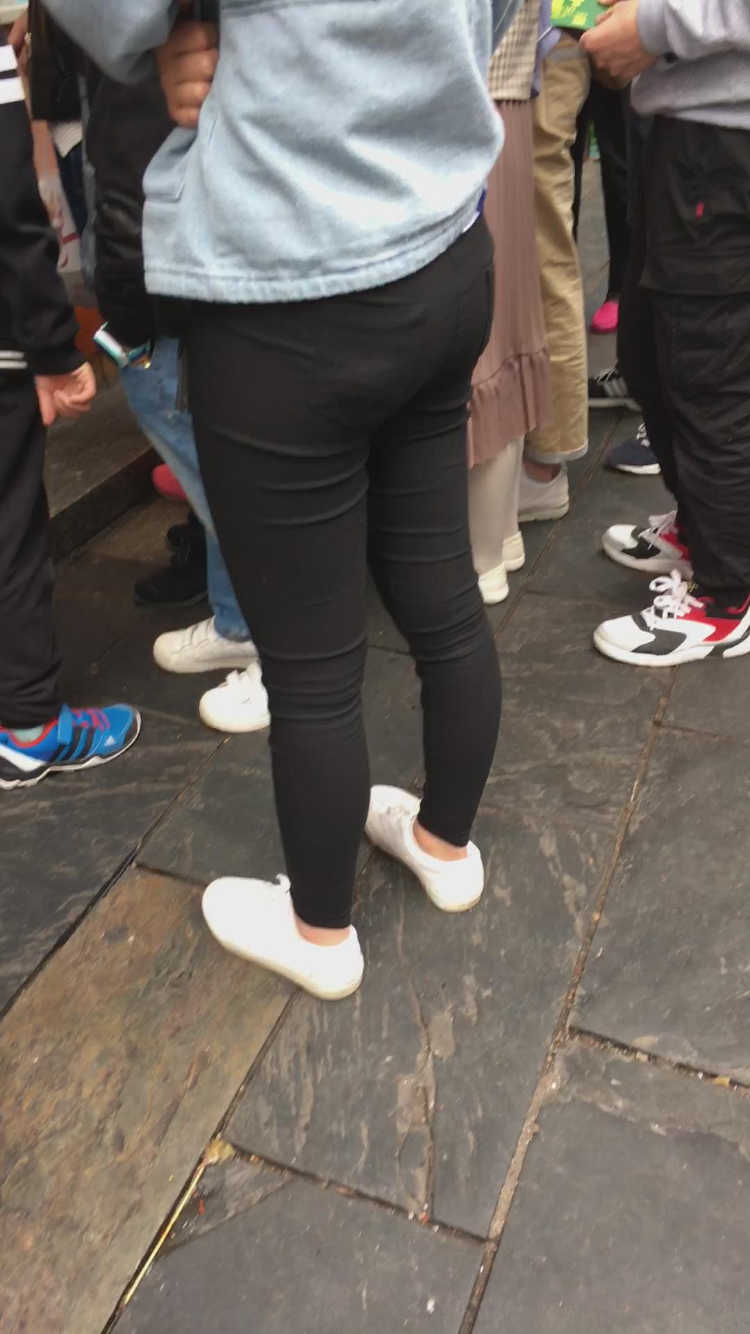 街拍黑色紧身裤翘臀青春美眉 编号5418