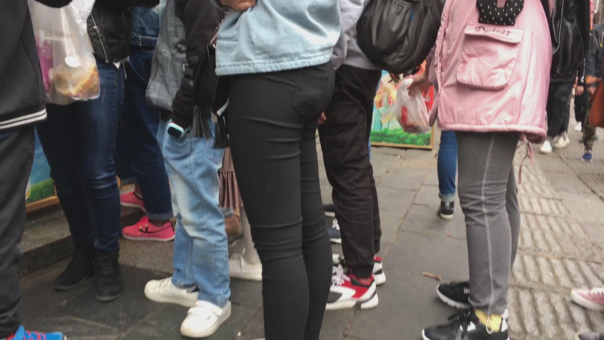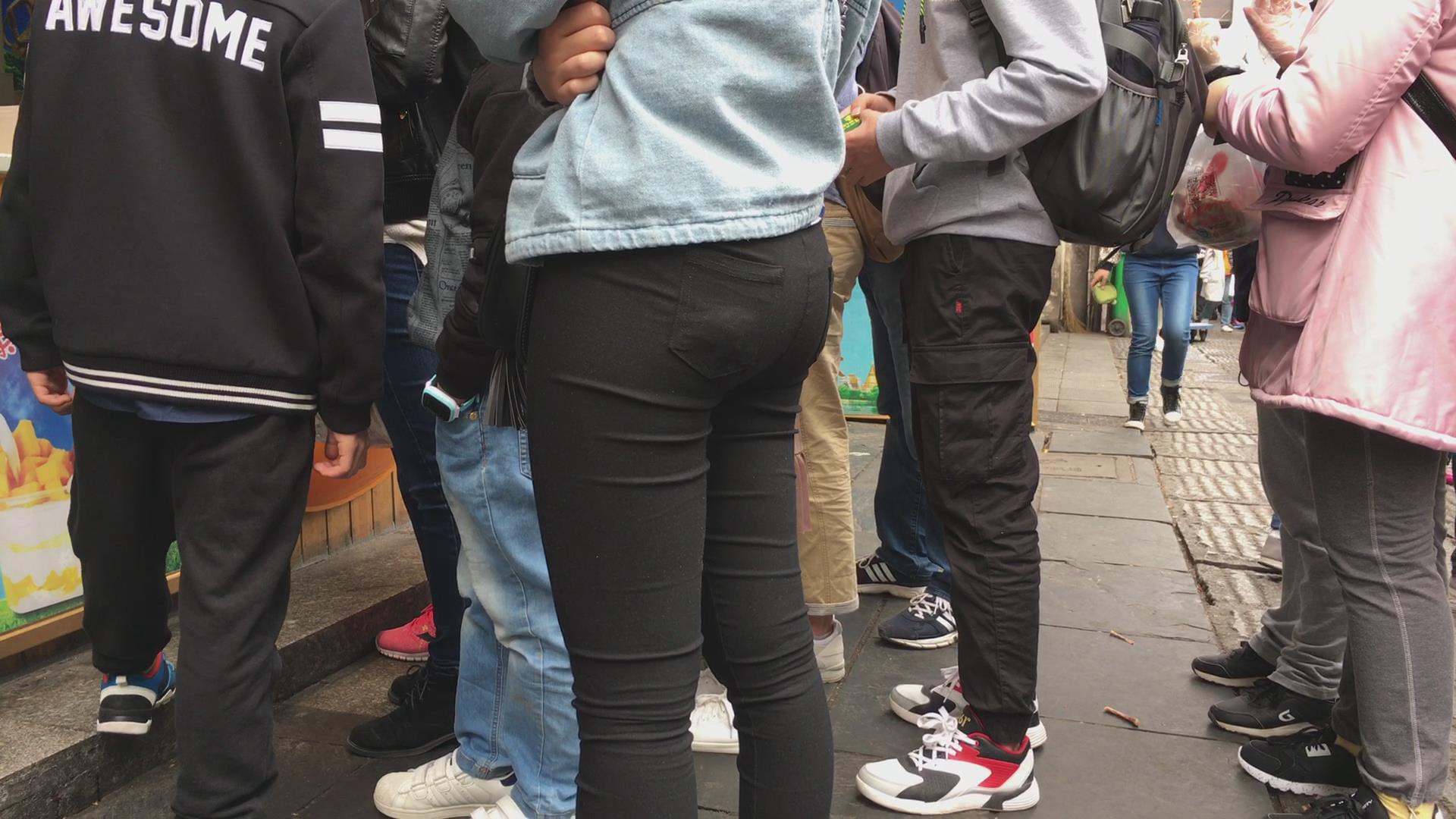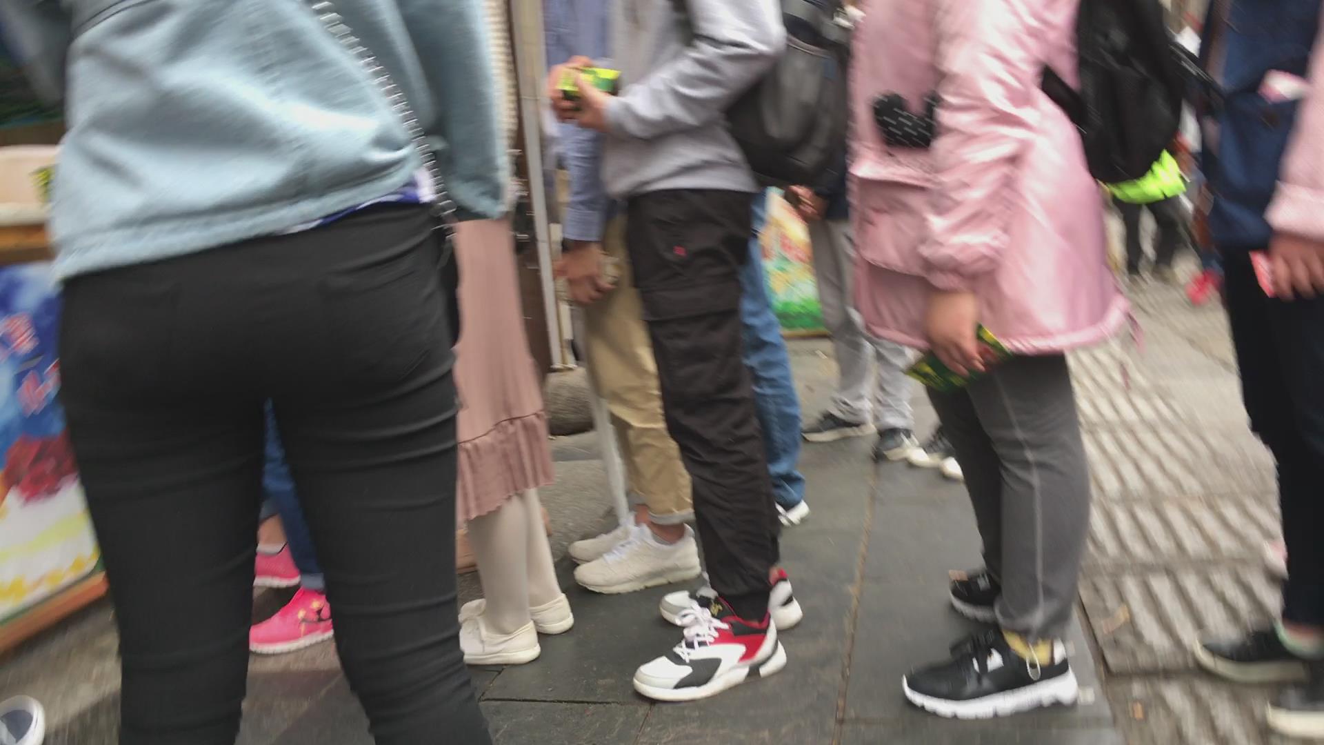 街拍黑色紧身裤翘臀青春美眉 编号5418