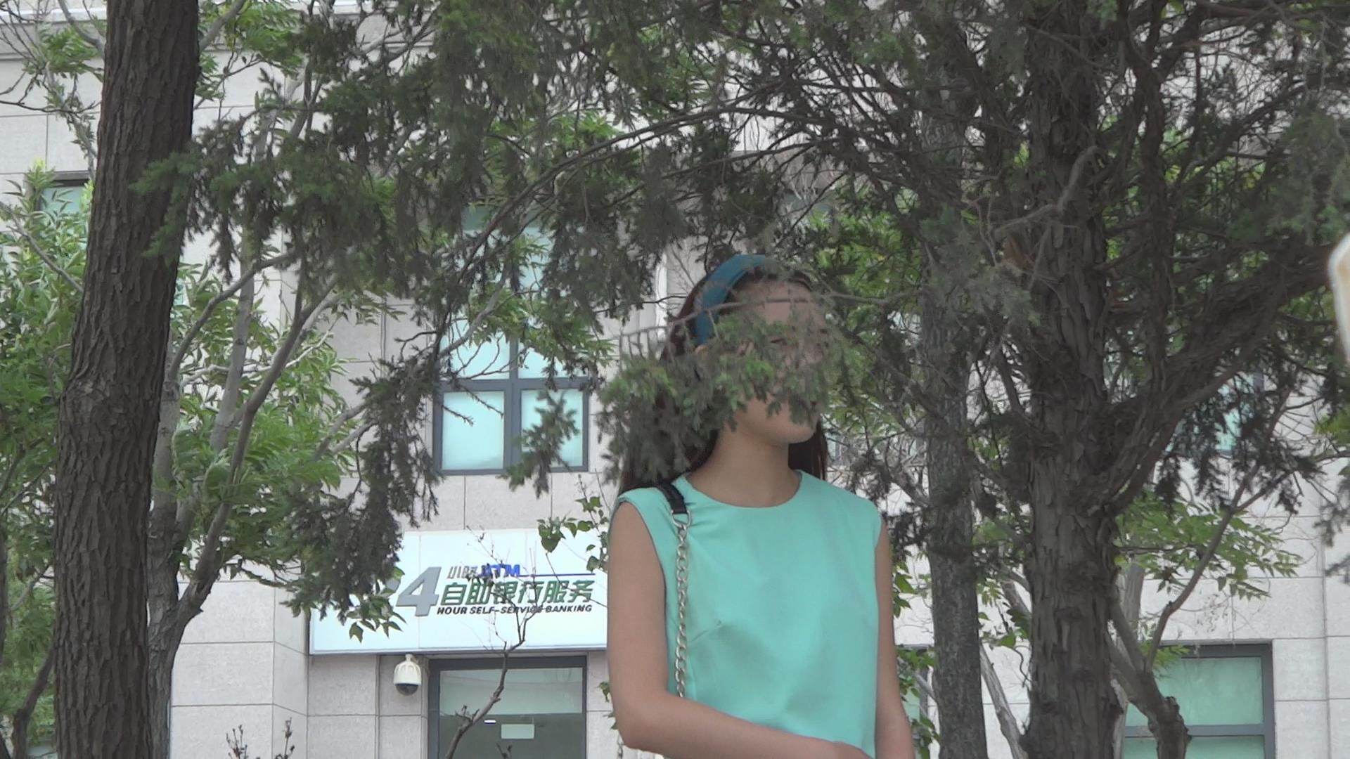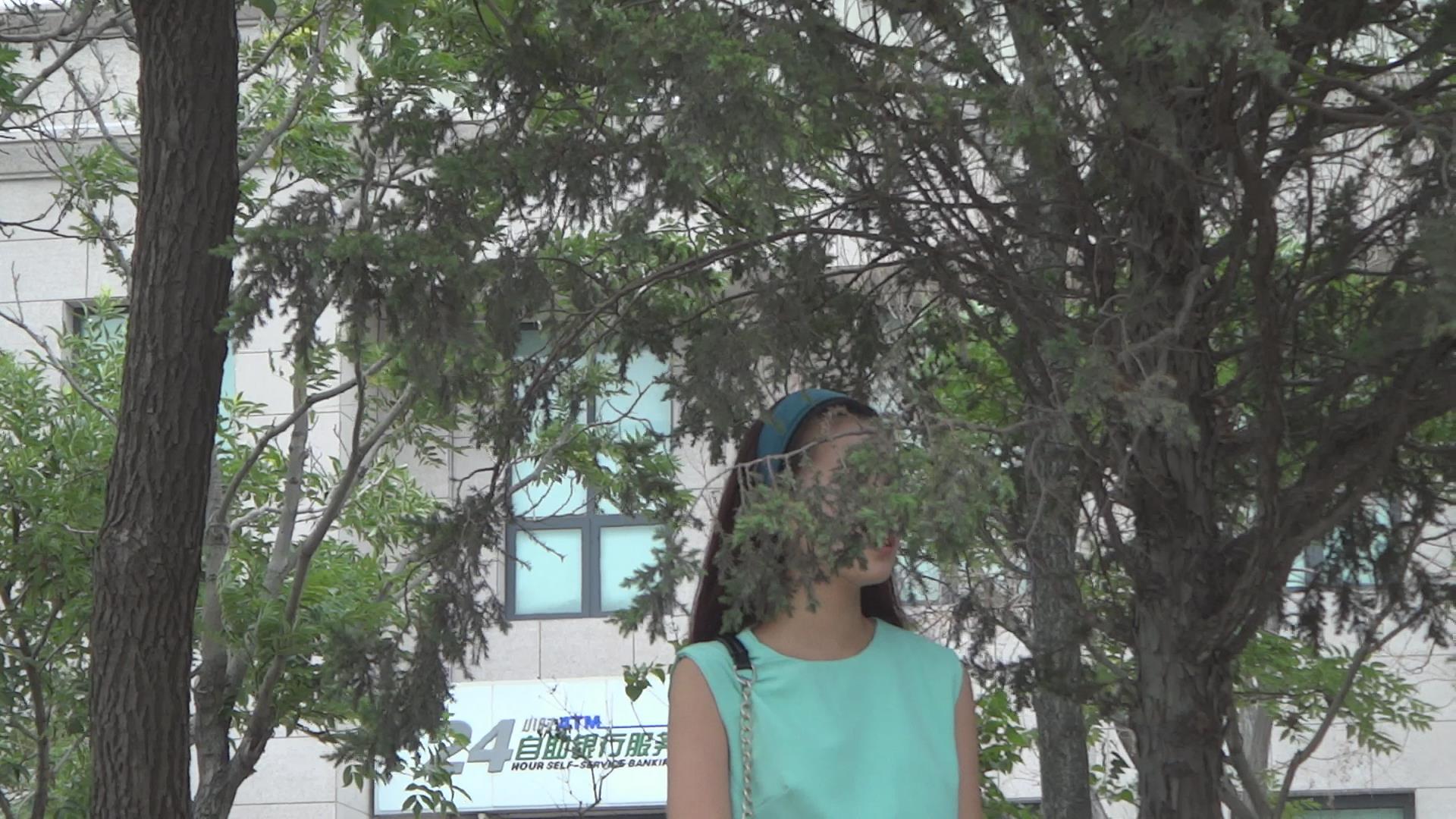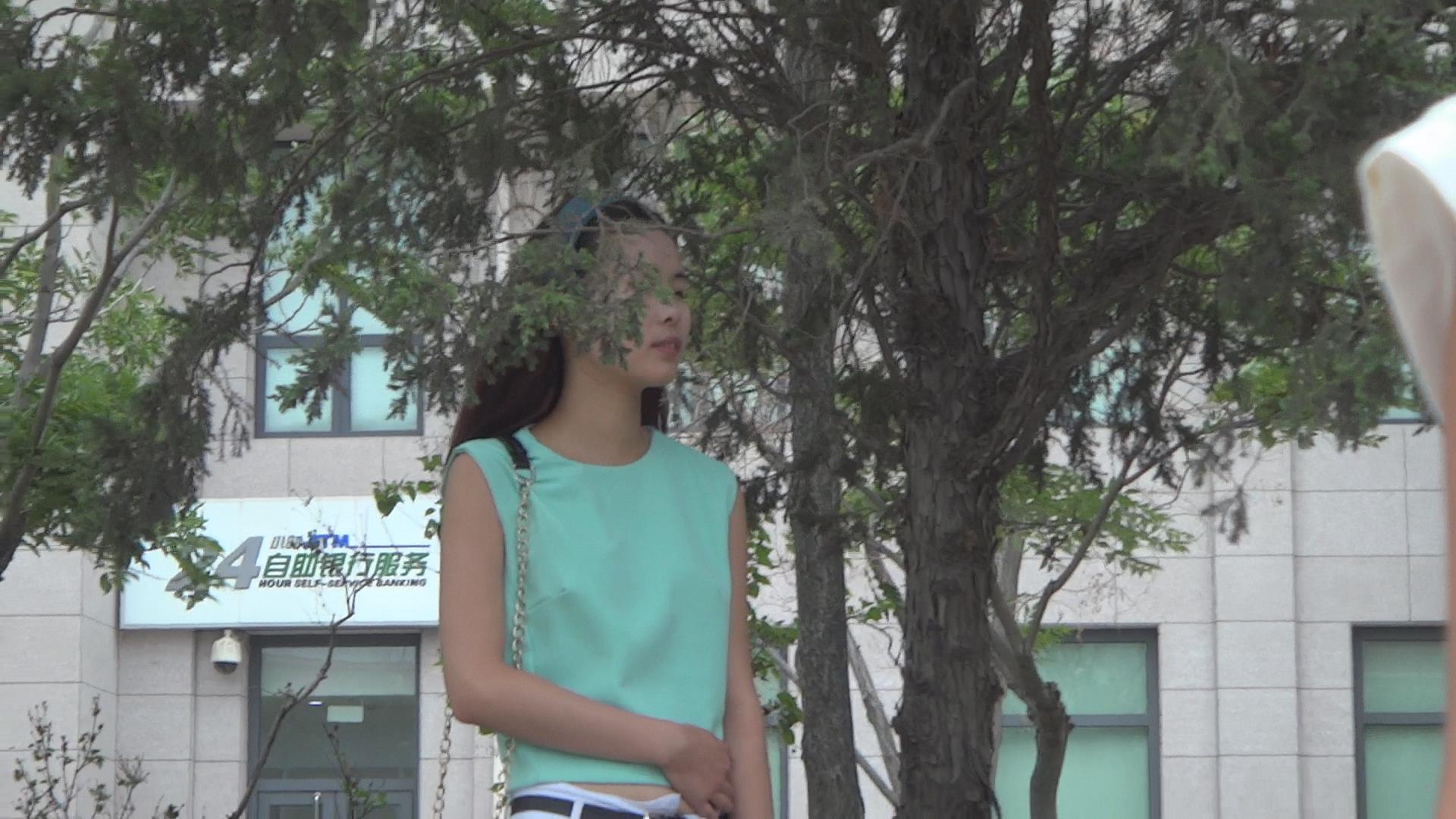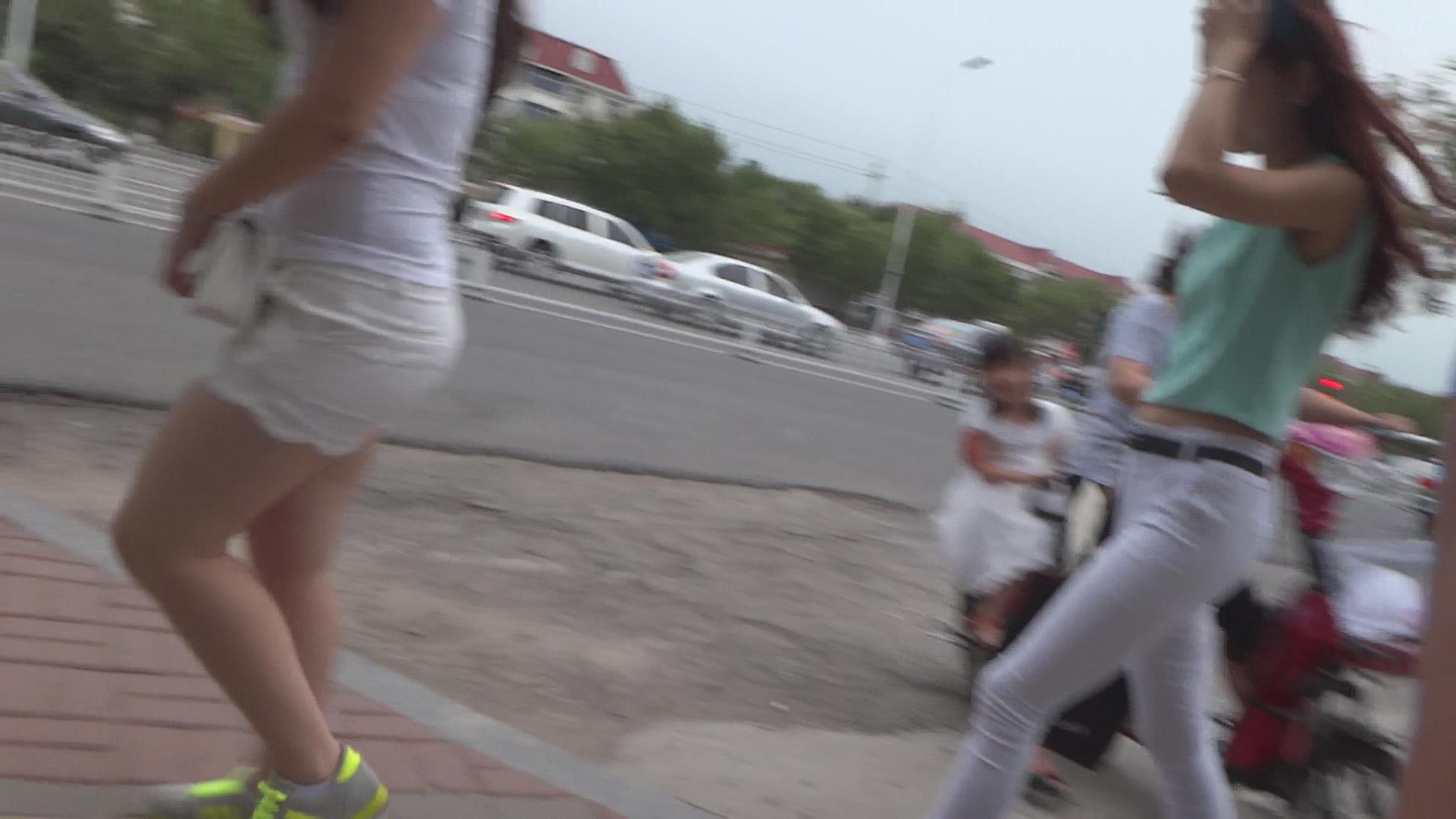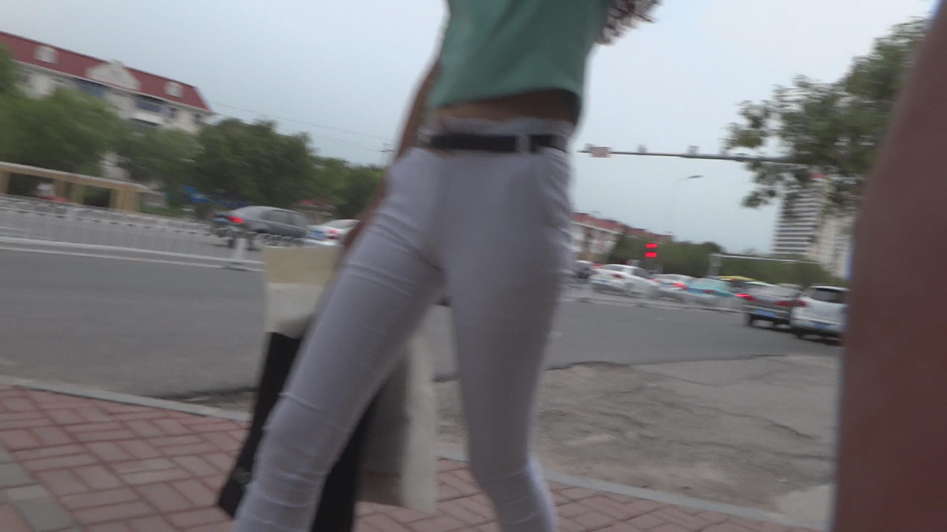 街拍紧身白裤微笑臀清秀美女 编号6125