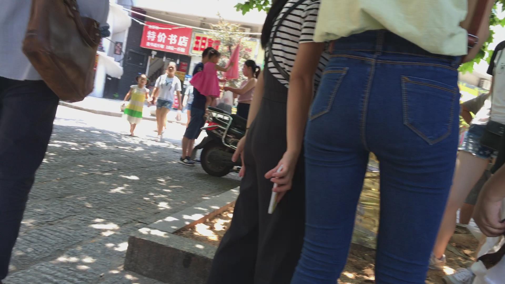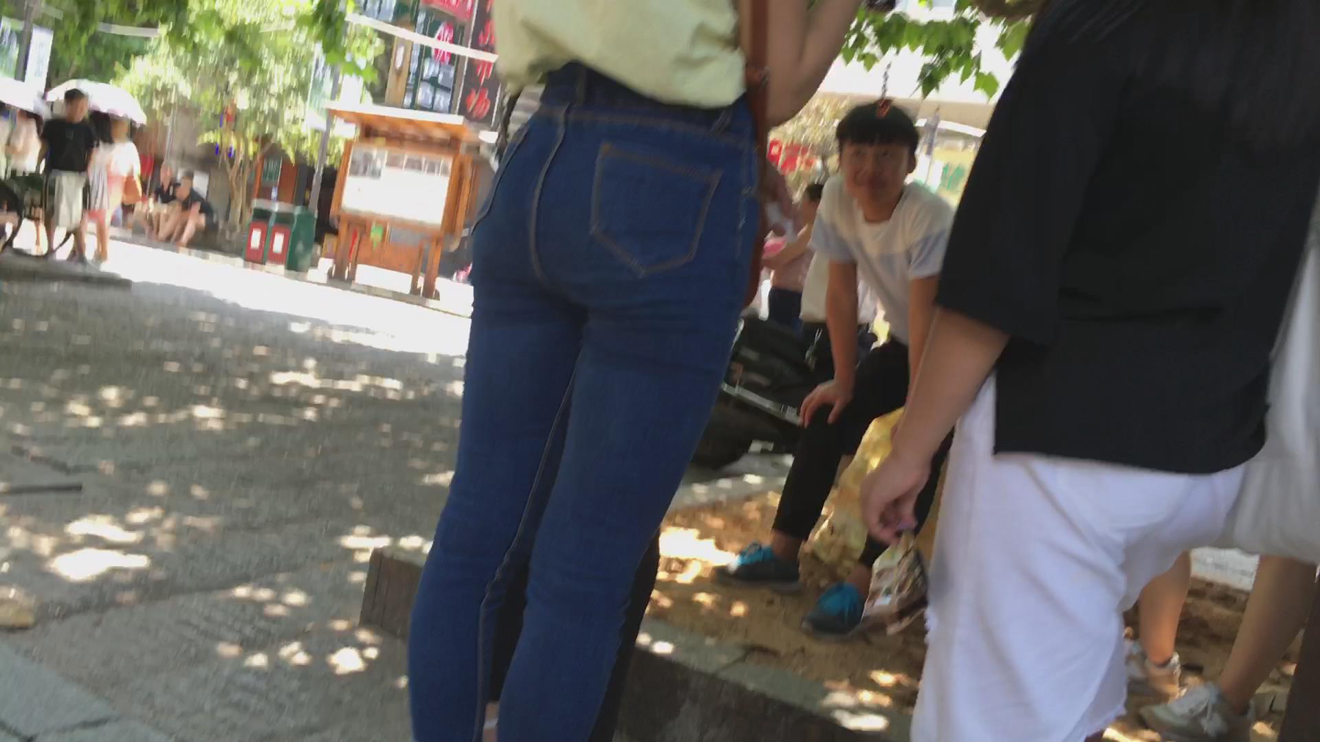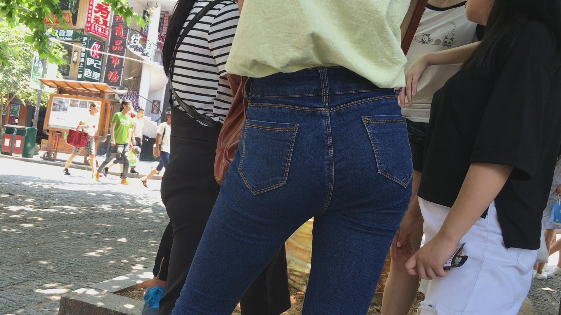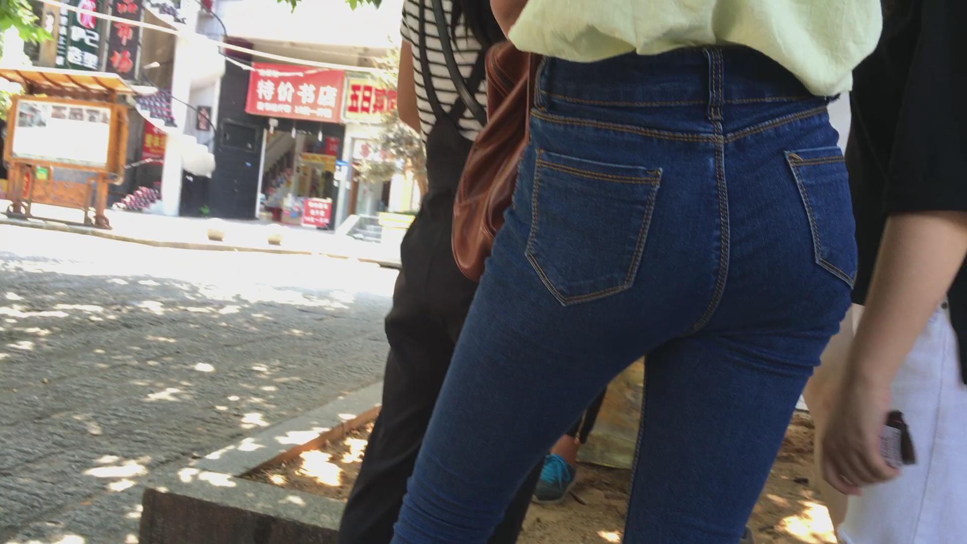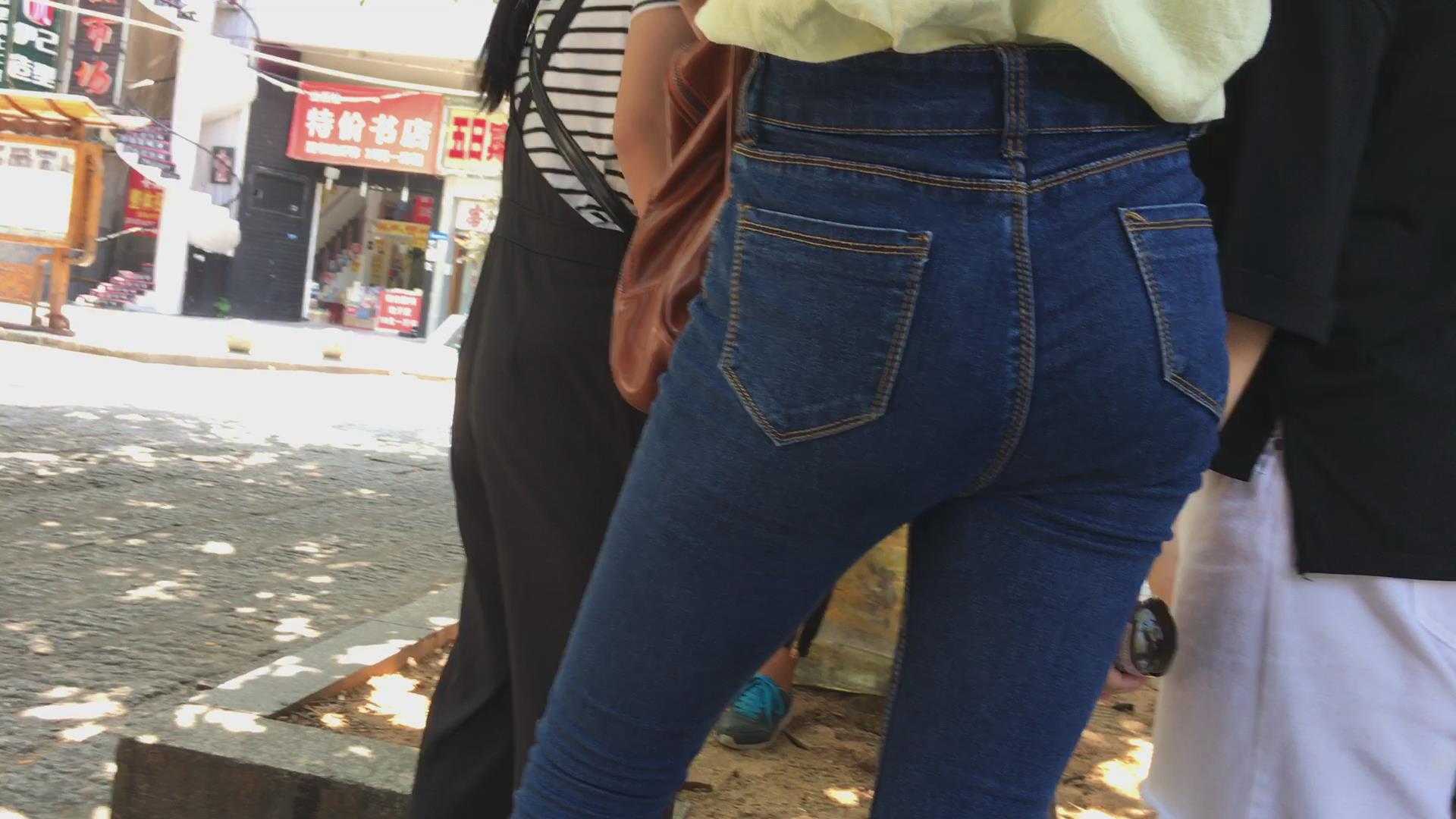 街拍的青春紧身蓝色牛仔裤妹子 编号5467