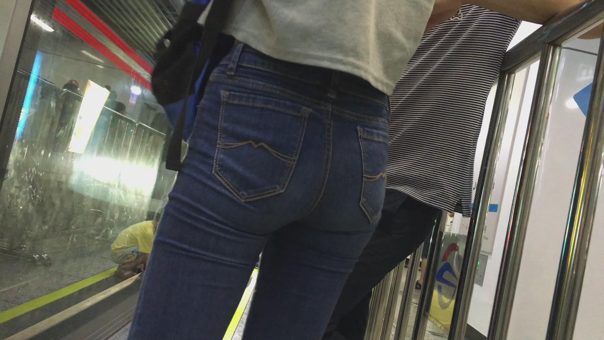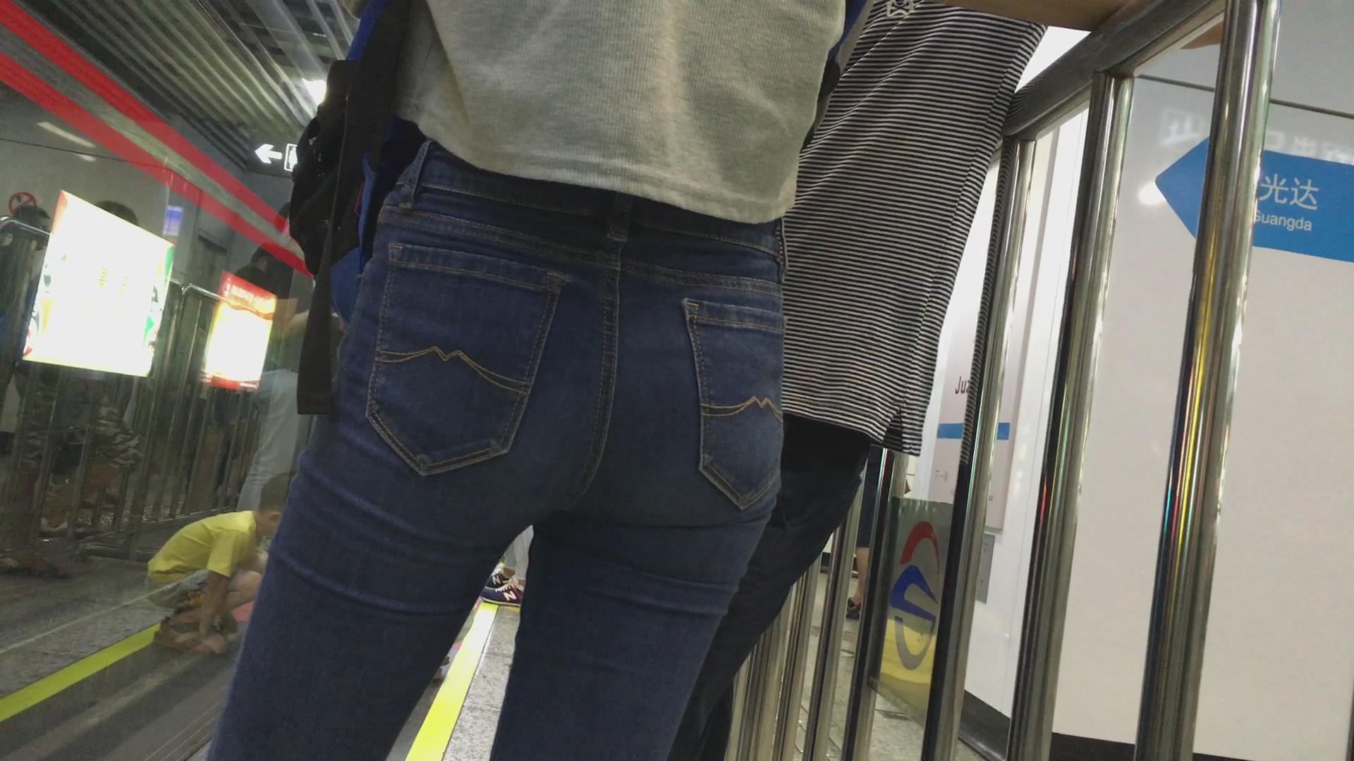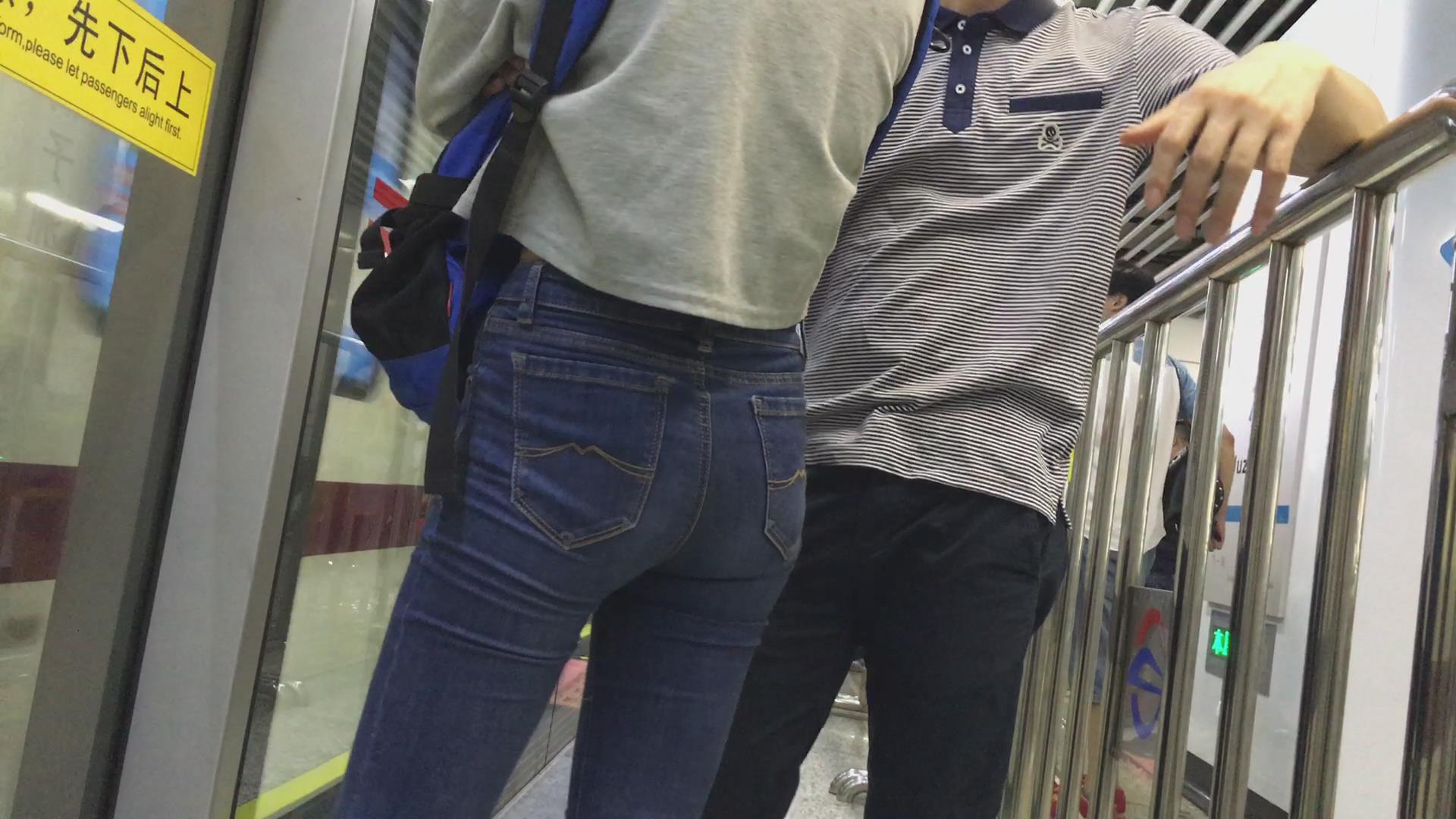 地铁上偶遇极品紧身蓝色牛仔裤美眉 编号5476
