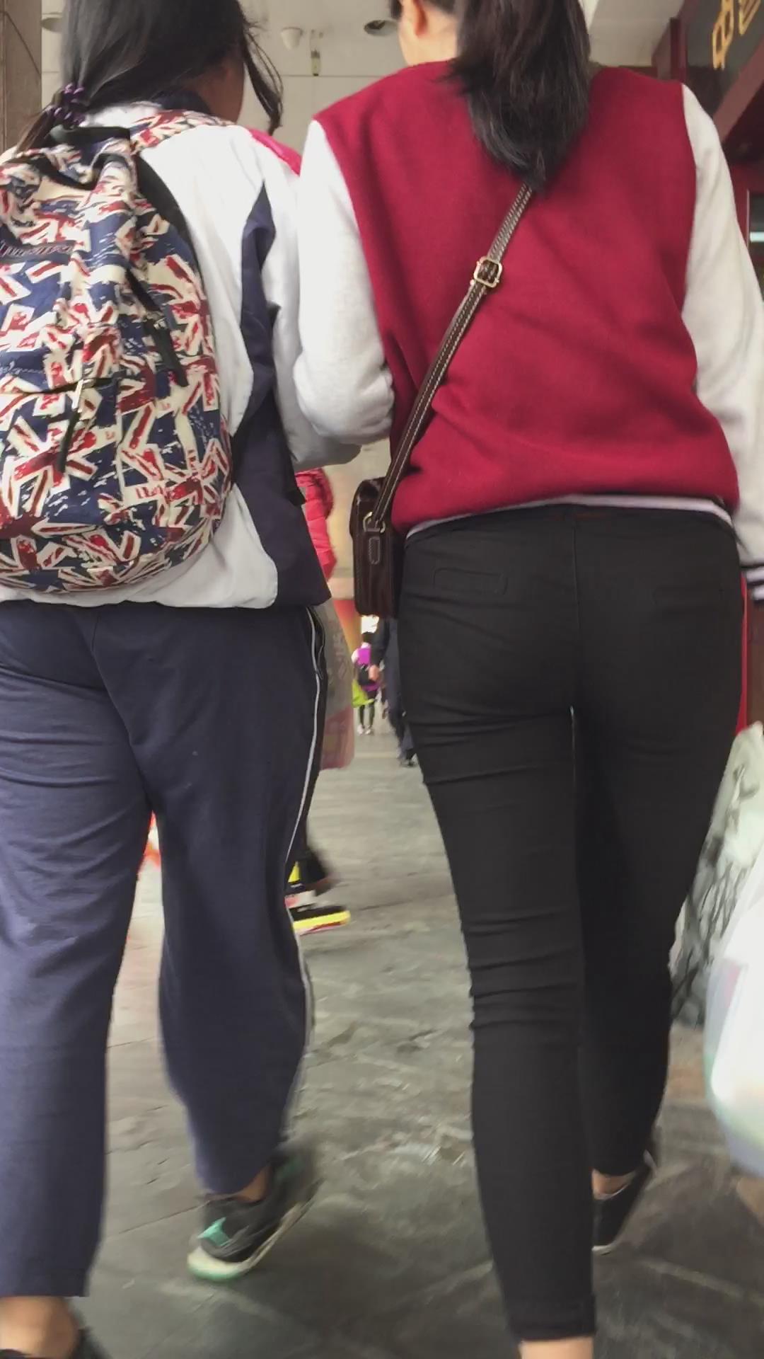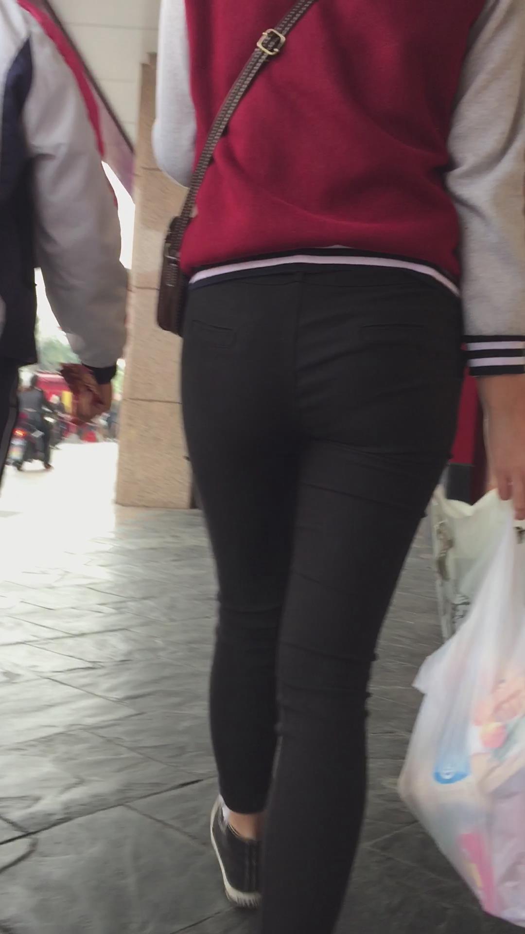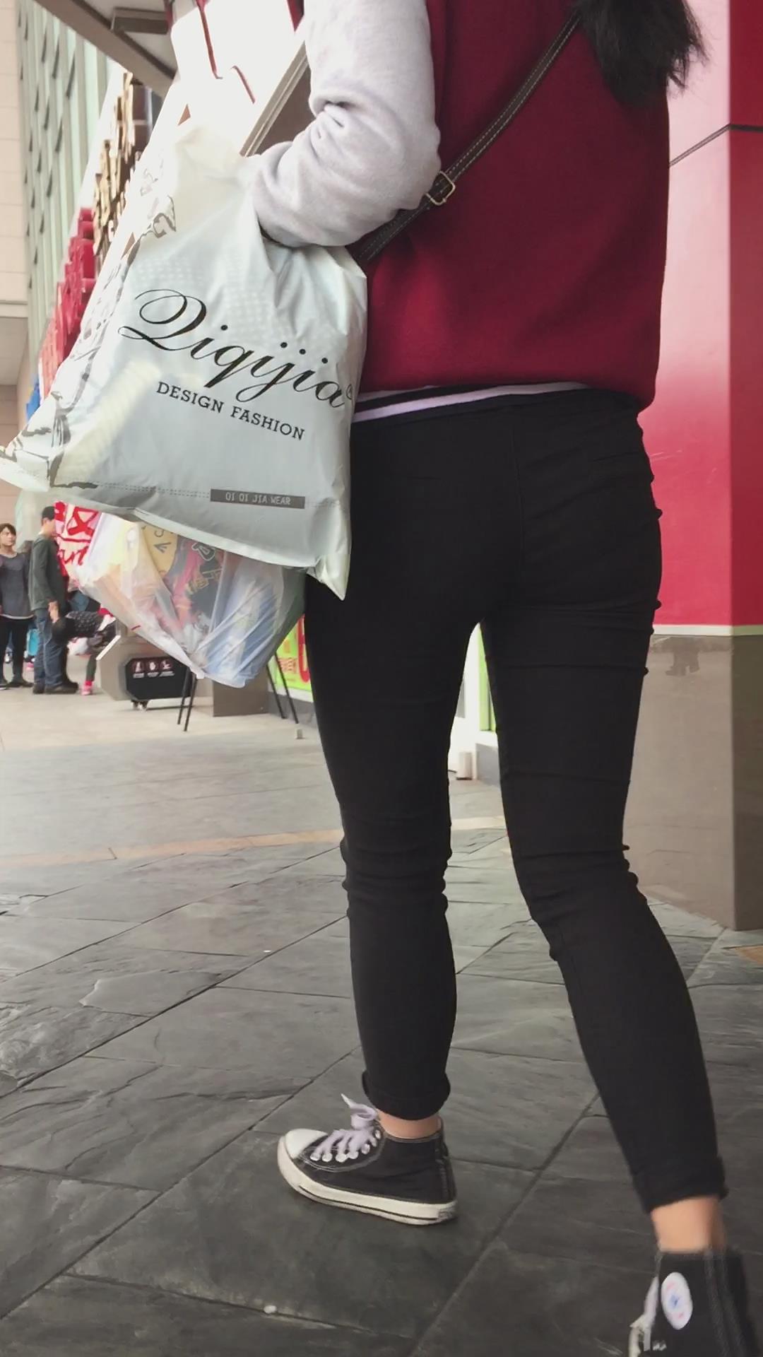 黑色紧身裤学生妹被跟踪,相机都快贴屁屁上了还不知道 编号5500