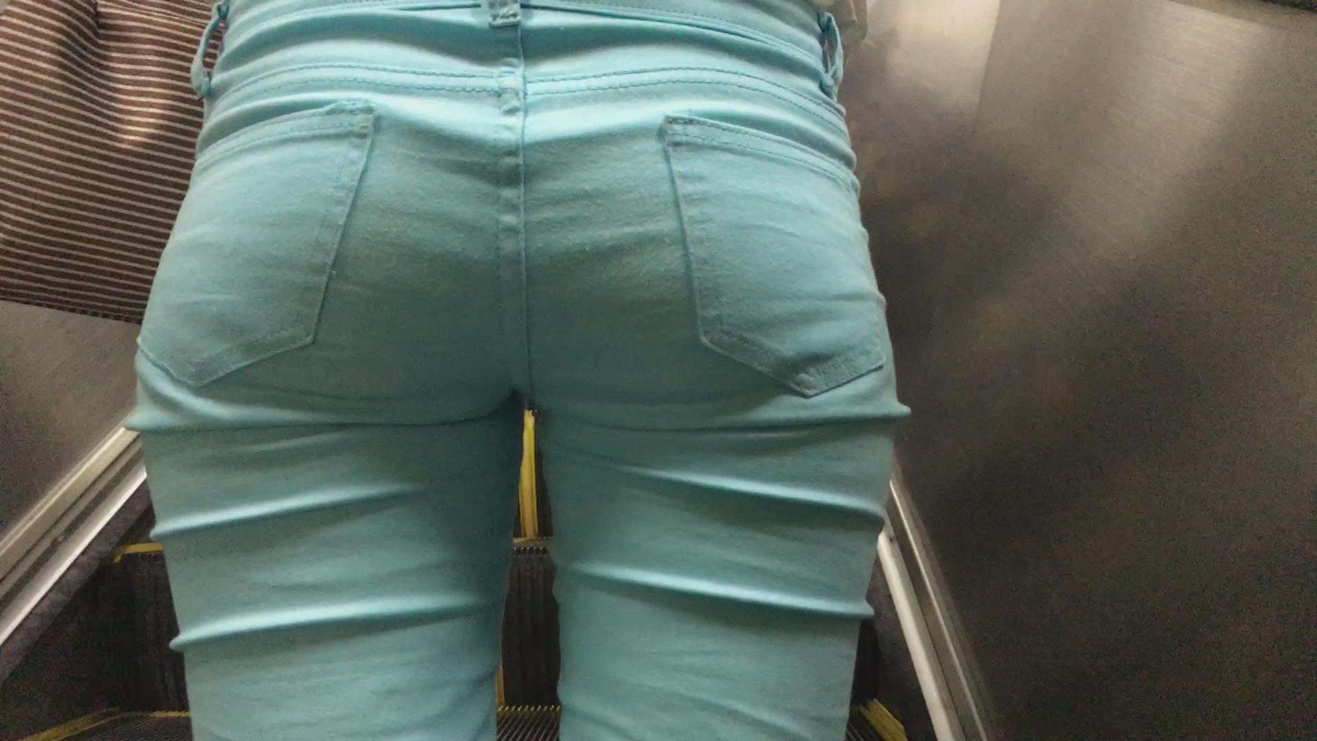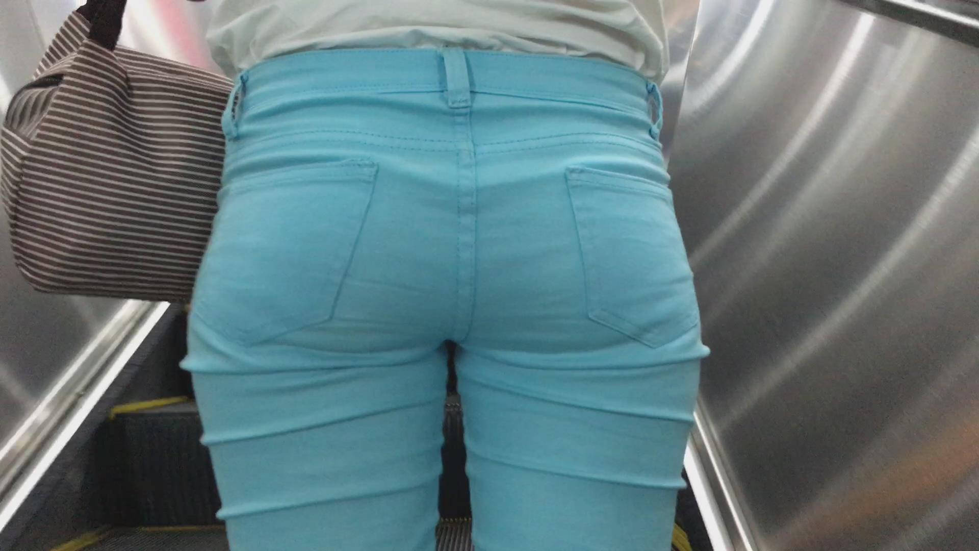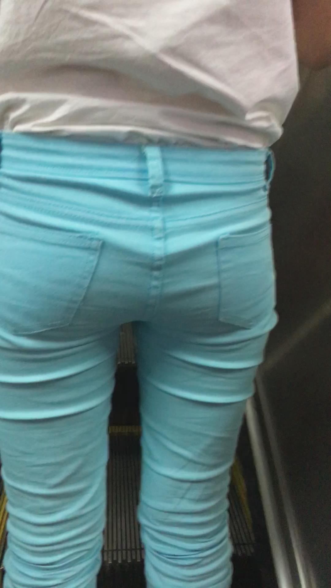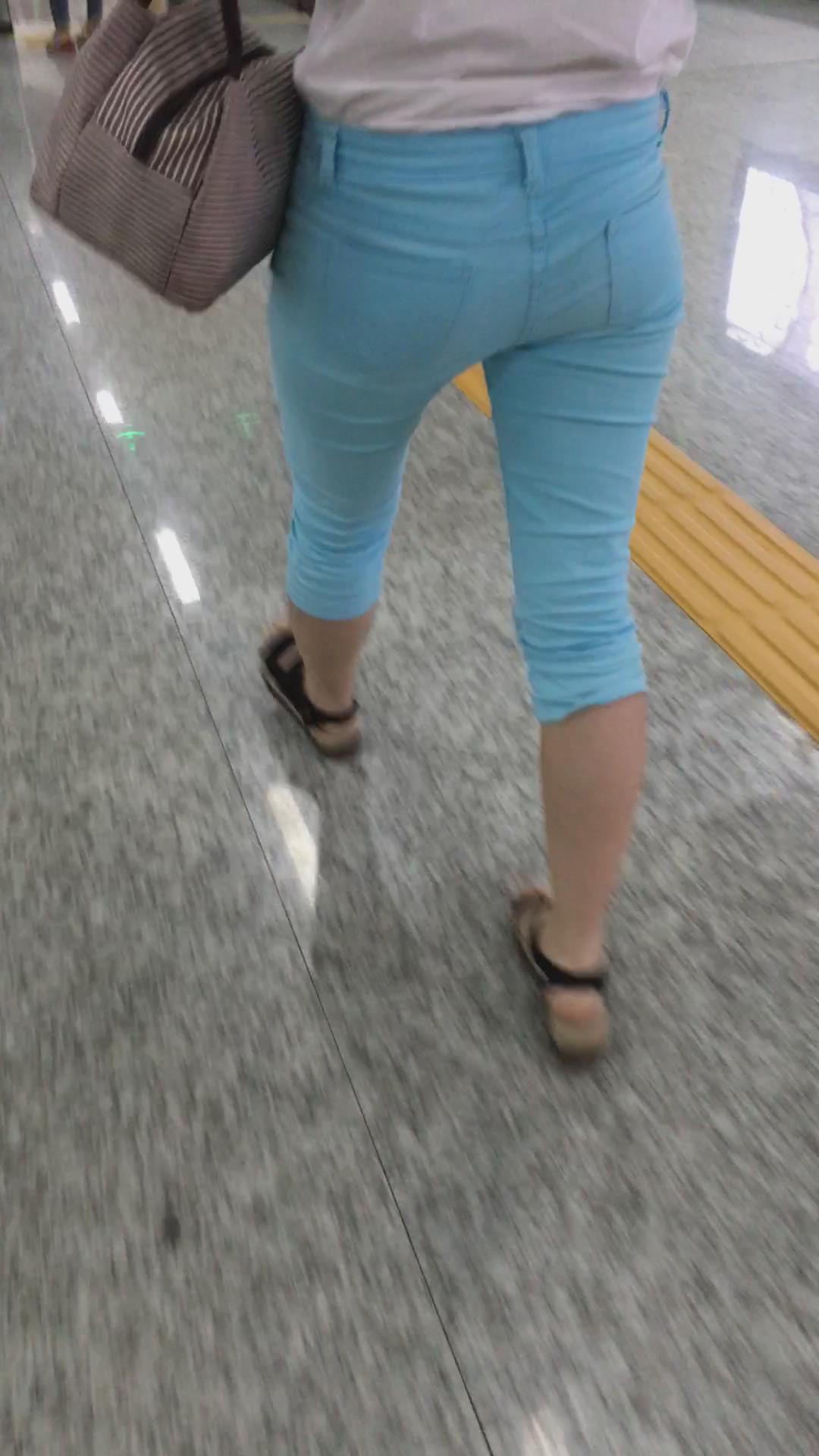 近距离跟拍刚下地铁的宽臀蓝色紧身裤美女 编号5517