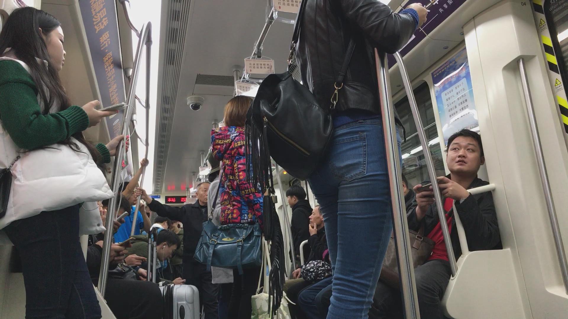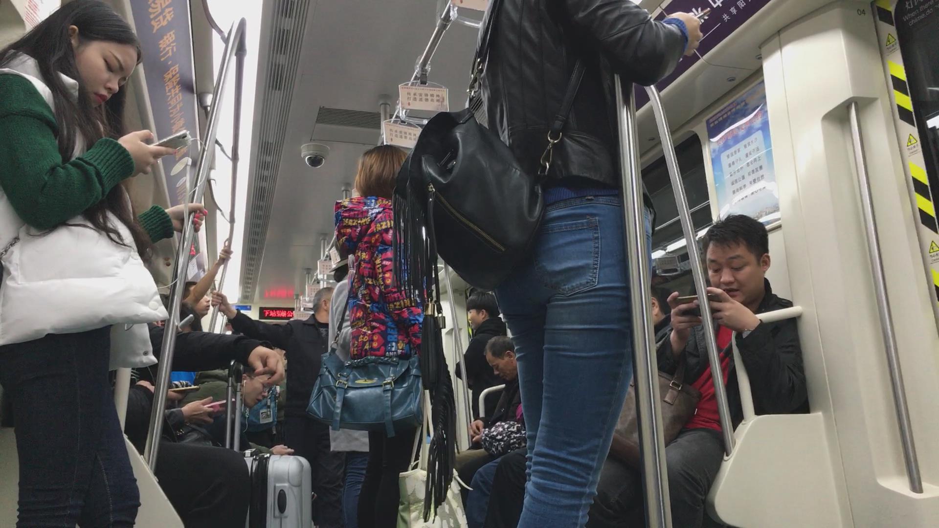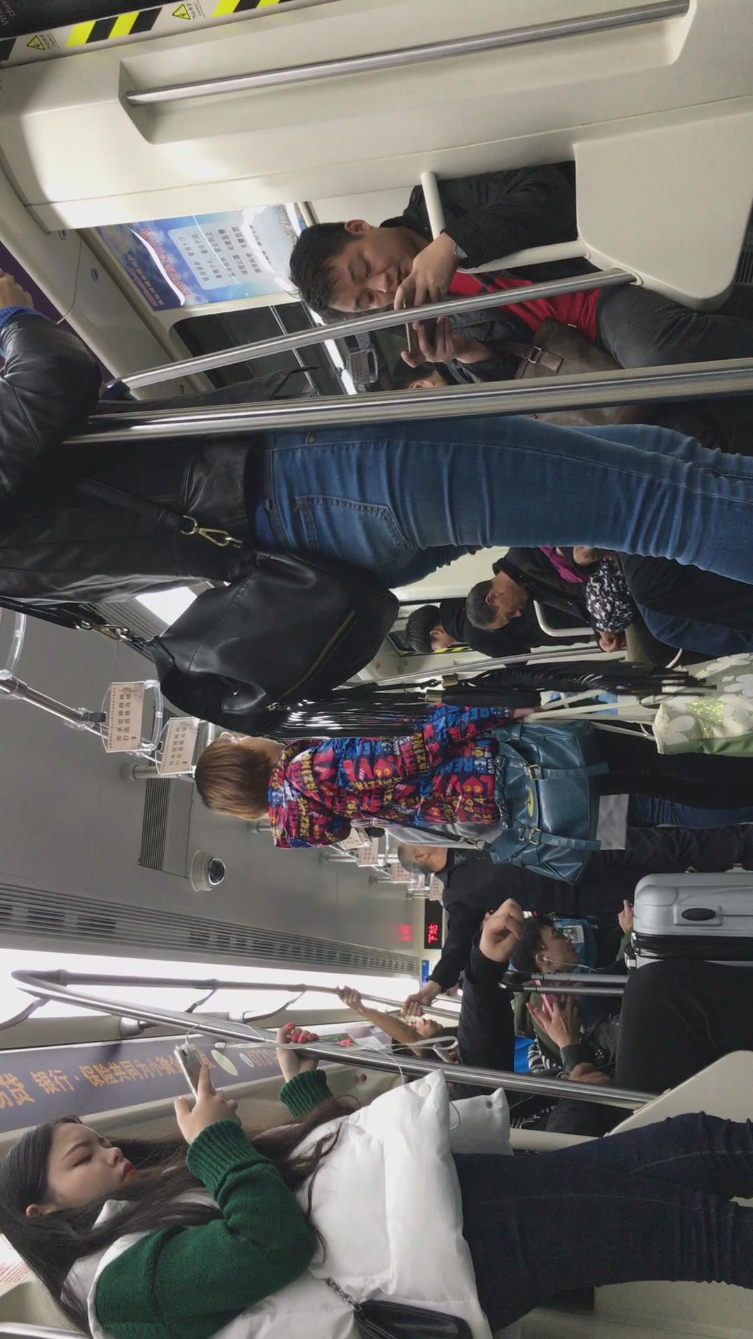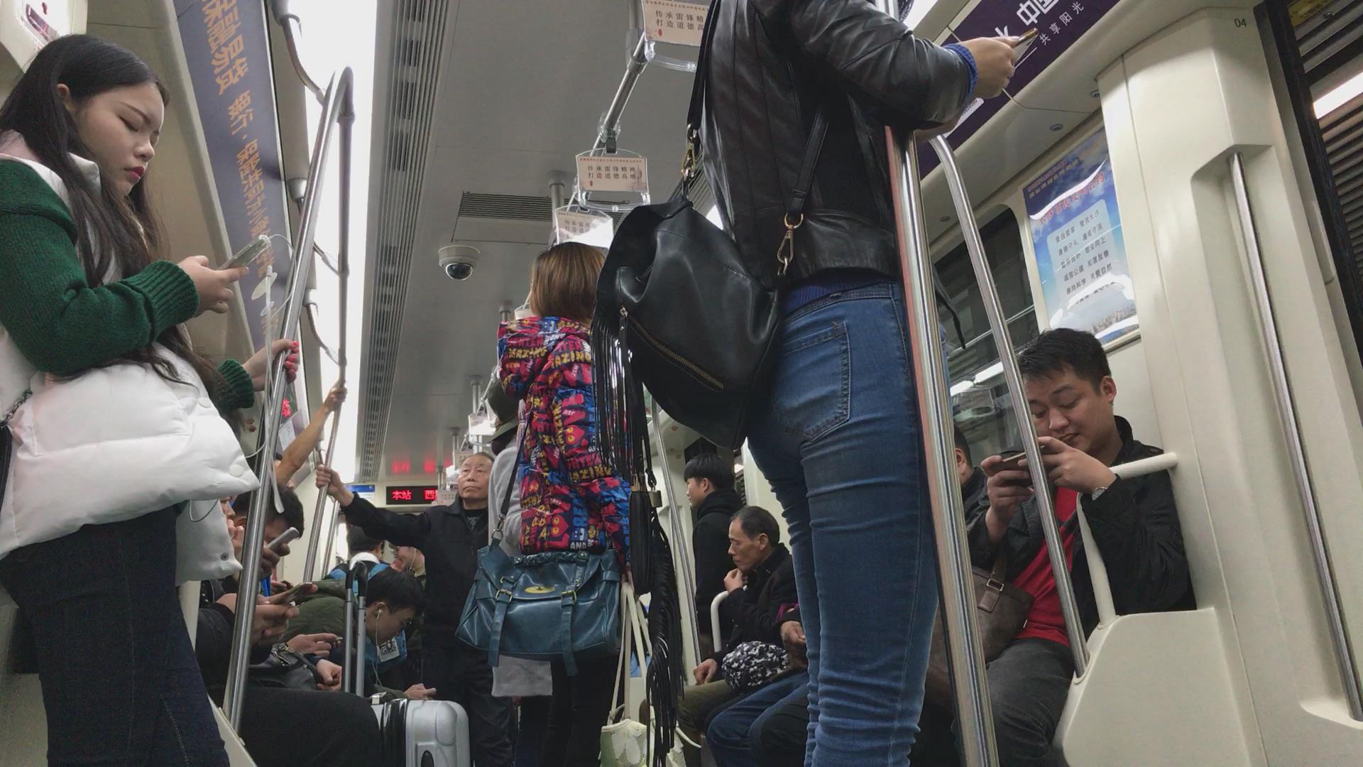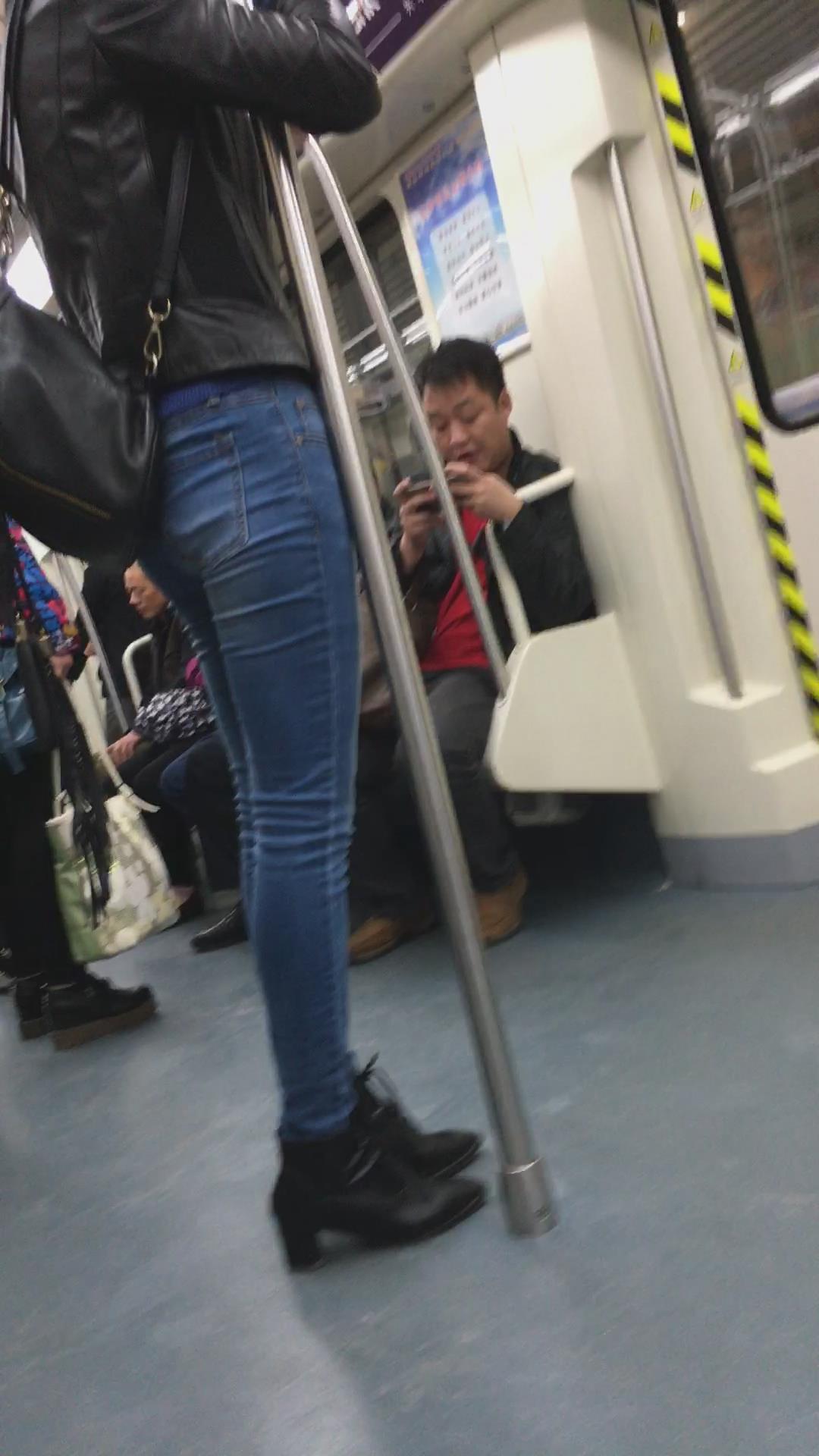 地铁上拍摄修长美腿紧身蓝牛气质美女 编号5518