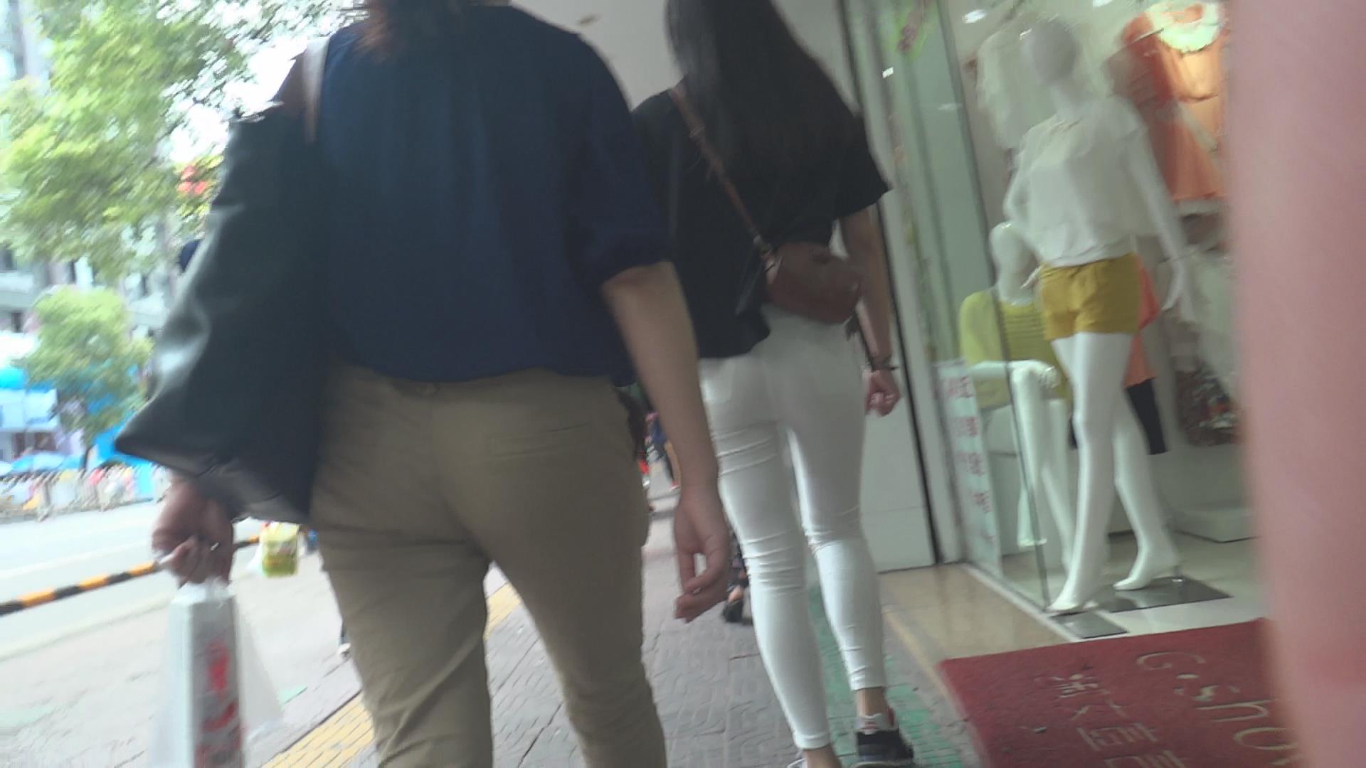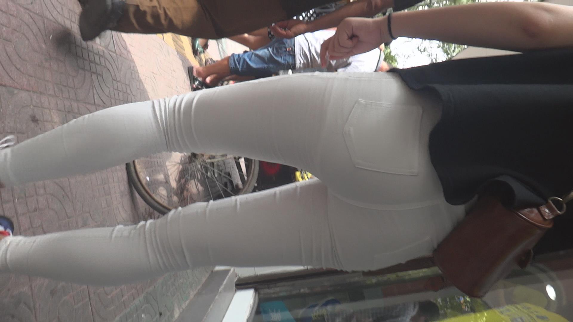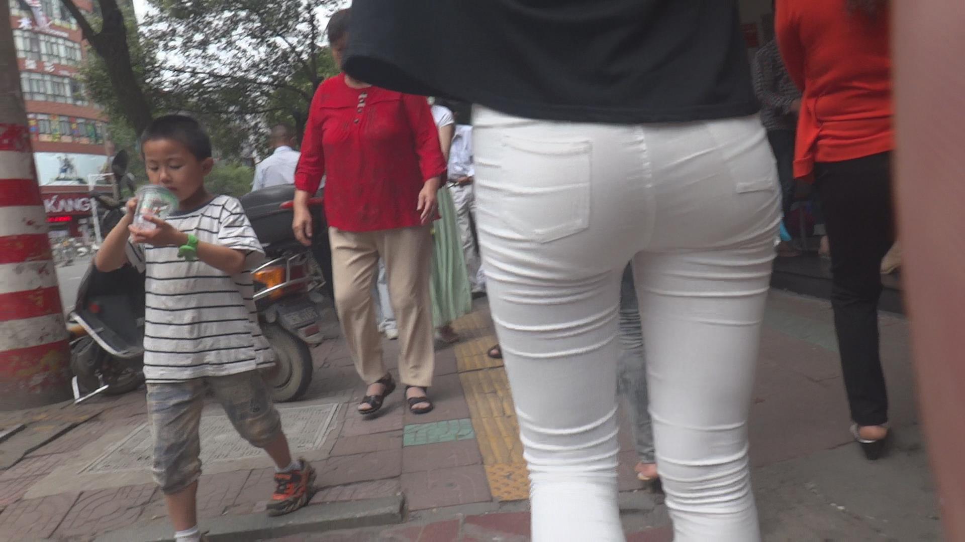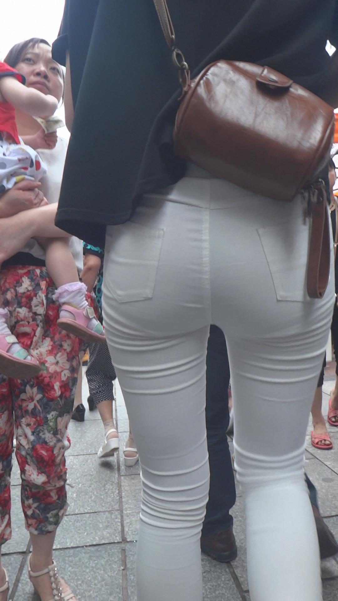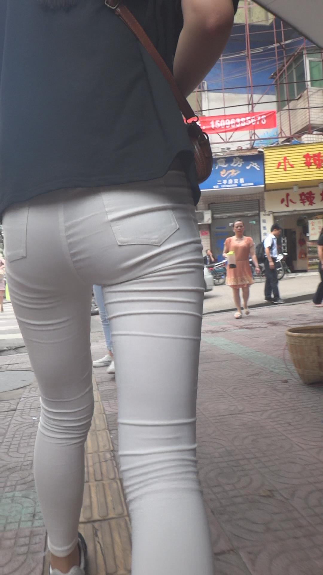 街拍紧身白裤美腿少女 编号6134