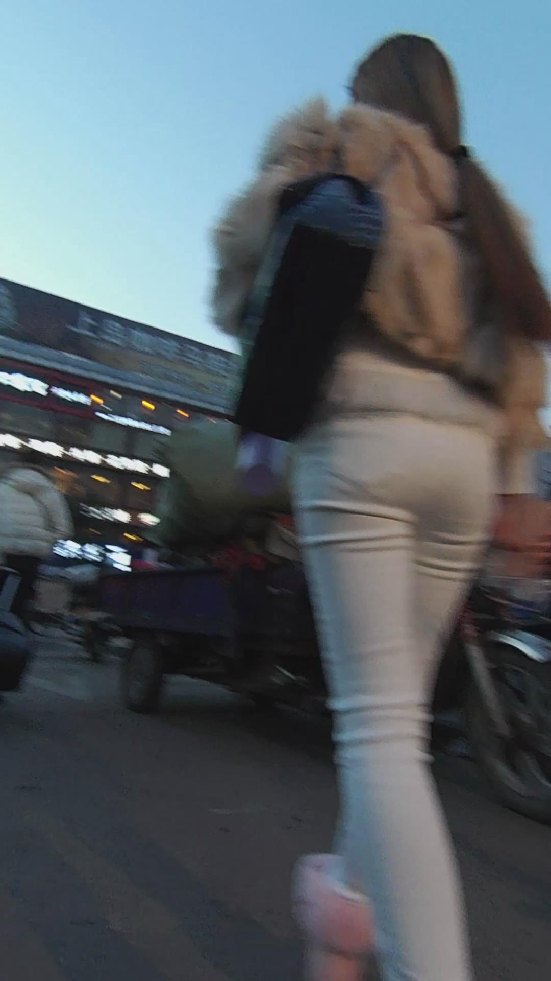 跟拍紧身白裤粉色毛毛鞋妹子 编号5533