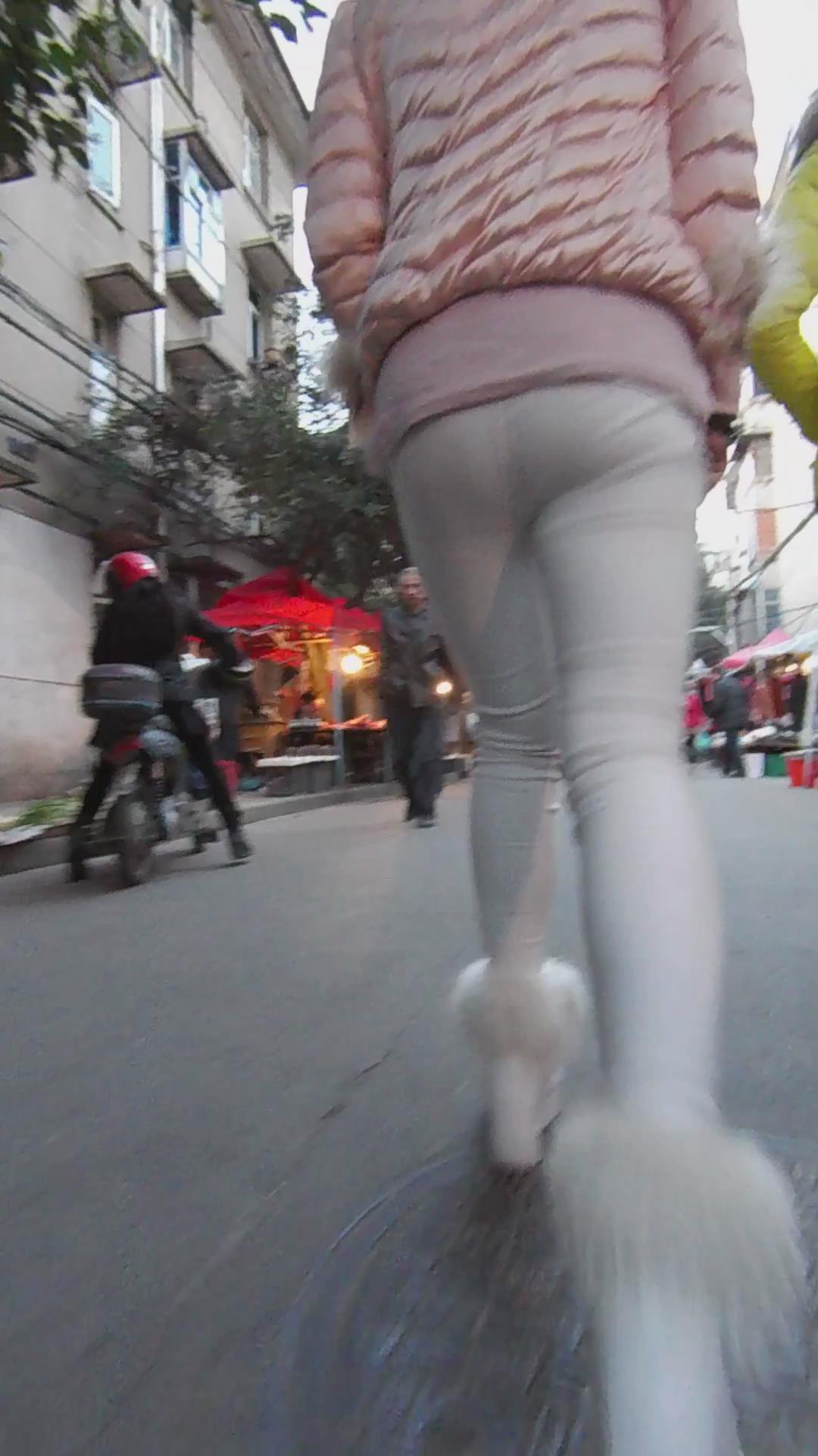 紧身白裤粉外套女孩逛街第二季 编号5538