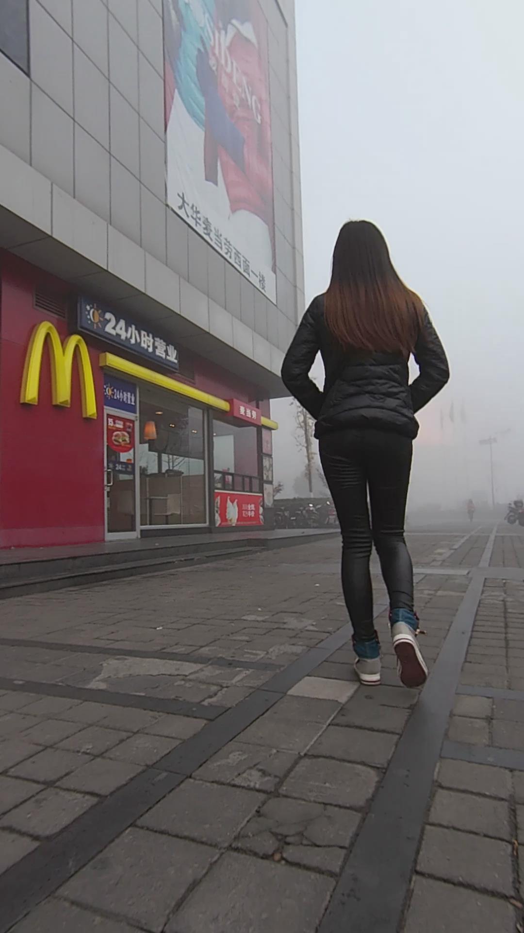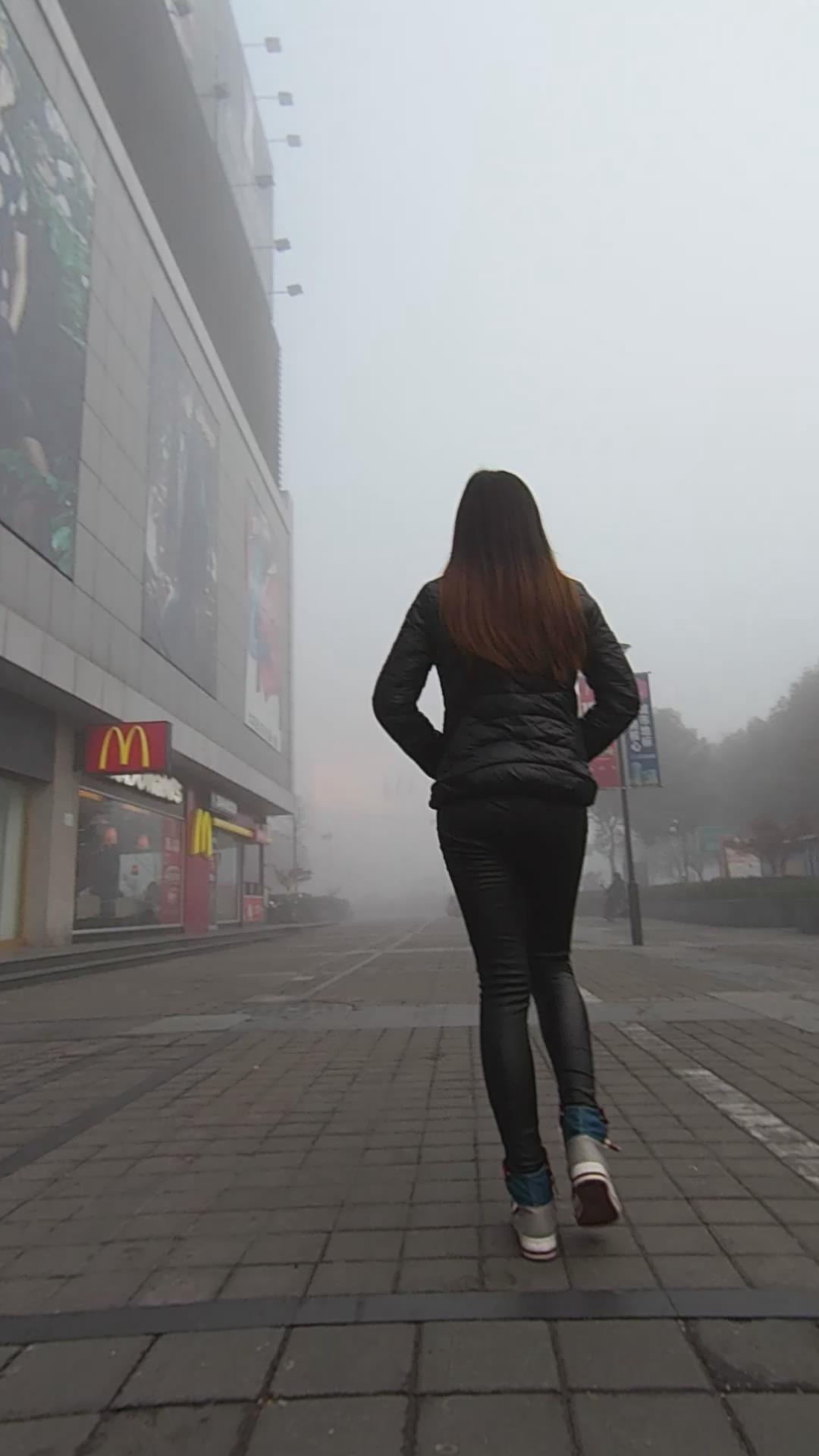 雾霾天早晨上班的紧身皮裤美眉 编号5544