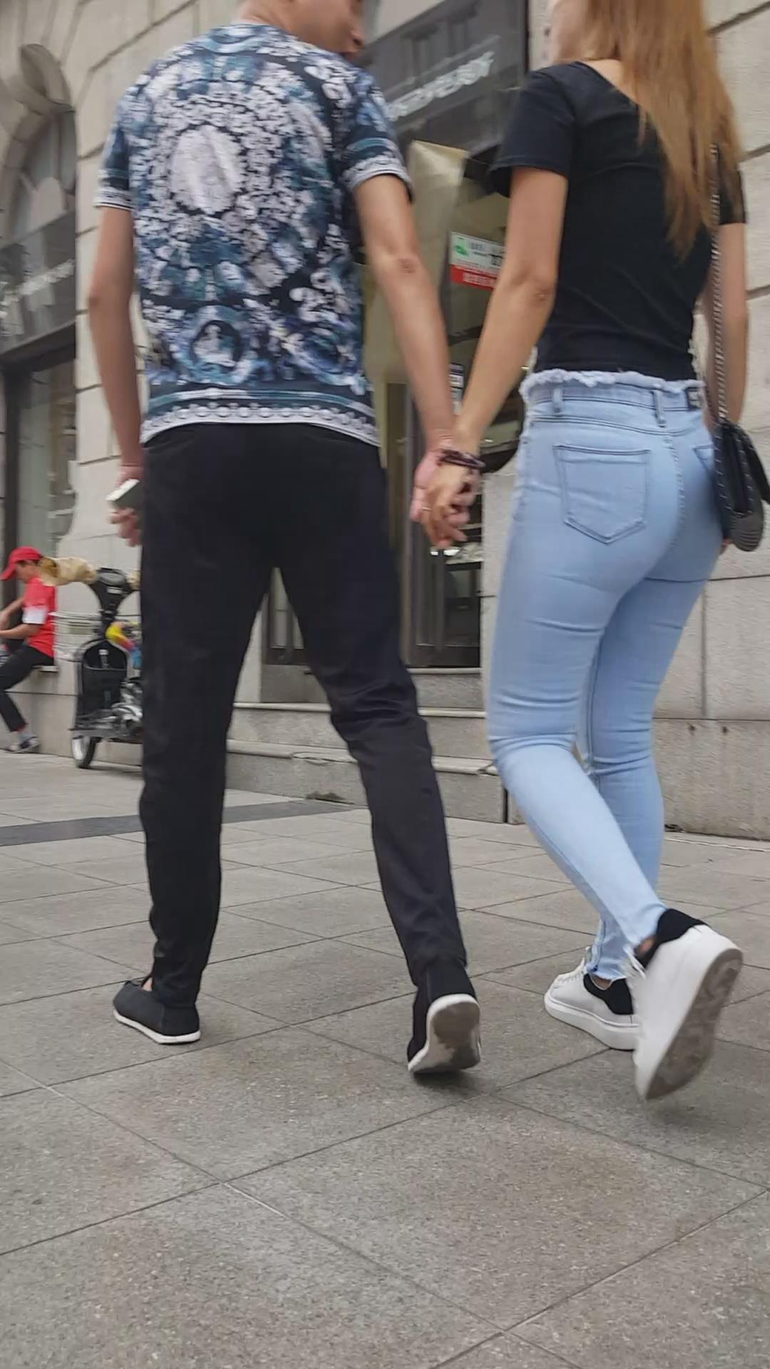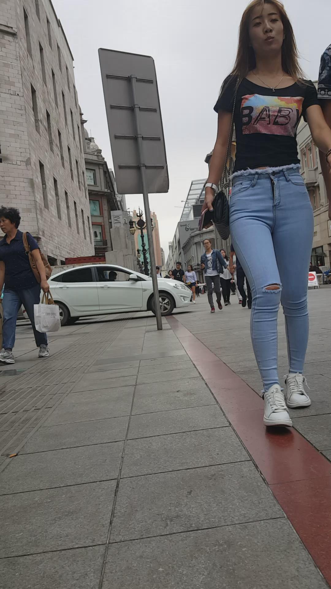 街拍紧绷蓝牛宽臀美颜漂亮小姐姐 编号5584