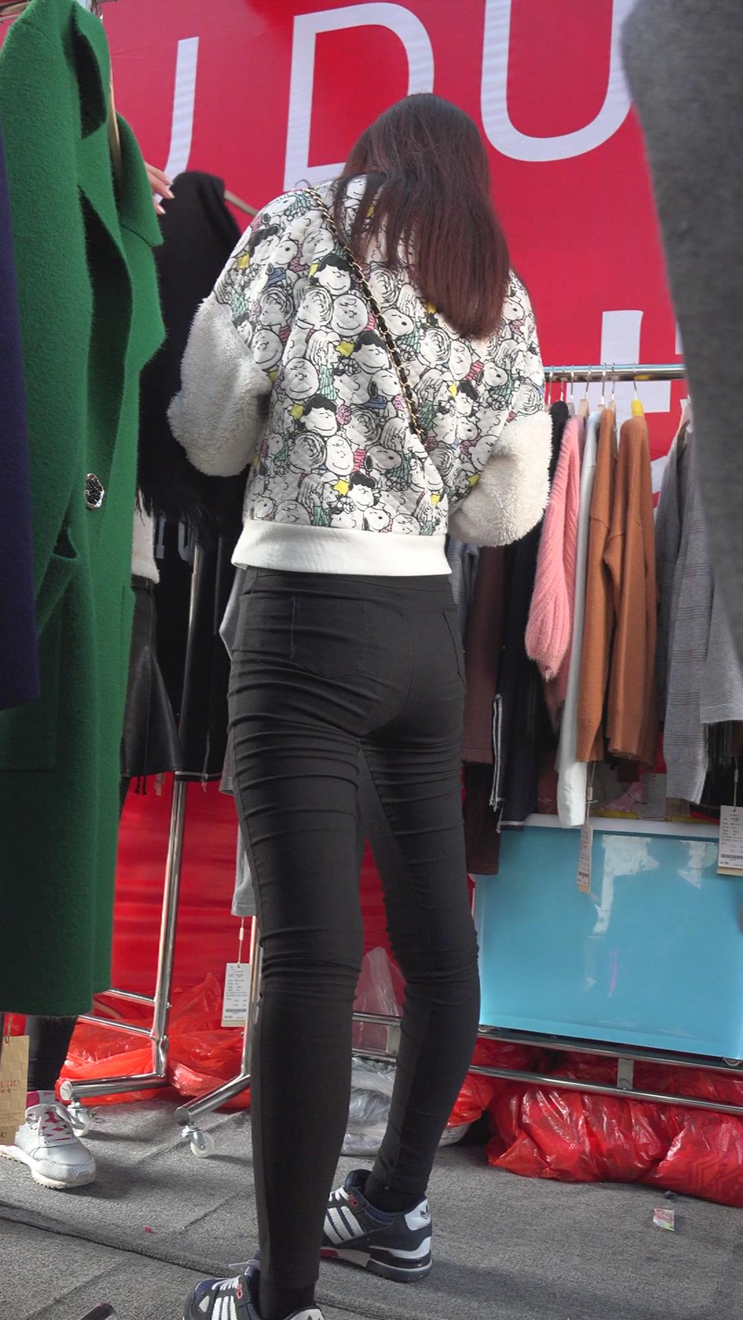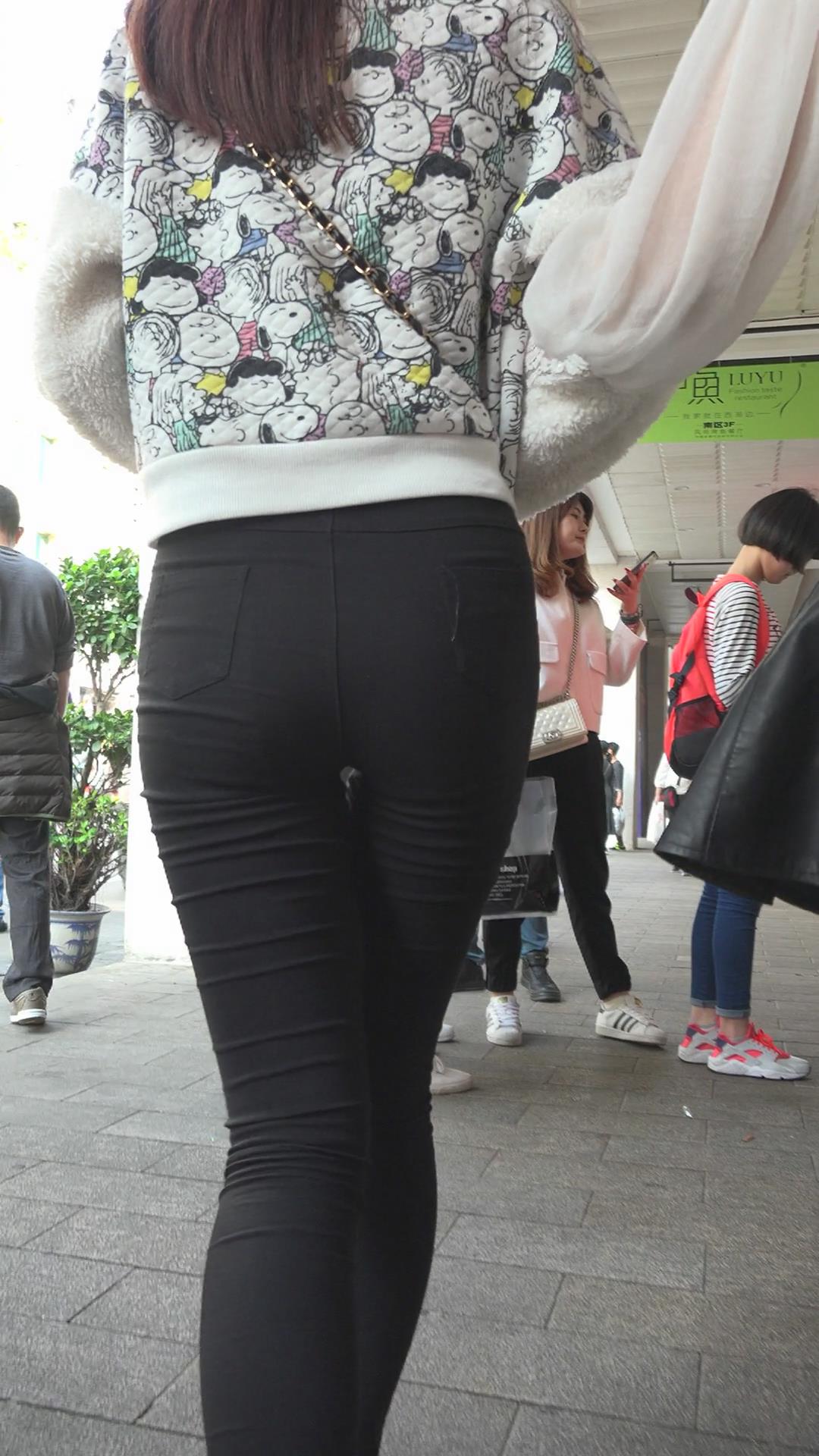 黑色紧身裤苹果臀美眉 编号5599