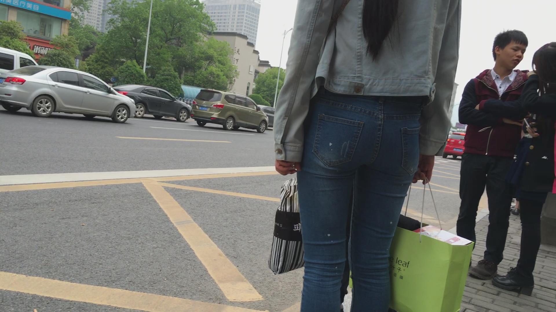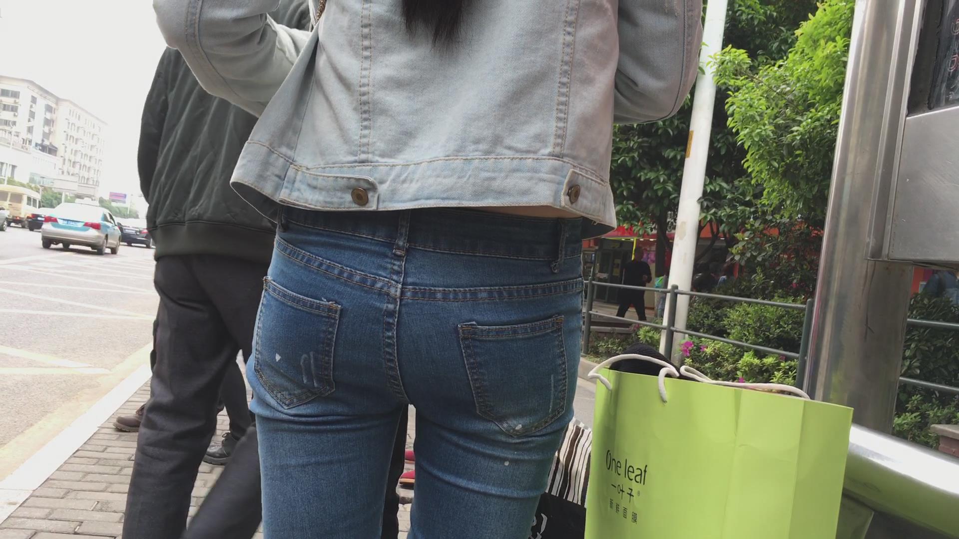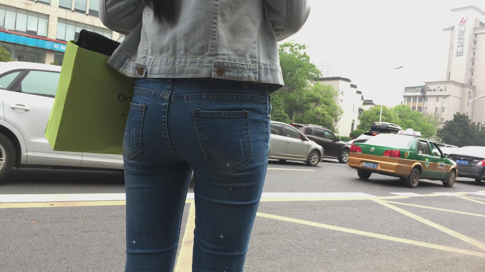 极品紧俏苹果臀蓝色牛仔裤美女 编号5606