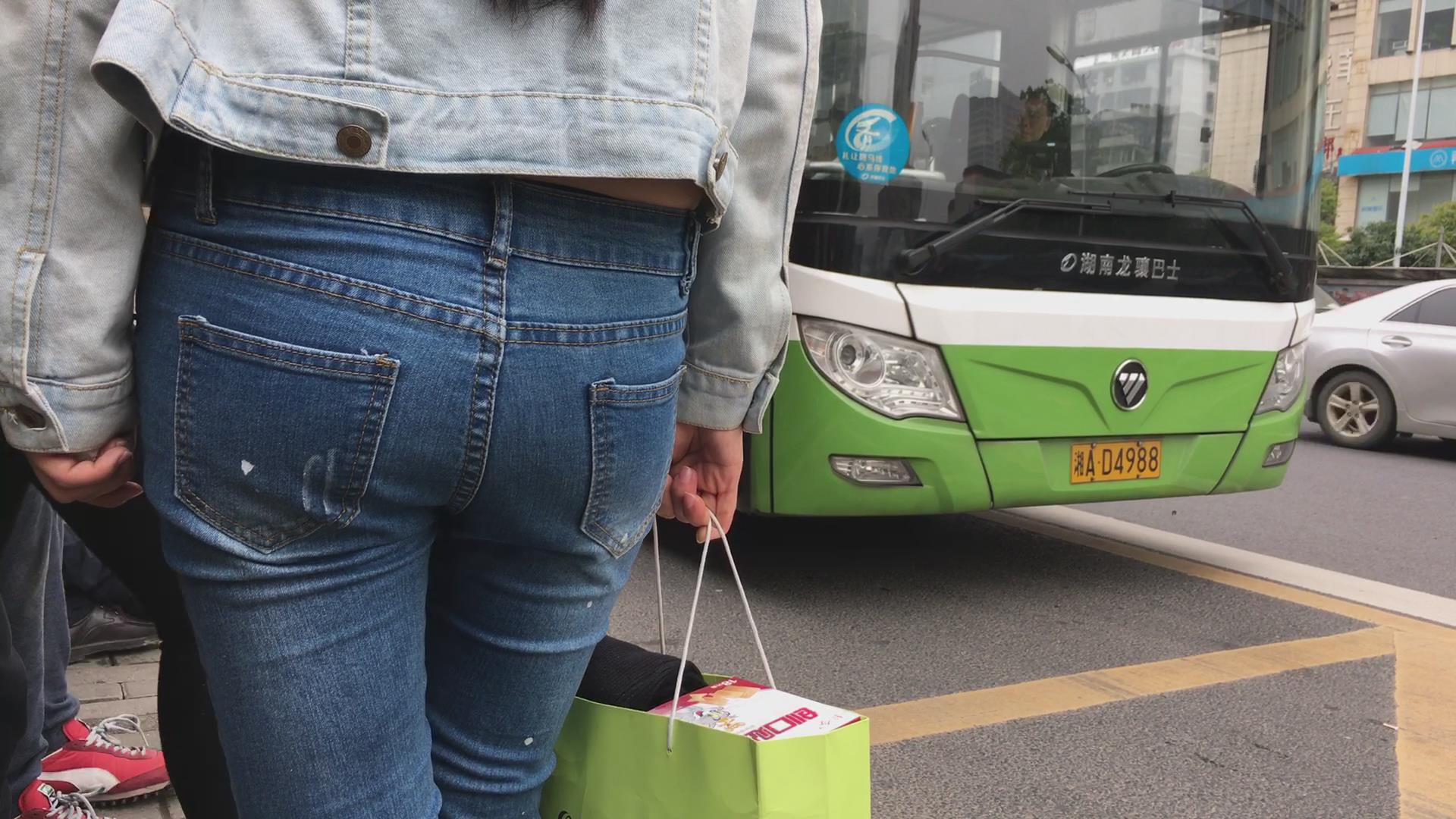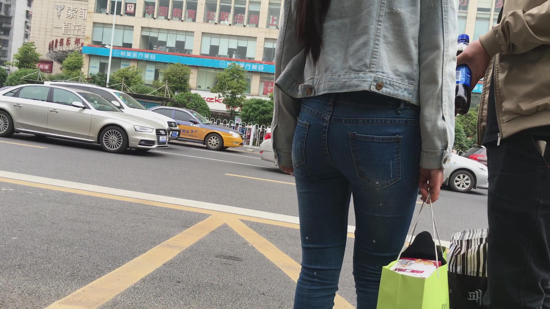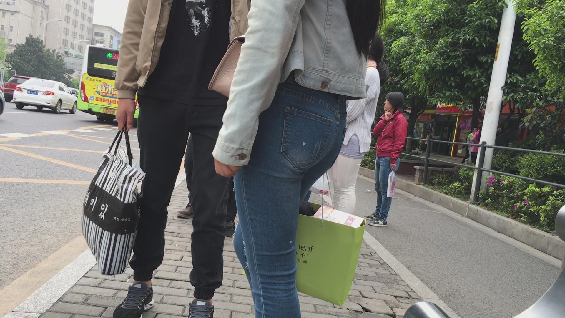 极品紧俏苹果臀蓝色牛仔裤美女 编号5606