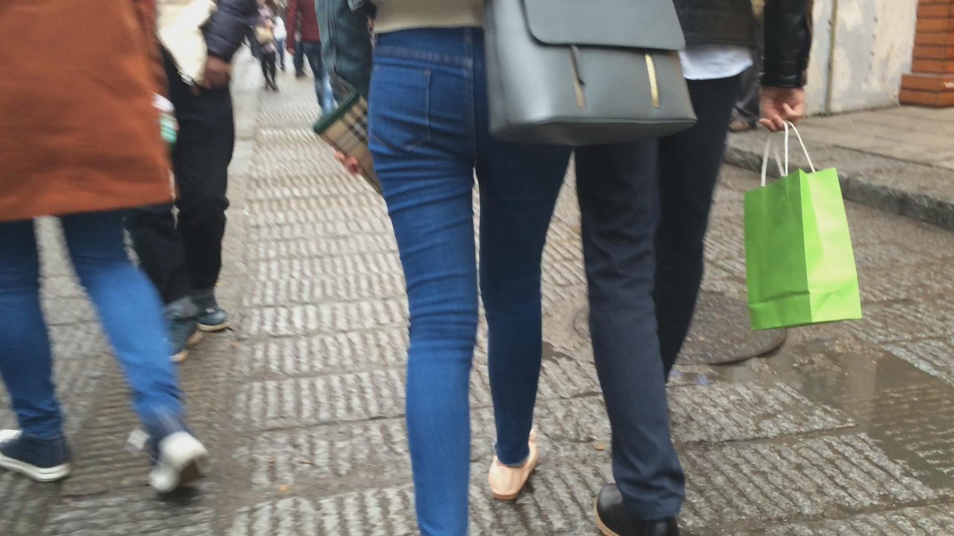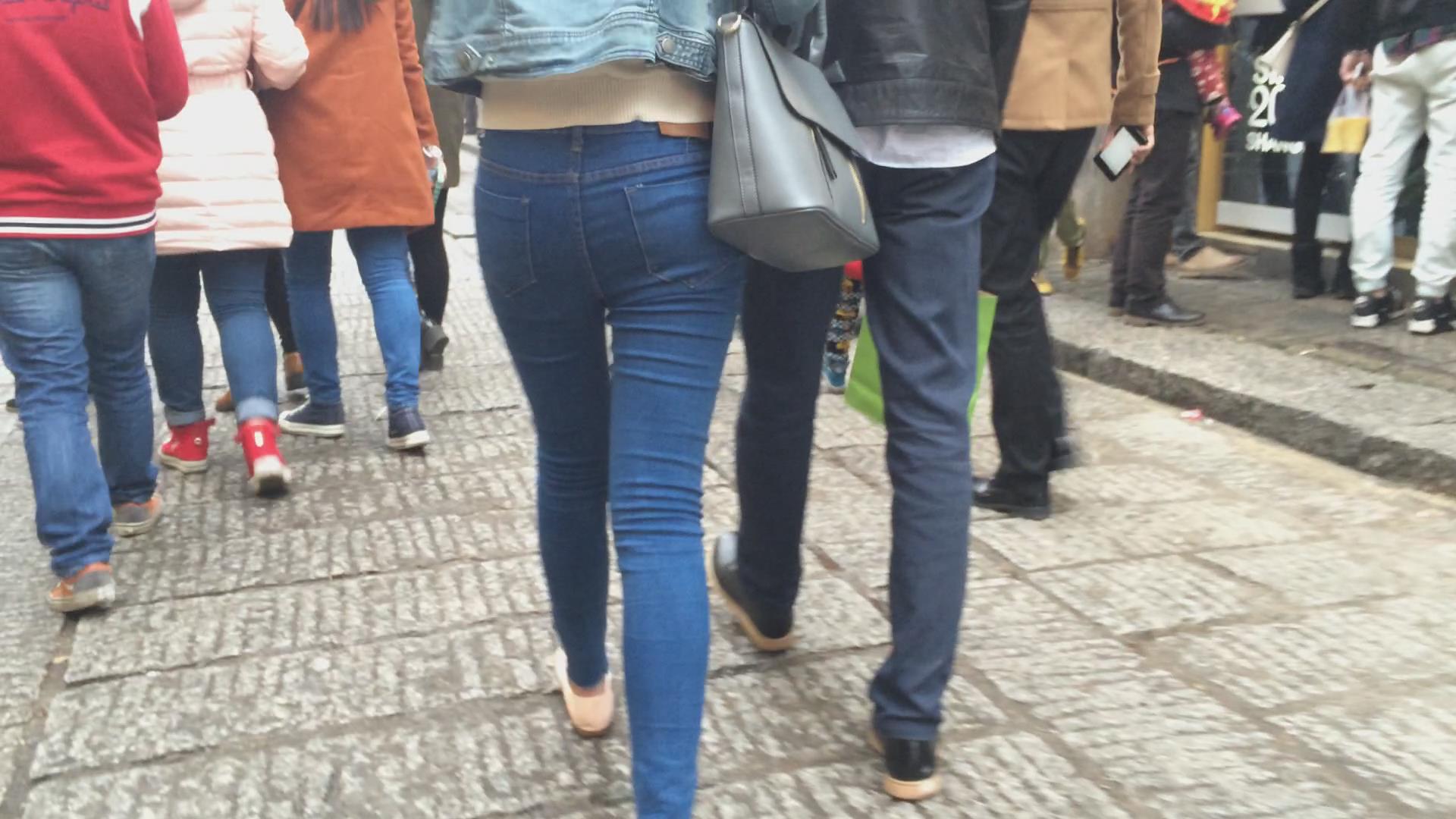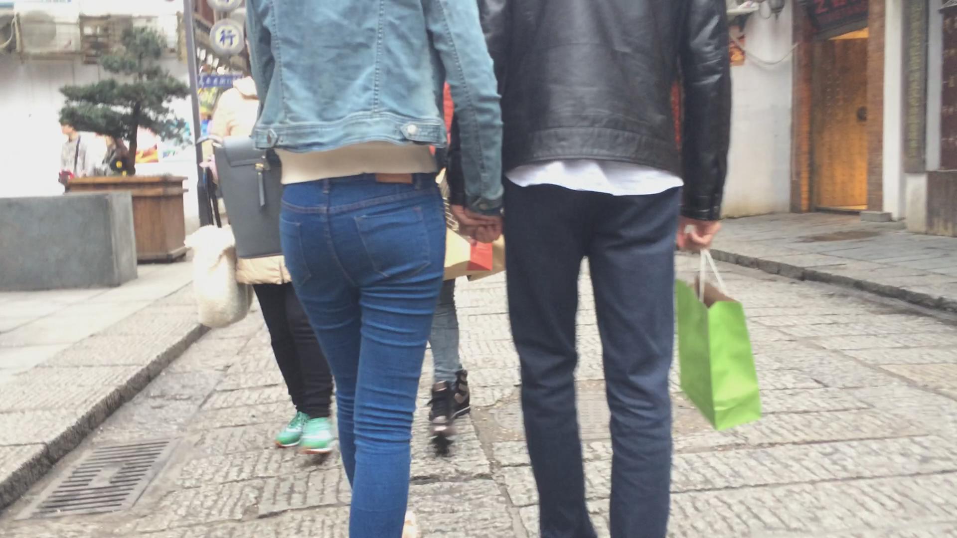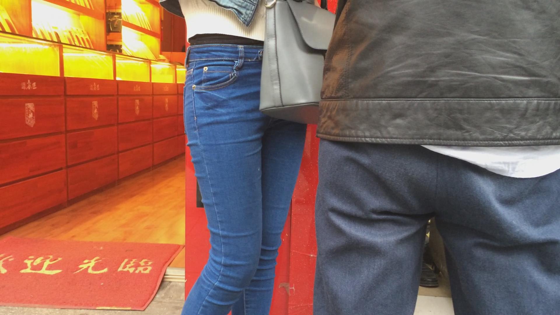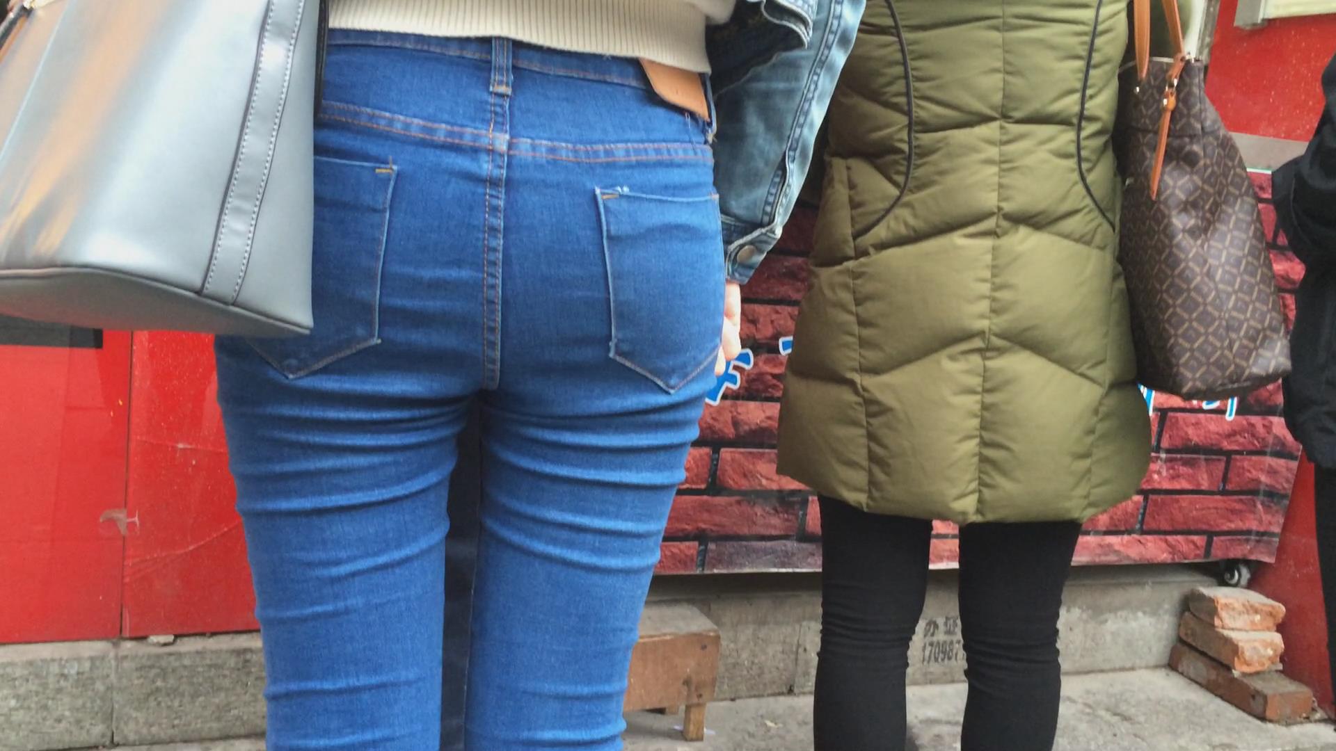 极品圆臀紧身蓝色牛仔裤妹子 编号5607