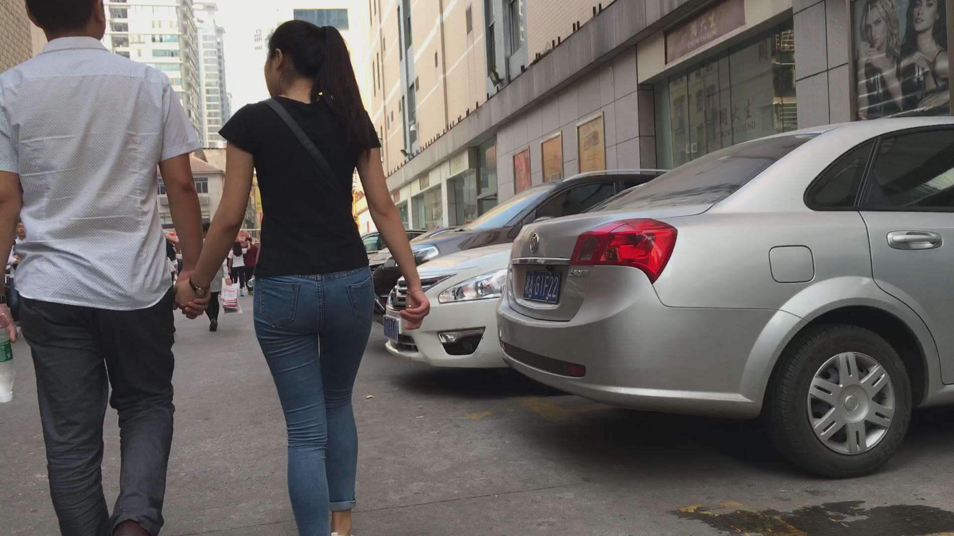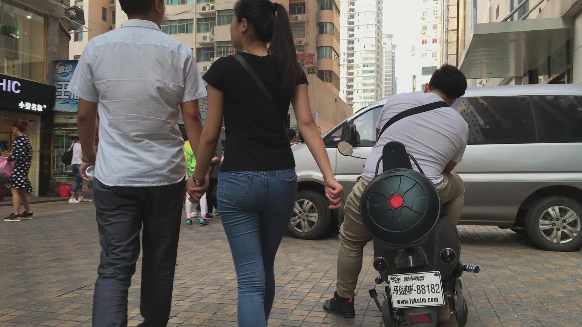 马尾辫紧身蓝牛紧马尾辫美女 编号5624